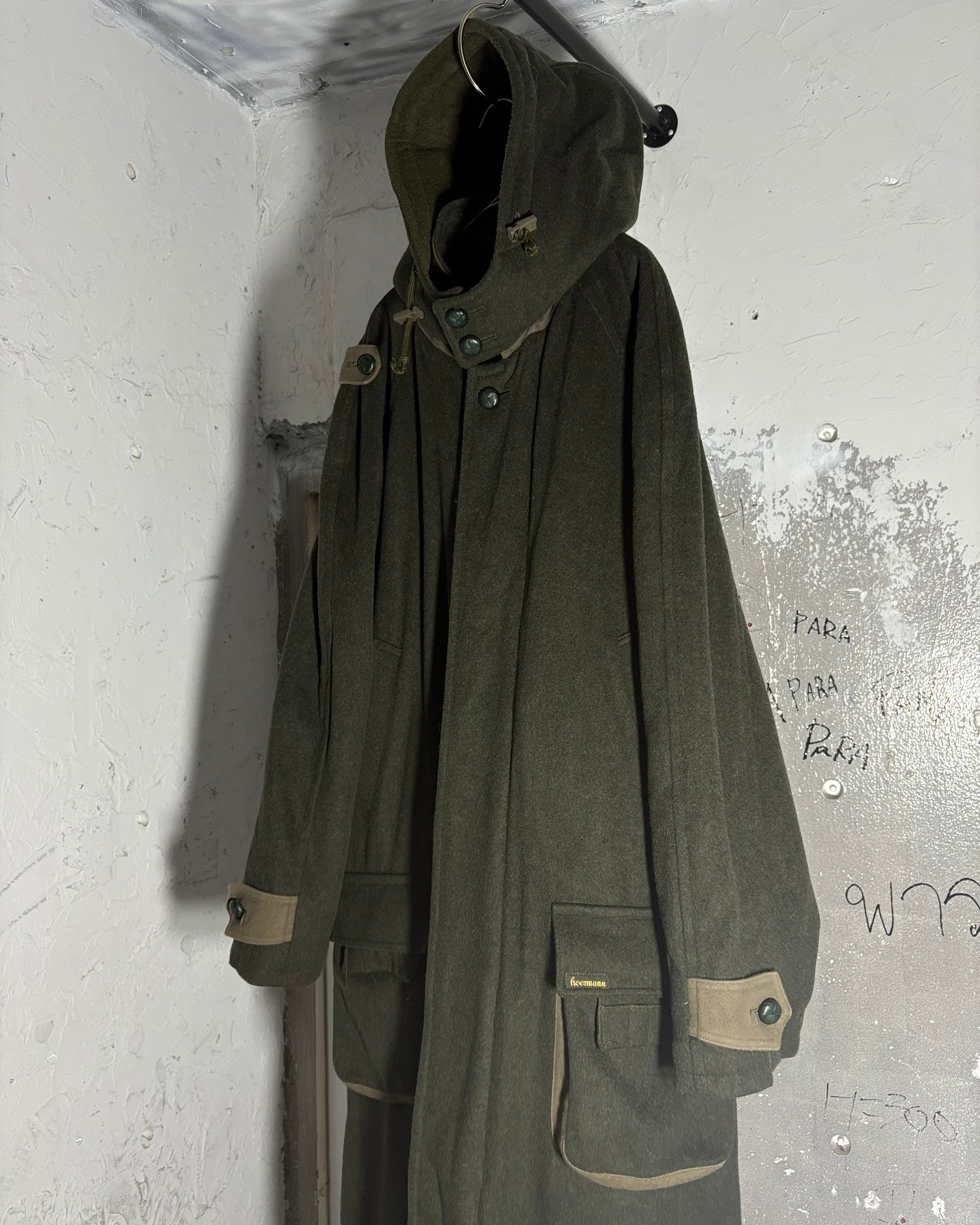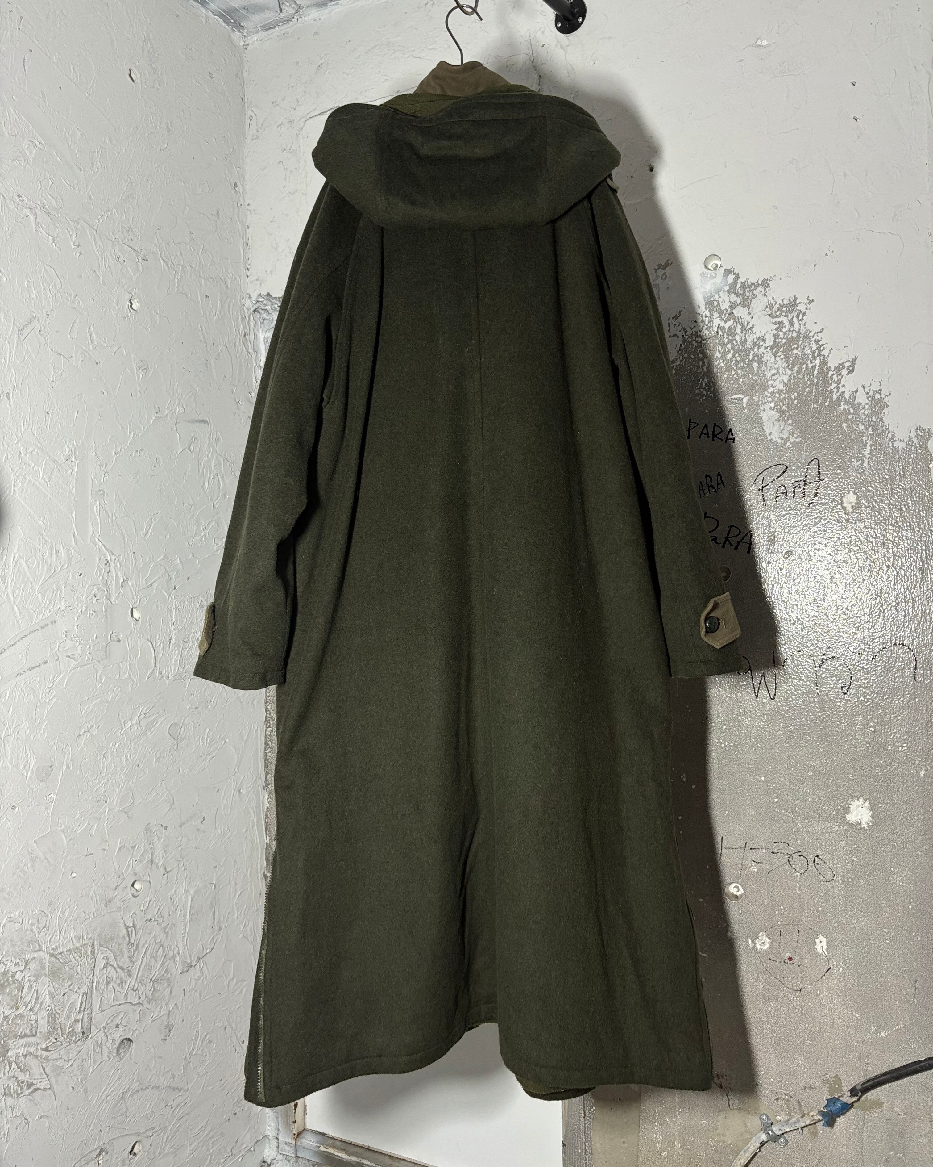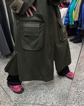 ザックリと織れるオーバーシルエットは、厚手のニットやレイヤードをしてもストレスがなく、冬のヘビーアウターとしても十分な存在感○