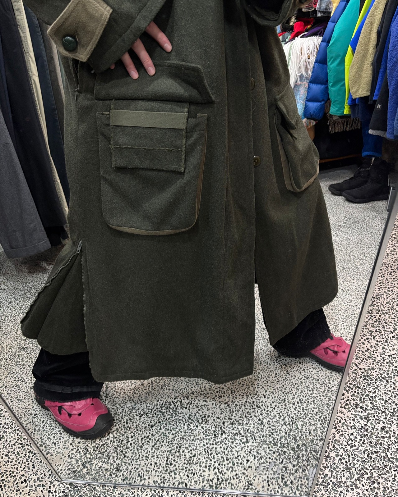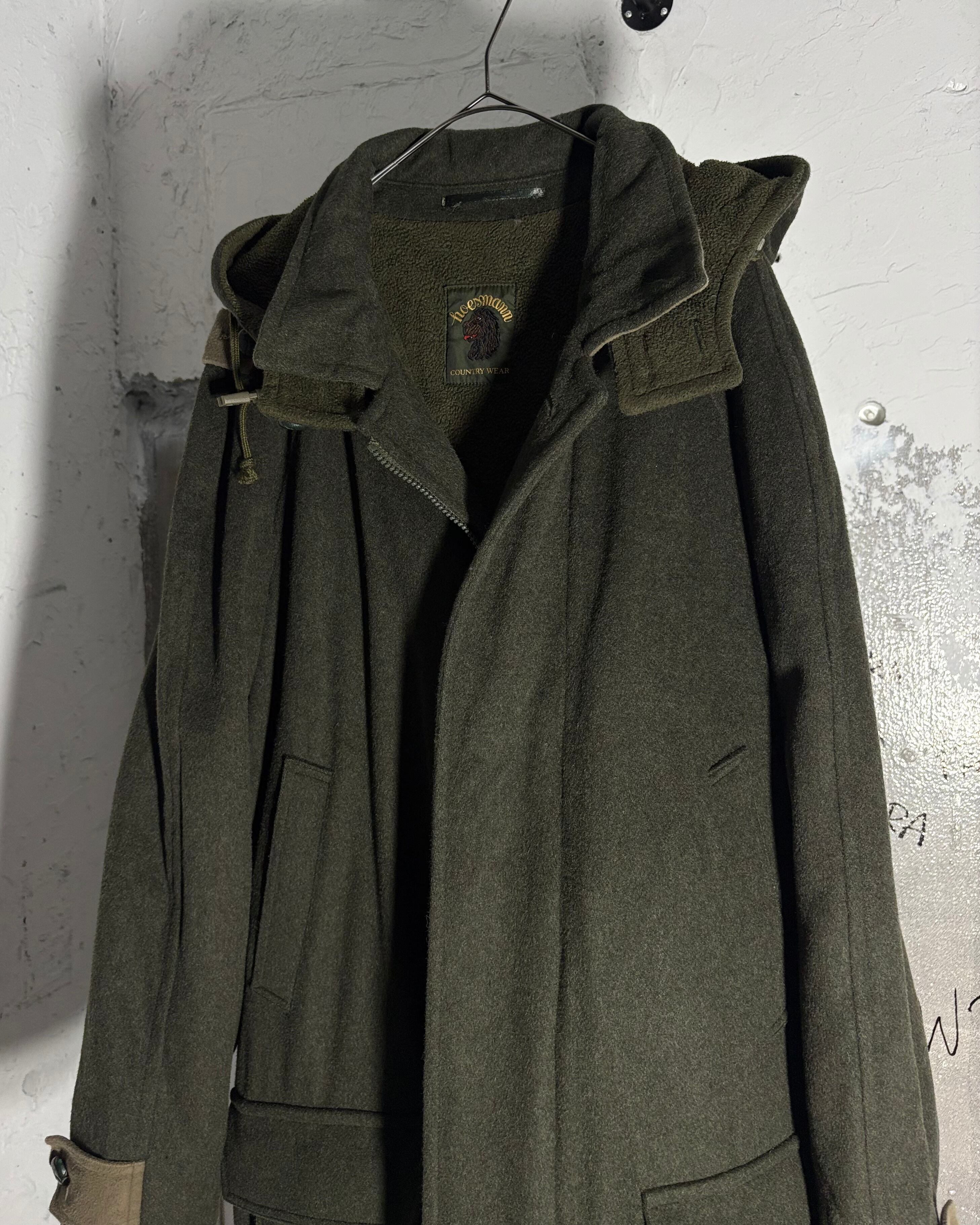 片方だけのエポレット、ハンティングらしい2重ポケット、スリットジップなど細かいディテールが効いてます。