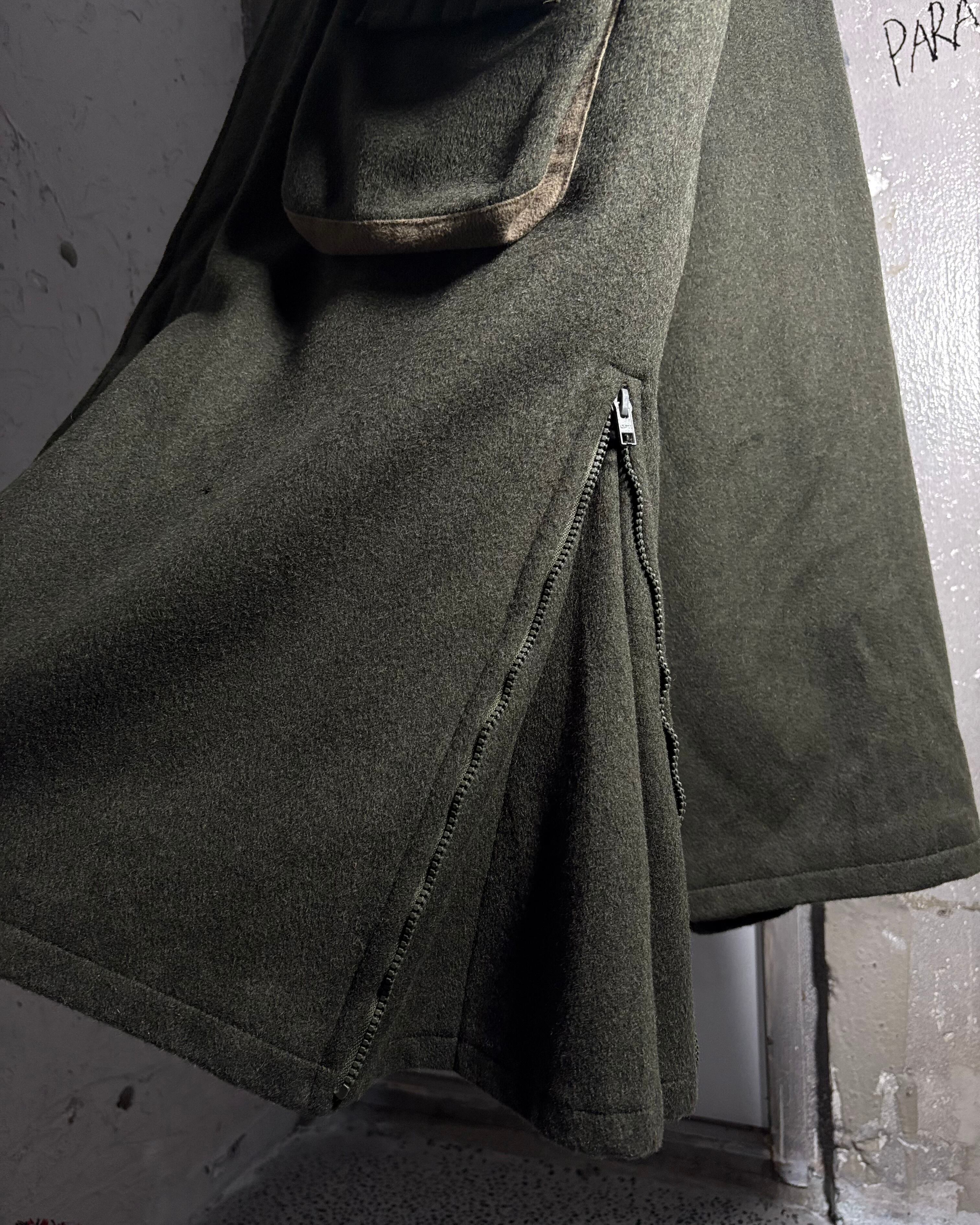 フロントはスタンドカラーメジップ&ボタン仕様で、タフな印象とミニマルな表情を両立。
