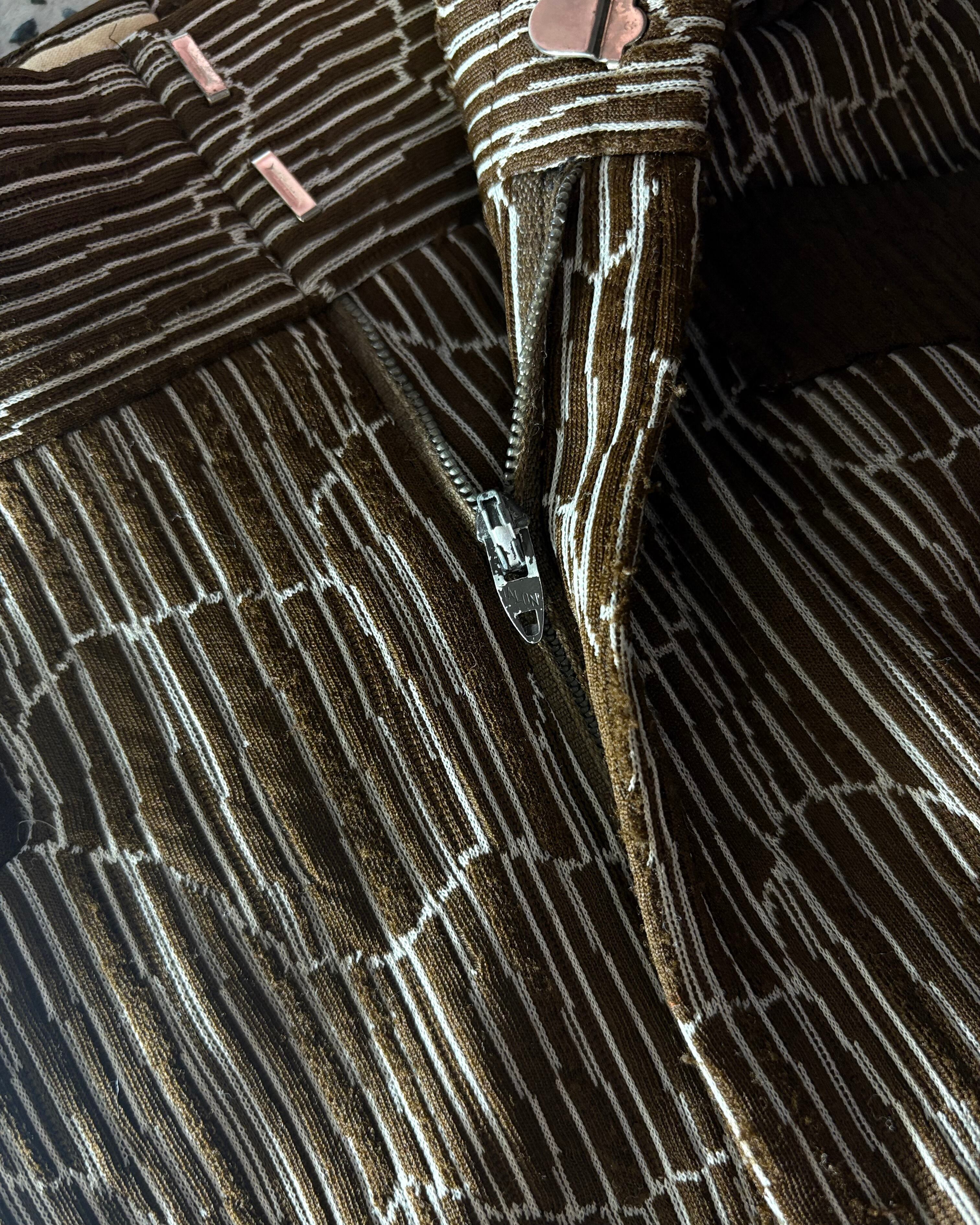 1970s. woven pattern flare pants