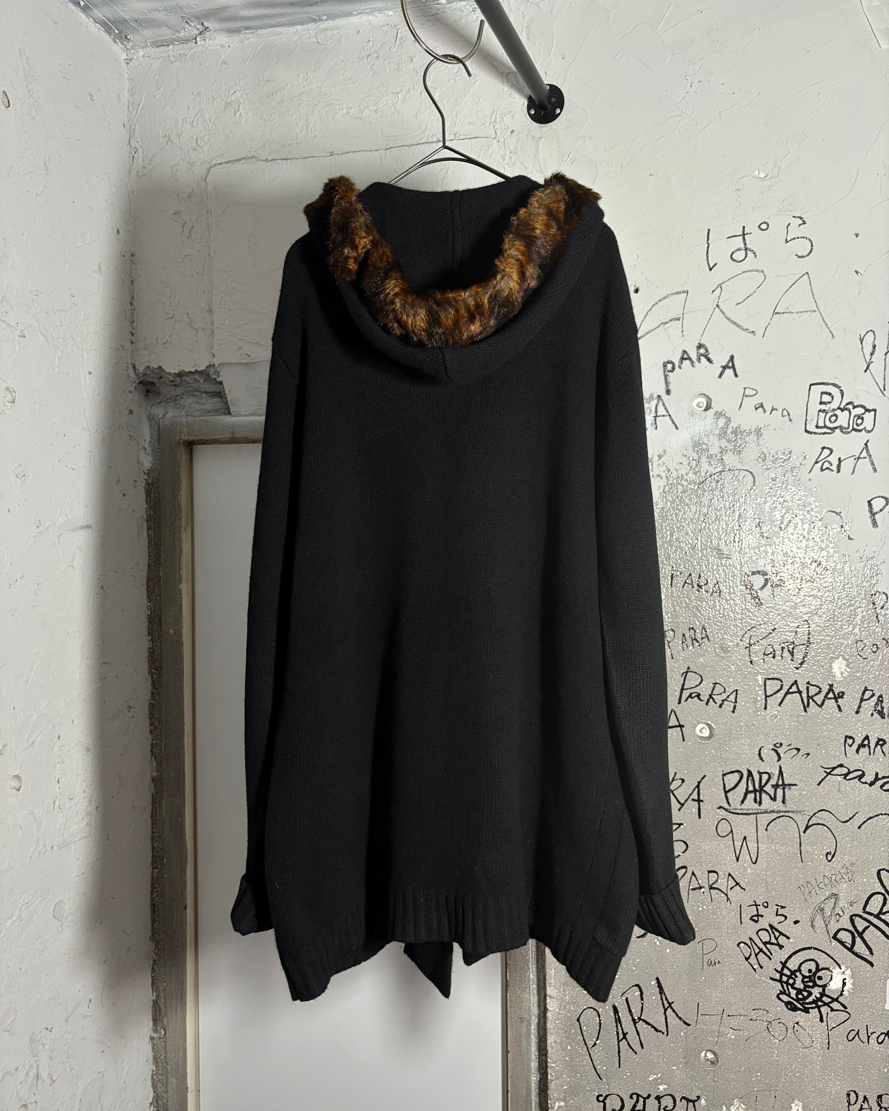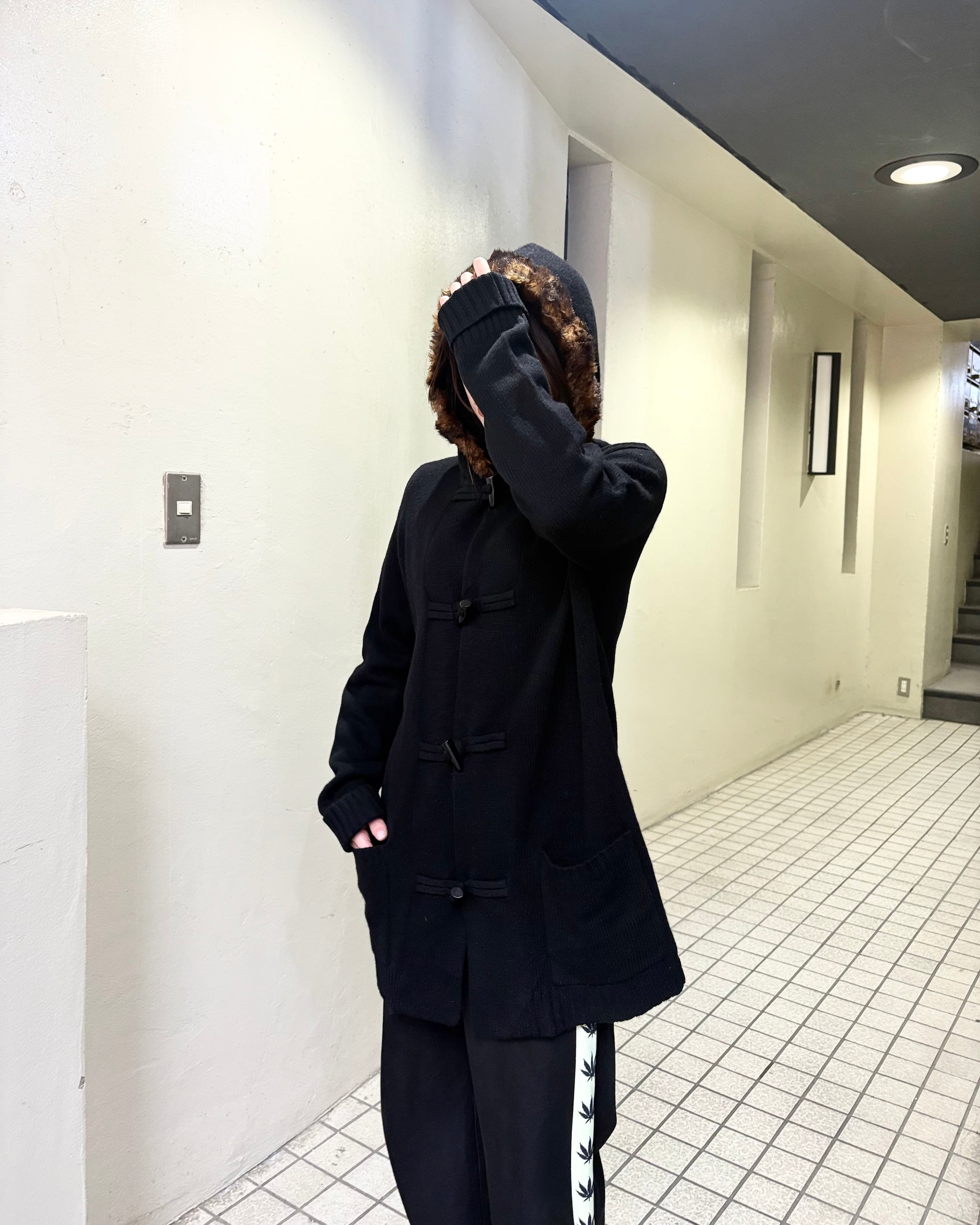 merino wool × cashmere × angola rabbit fur hood knit duffle jacket