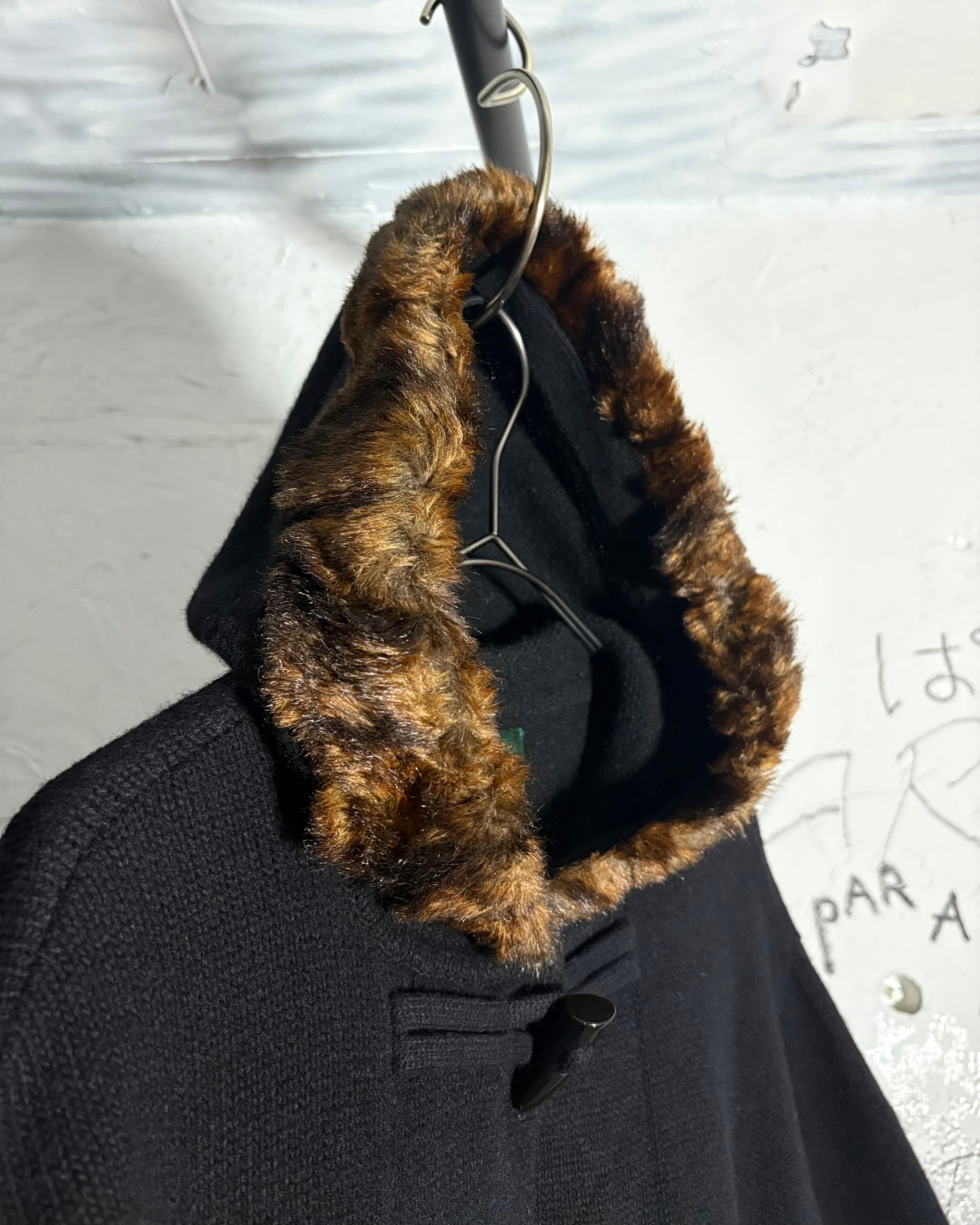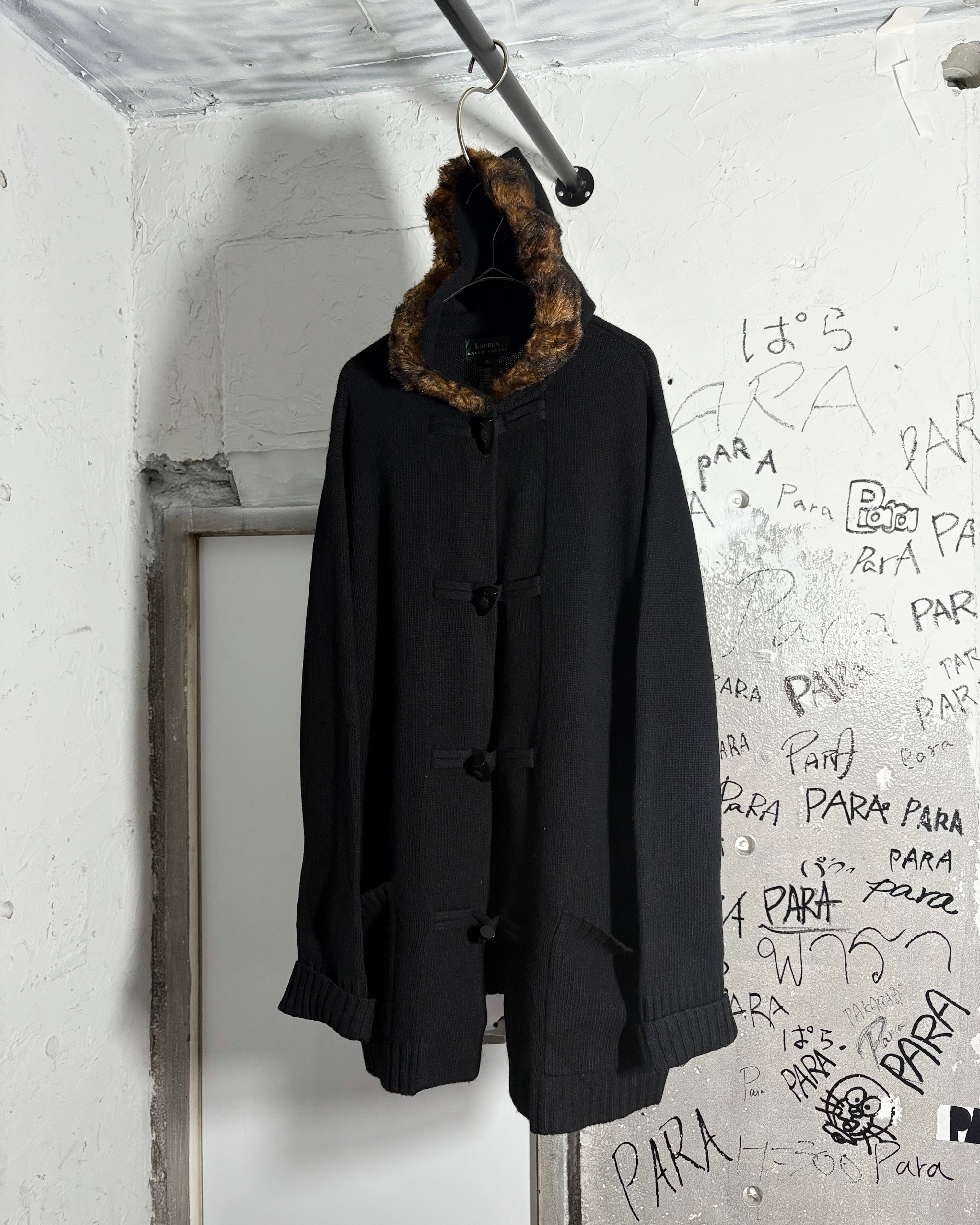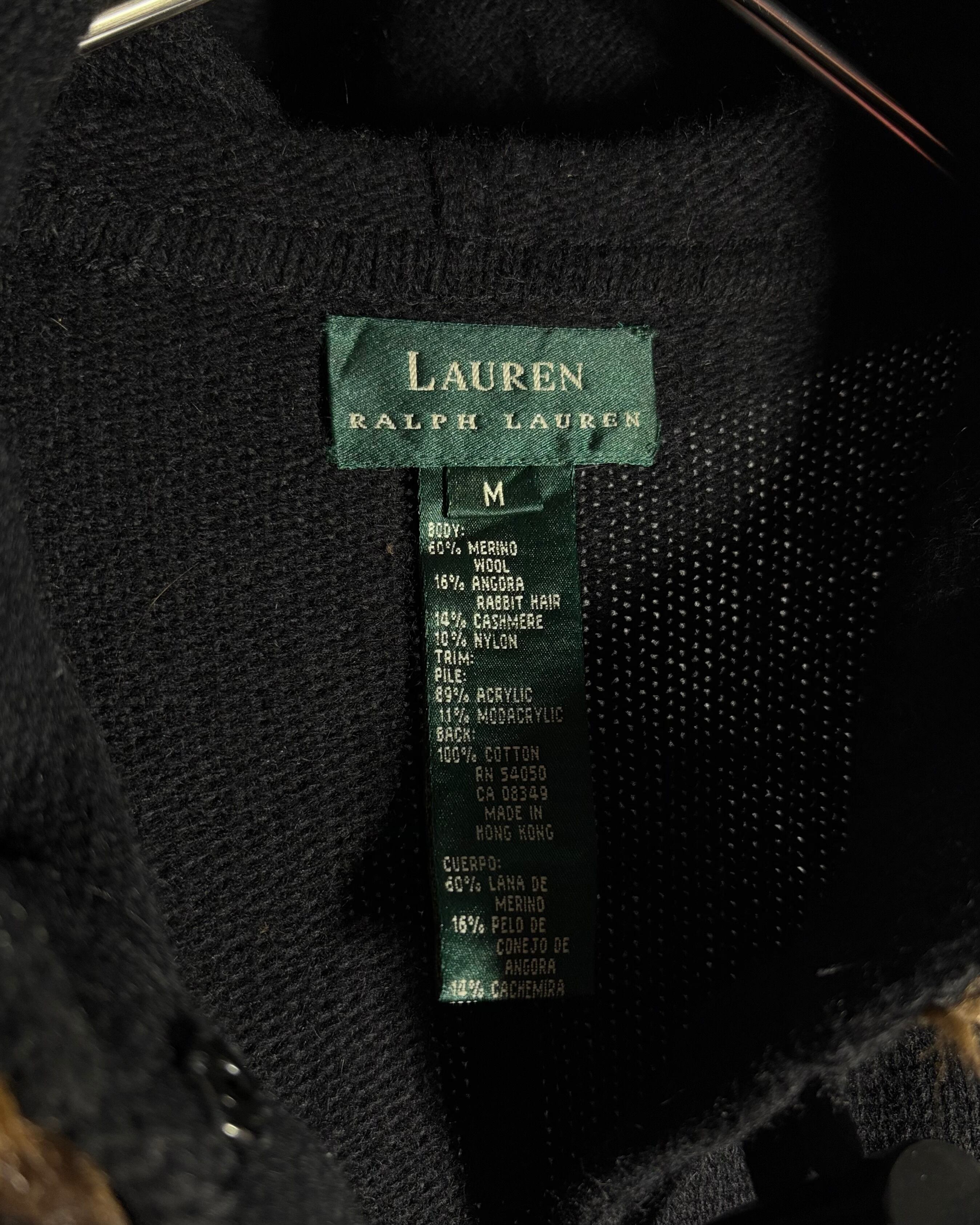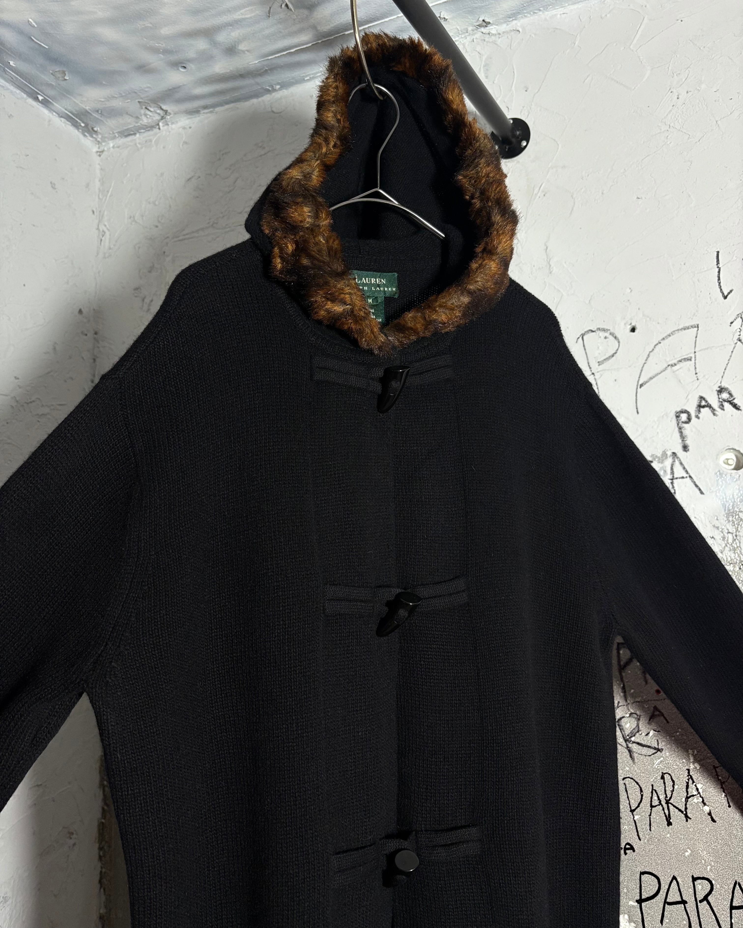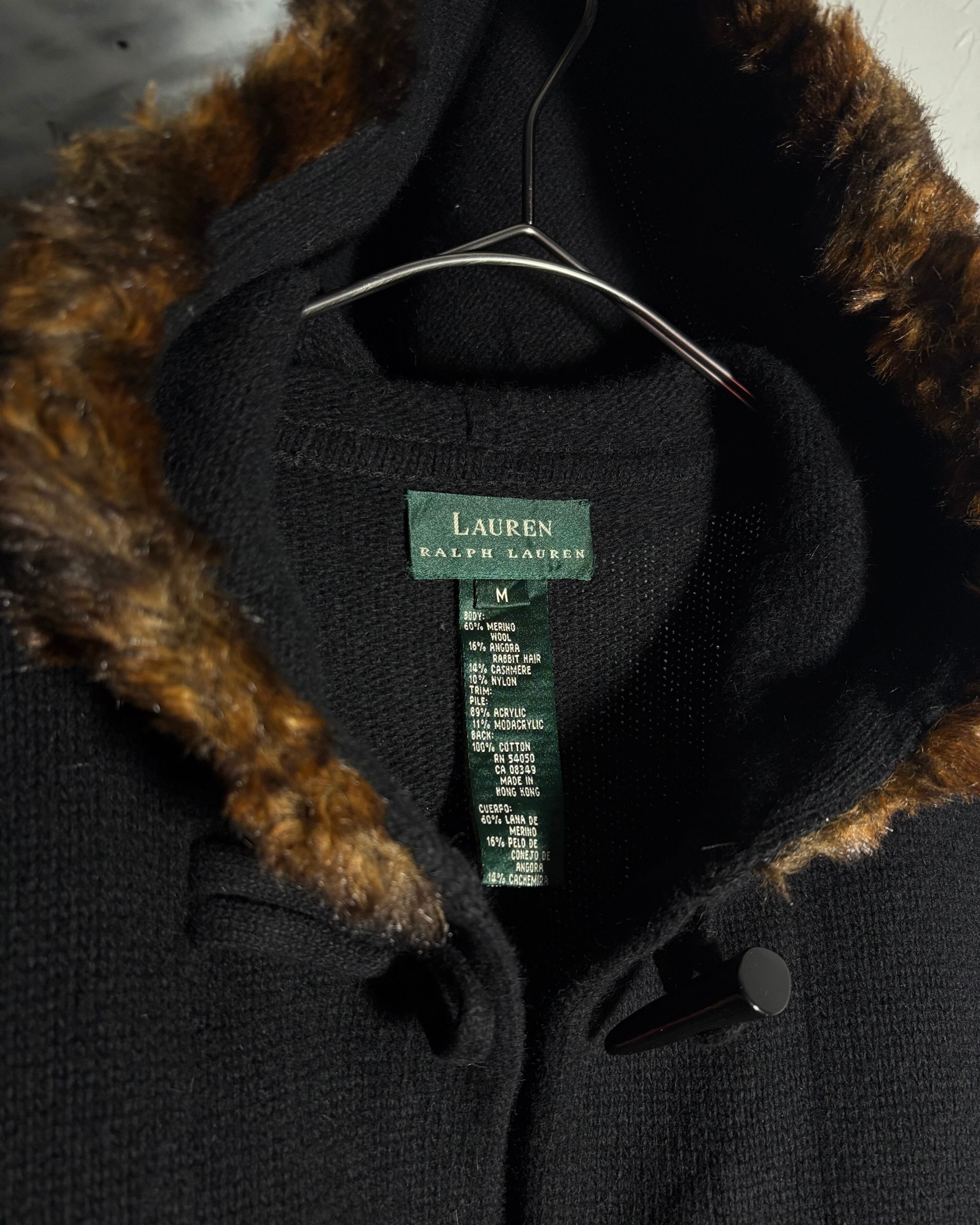 1990s. lauren ralph lauren merino wool × cashmere × angola rabbit fur hood knit duffle jacket
