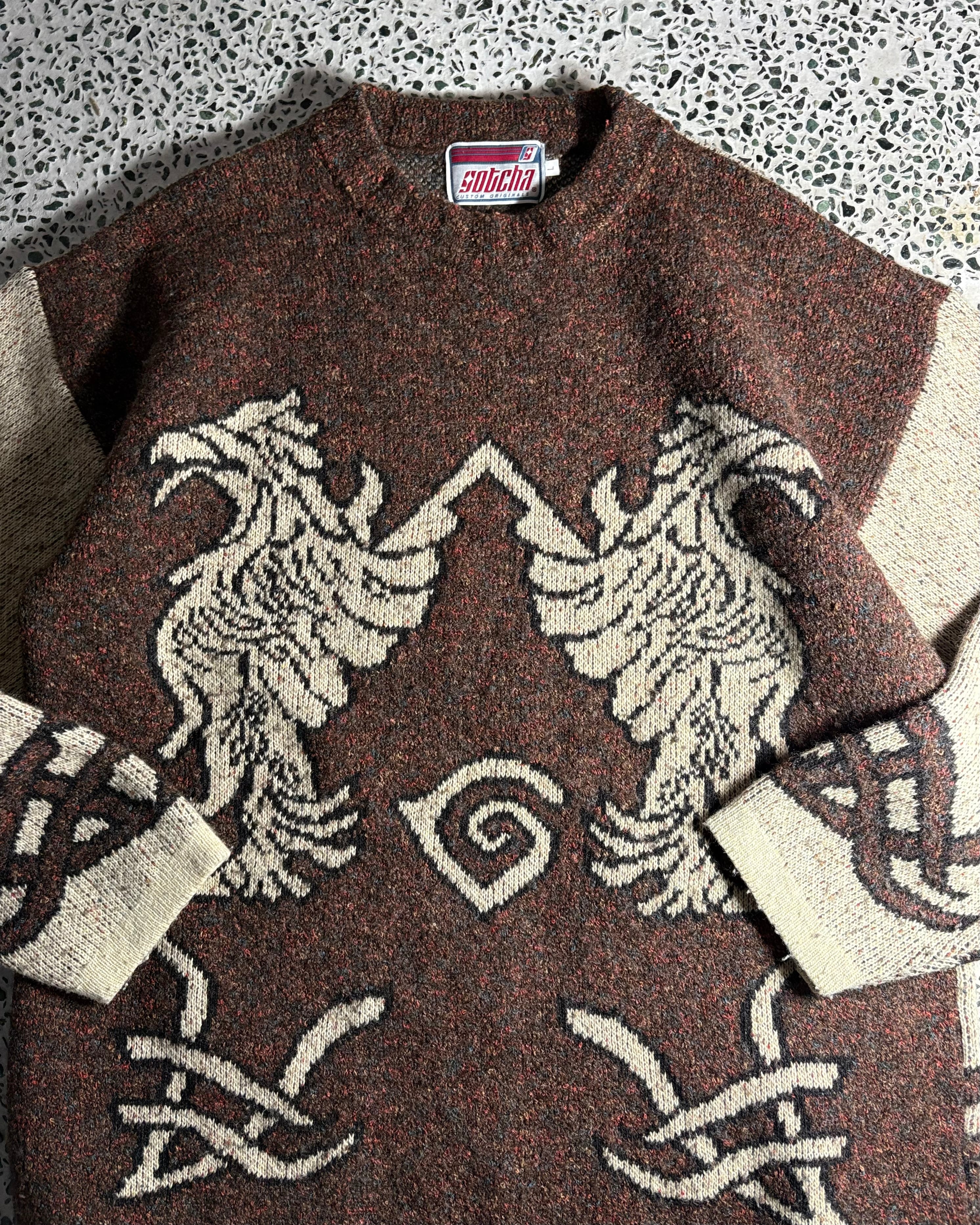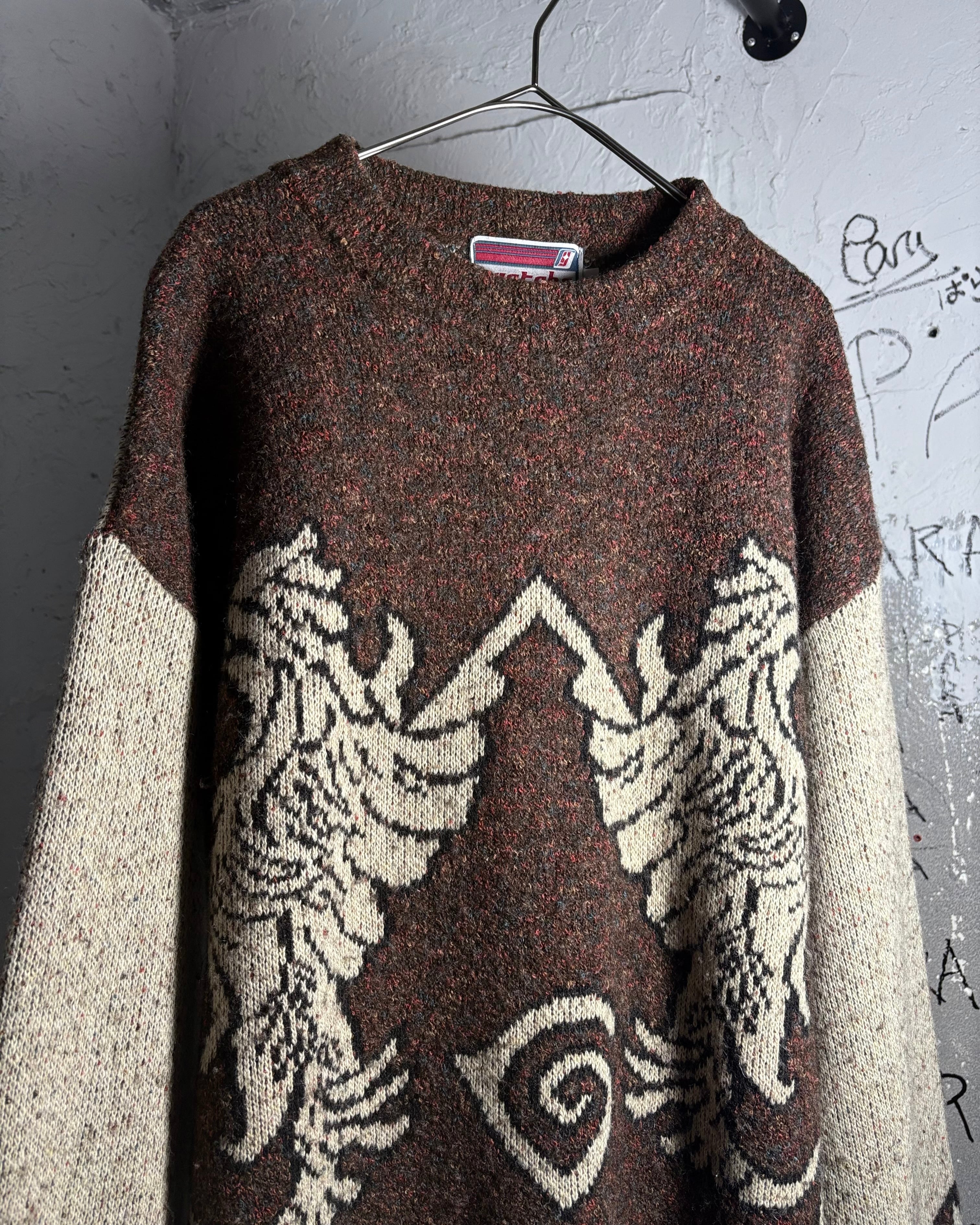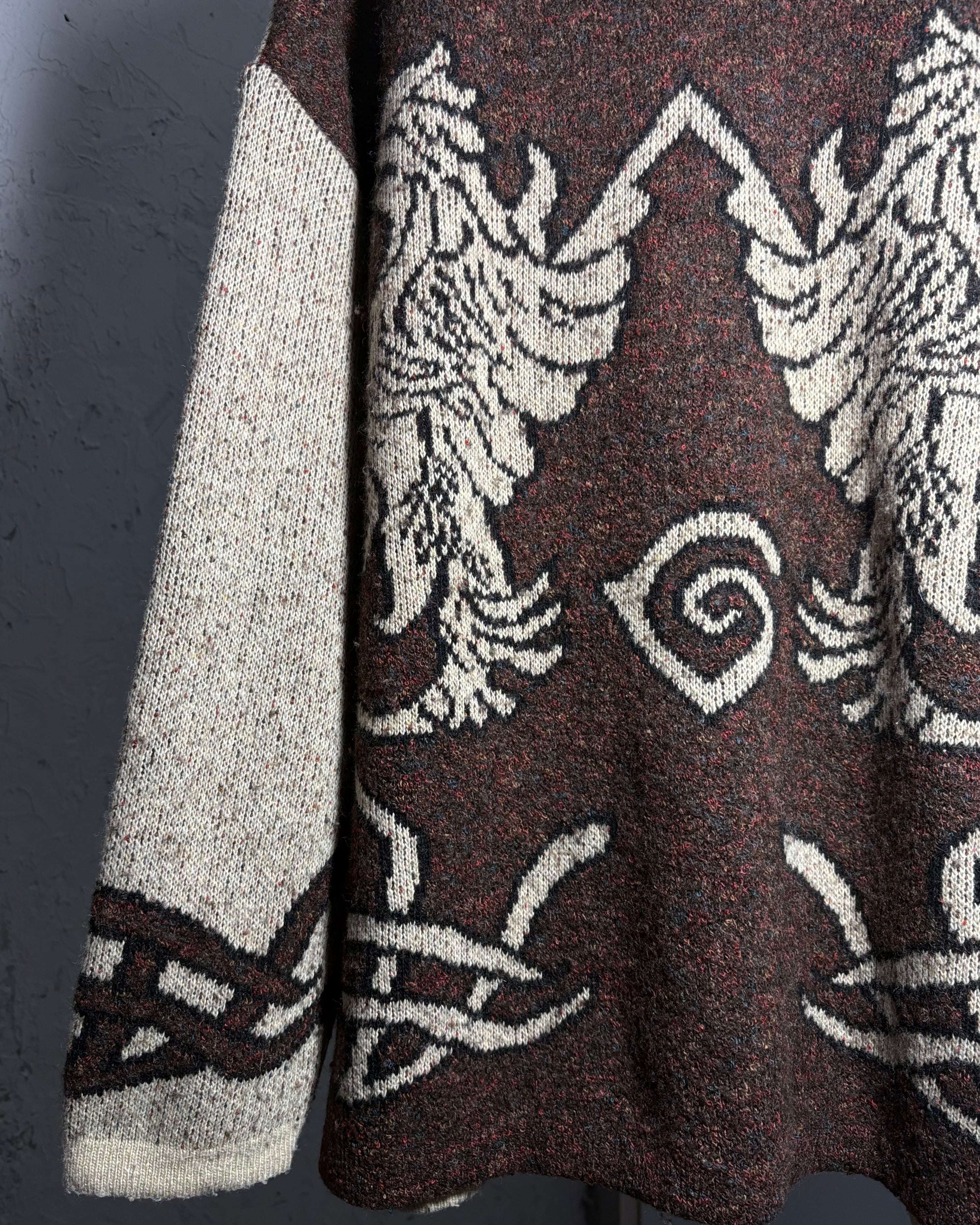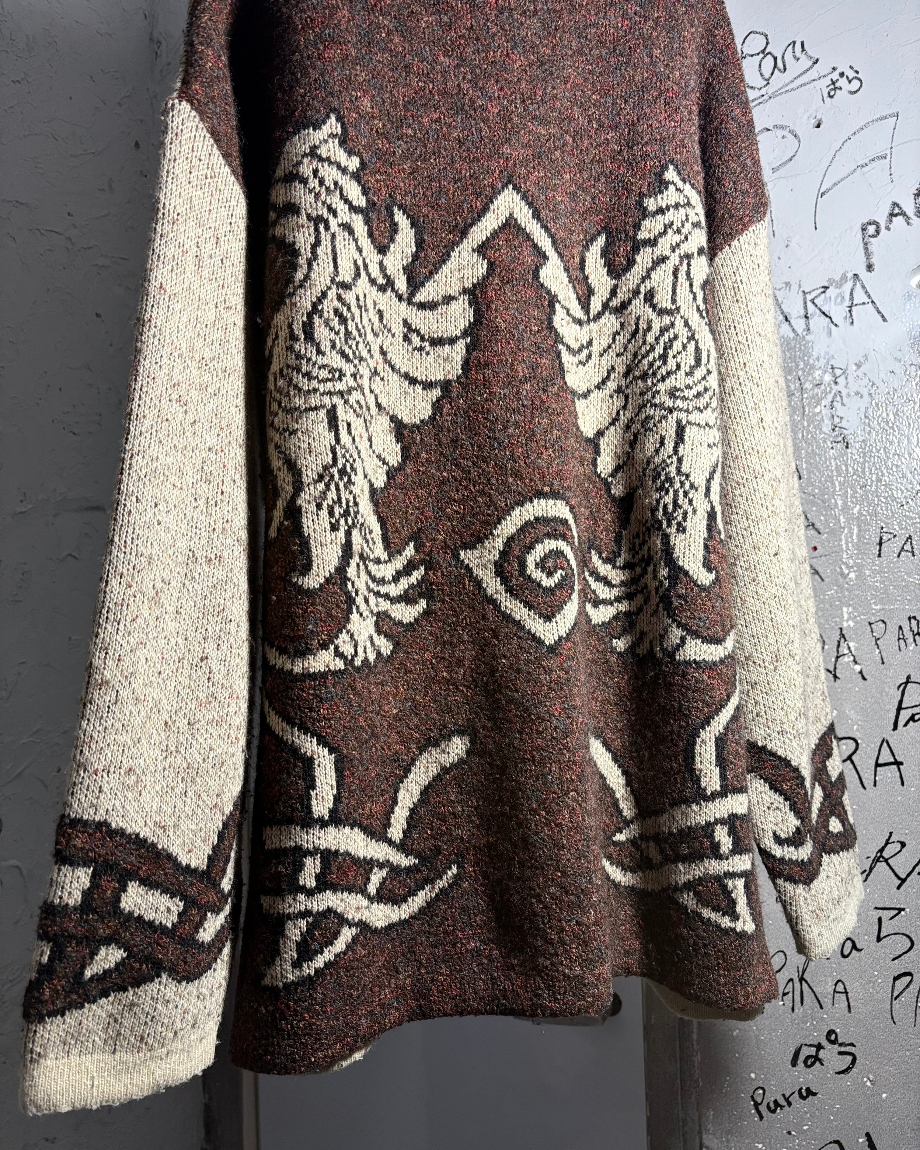 ネップの入った少し乾いた質感に、大きく入った鳥のモチーフに渦巻き