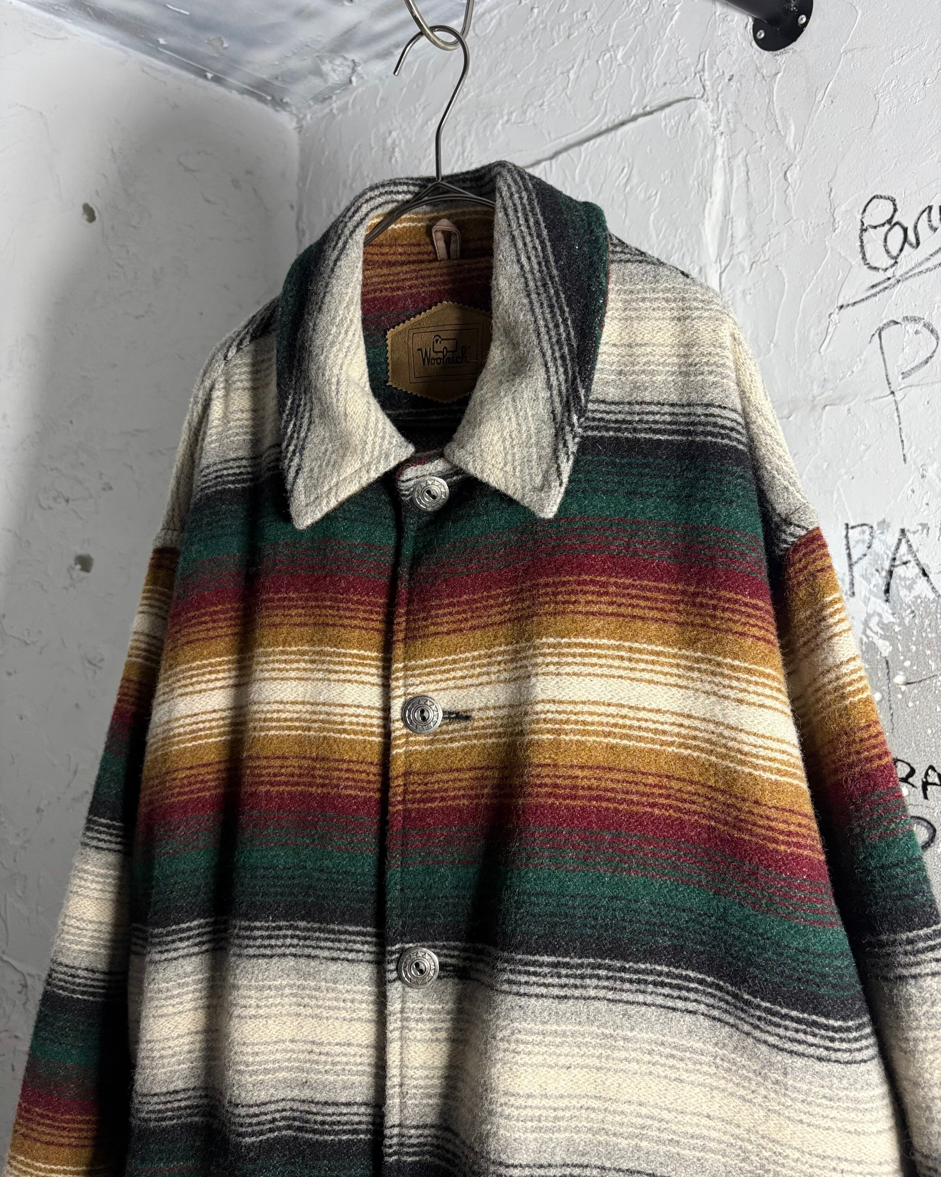 1980s. wool rich native stripe blanket wool jacket made in usa