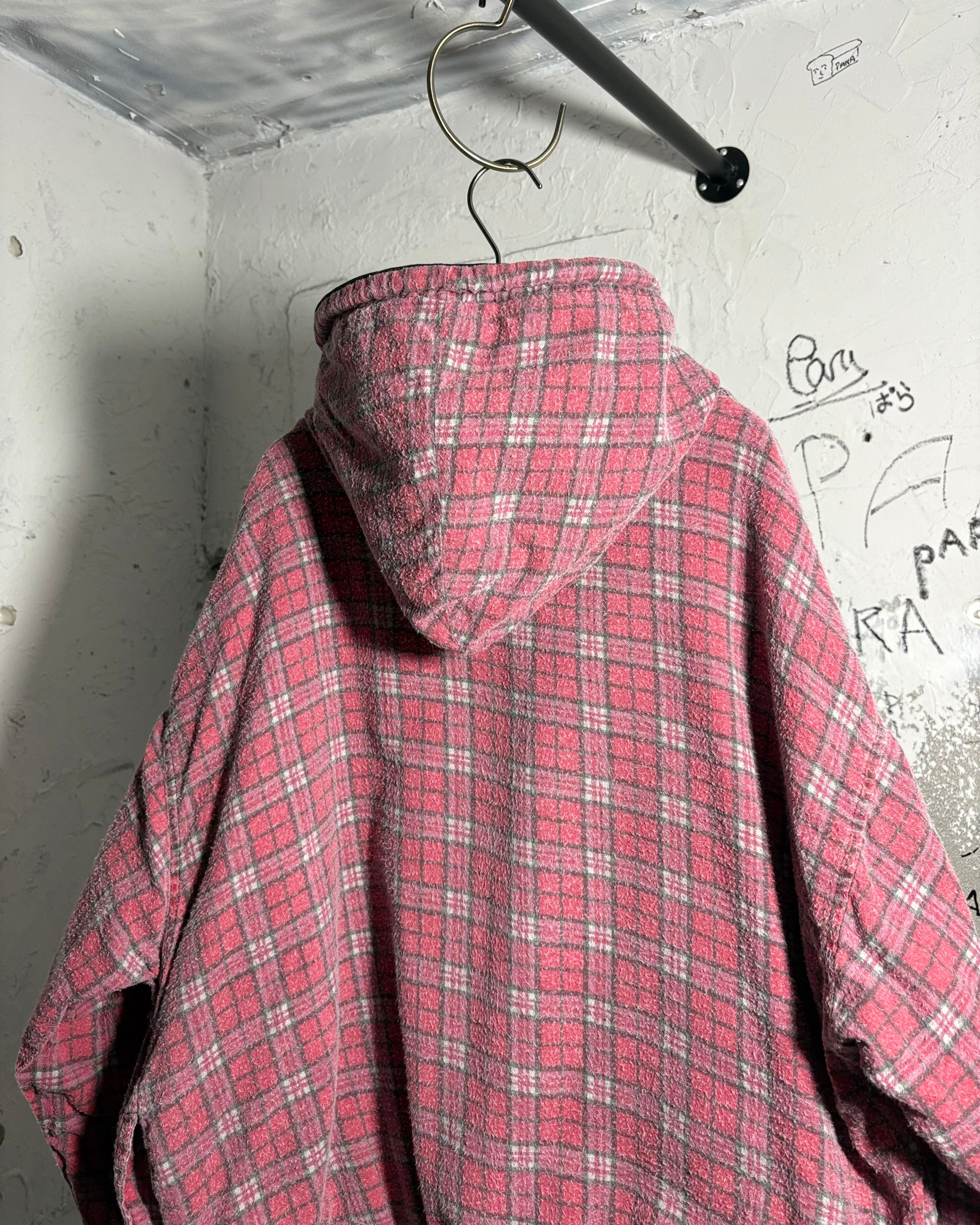 ブラック無地 スエット× くすんだピンクチェックのネル