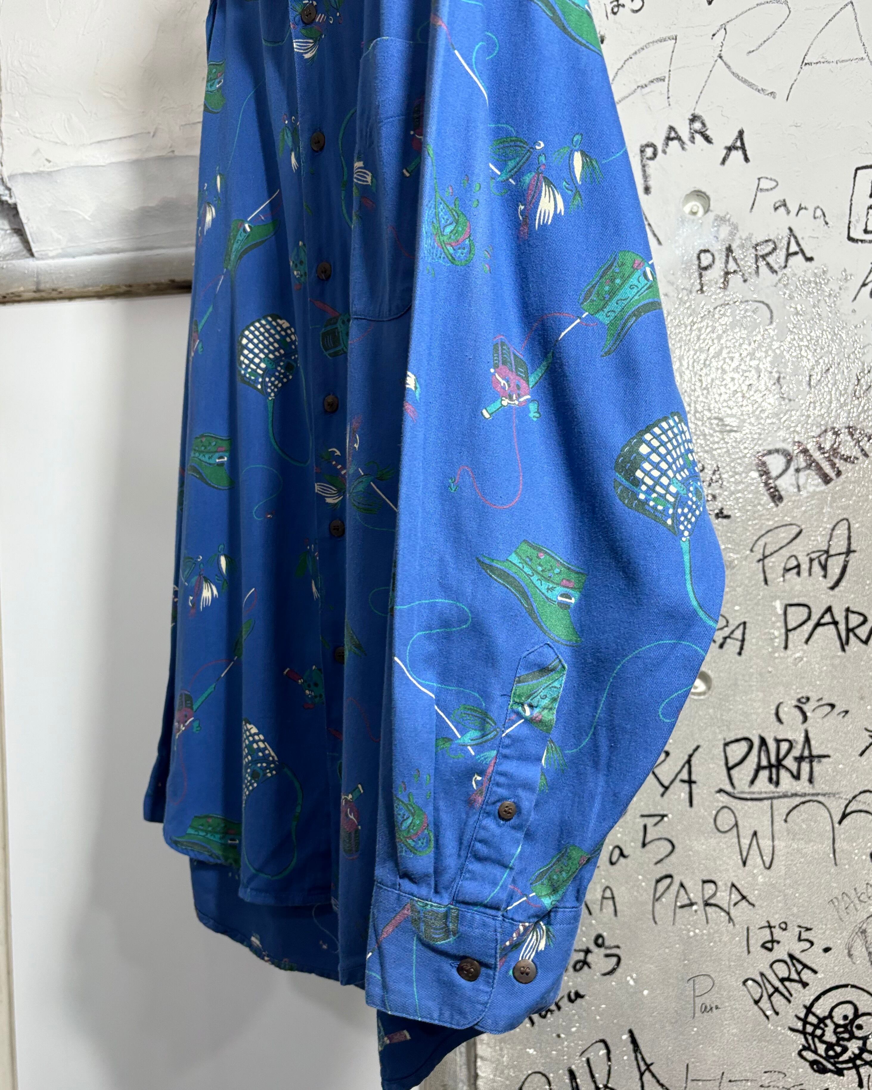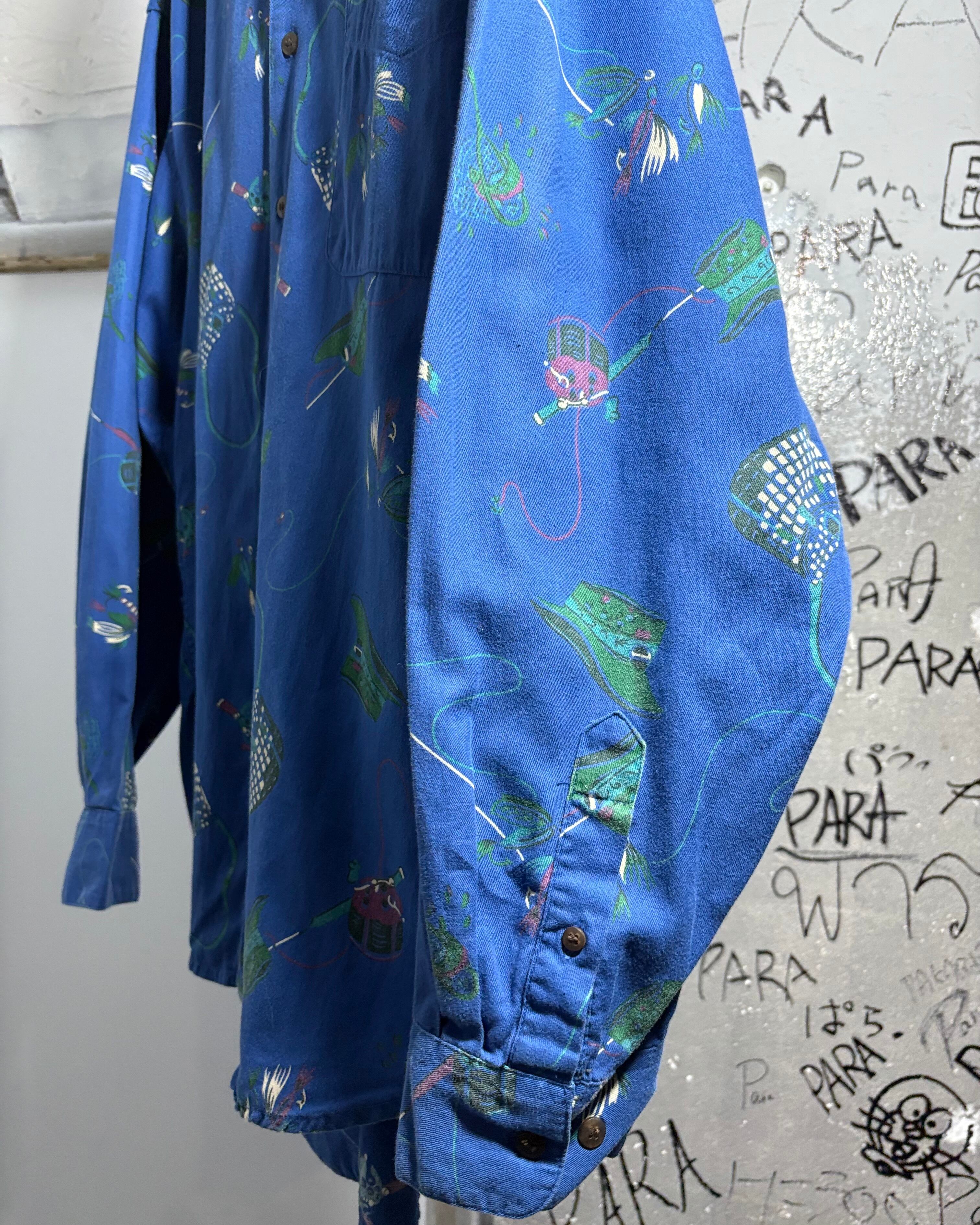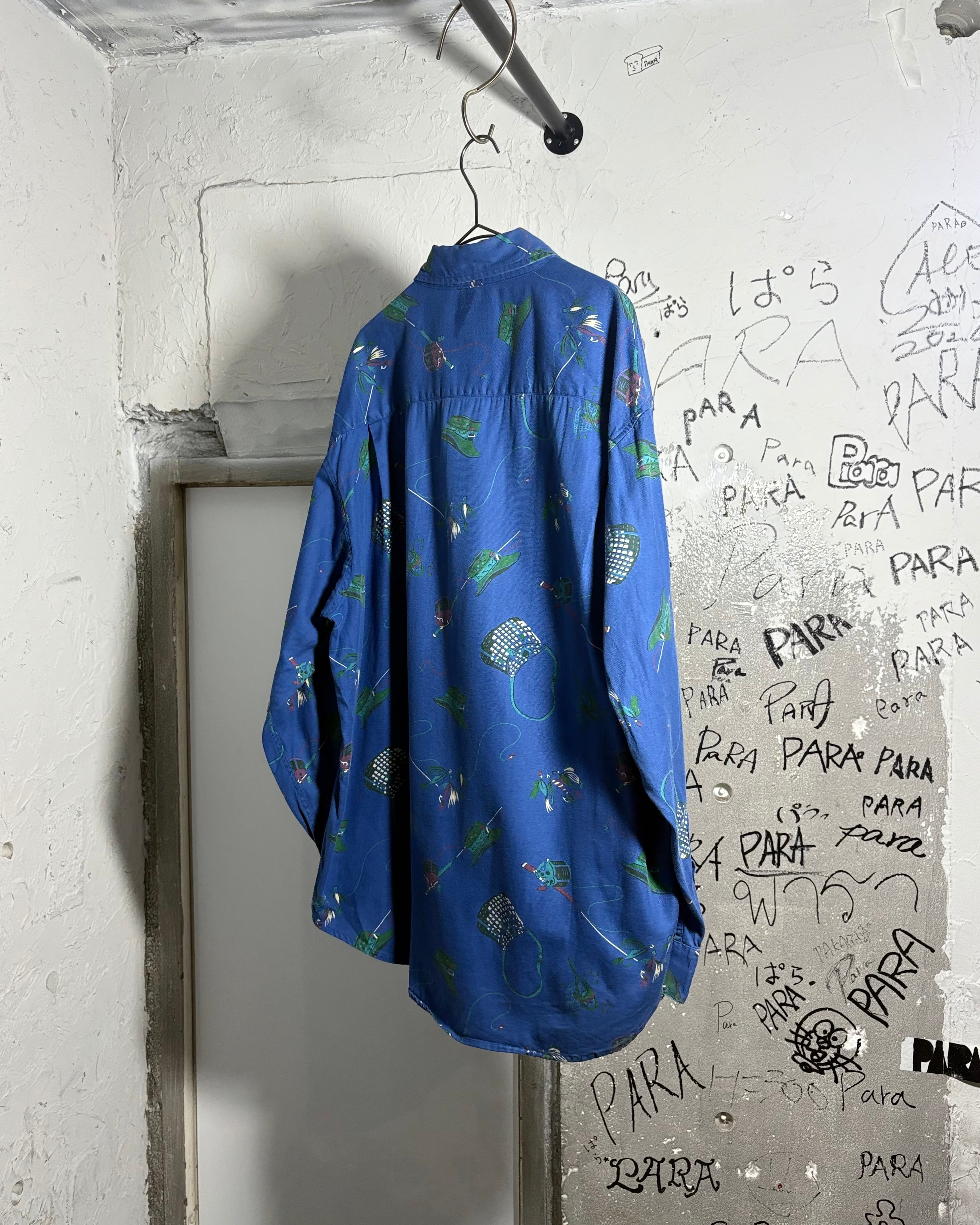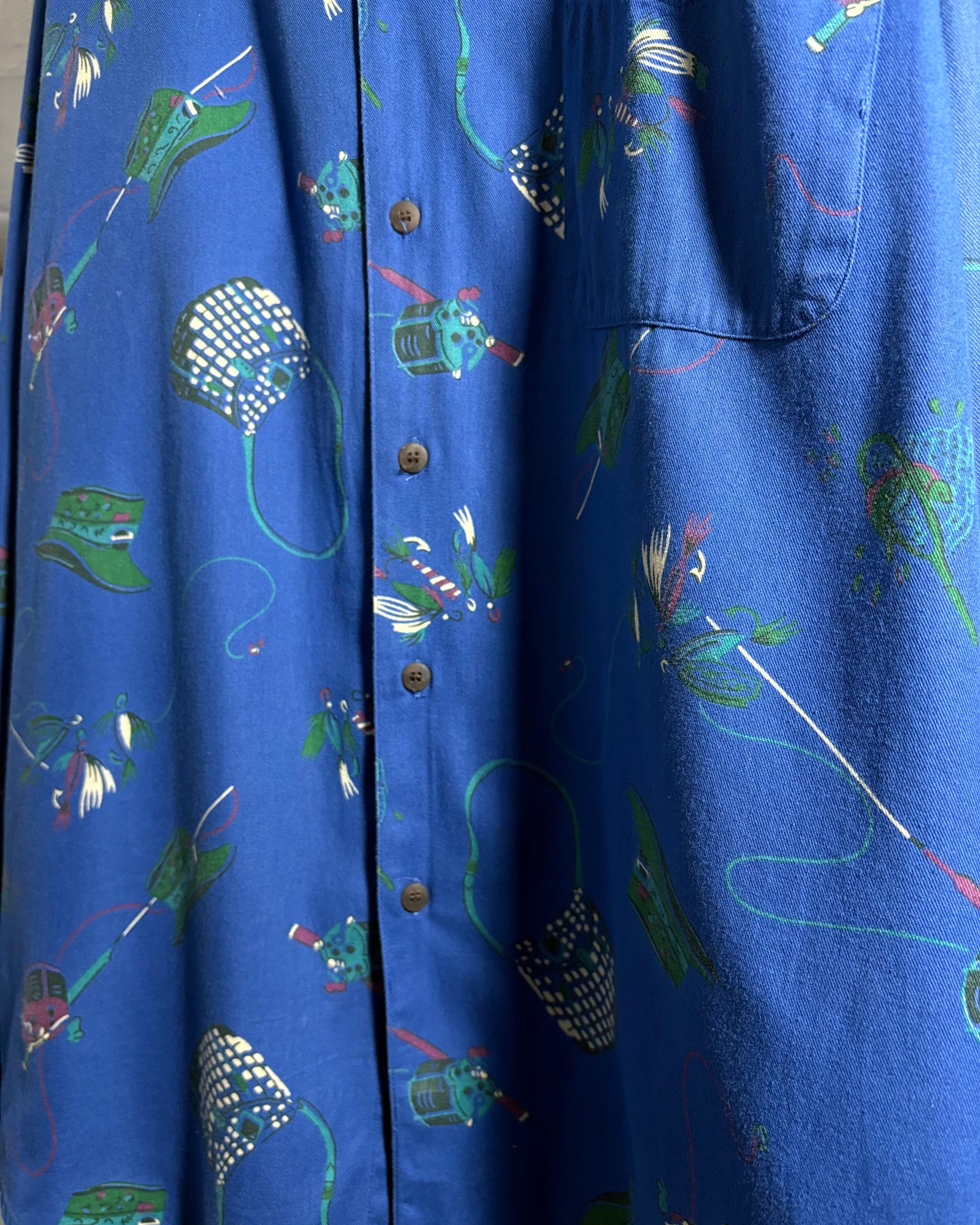 フライフィッシングモチーフの総柄シャツ