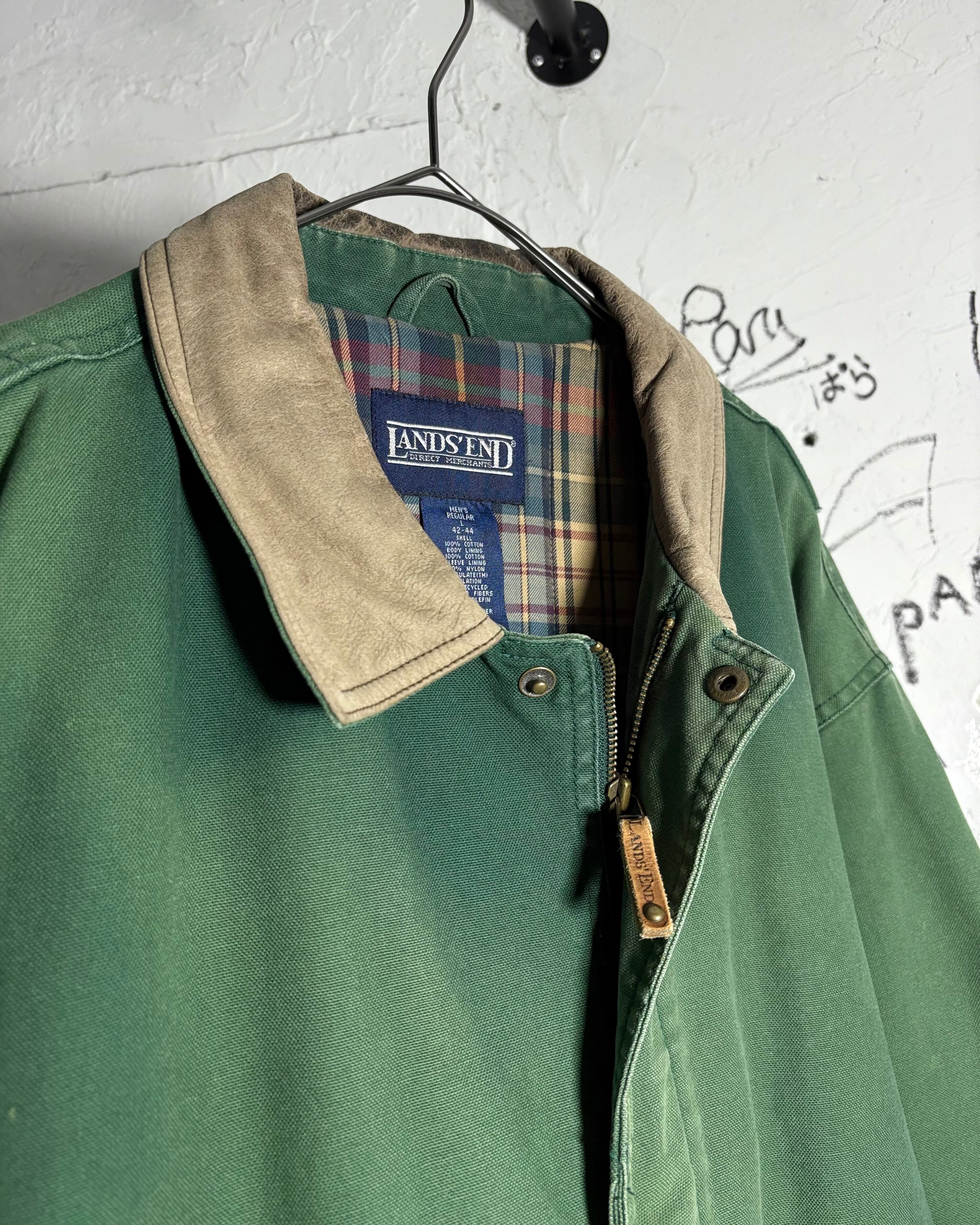 フェードしたグリーンのコットンシェルに、