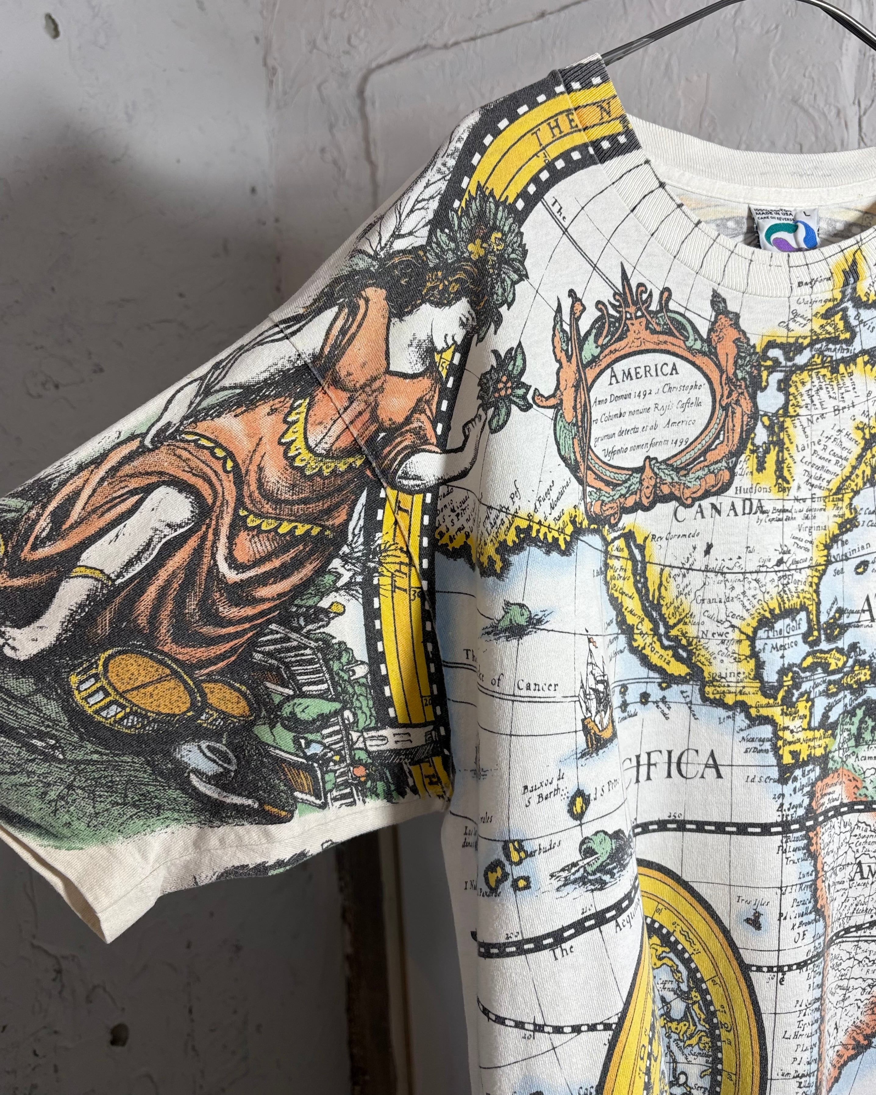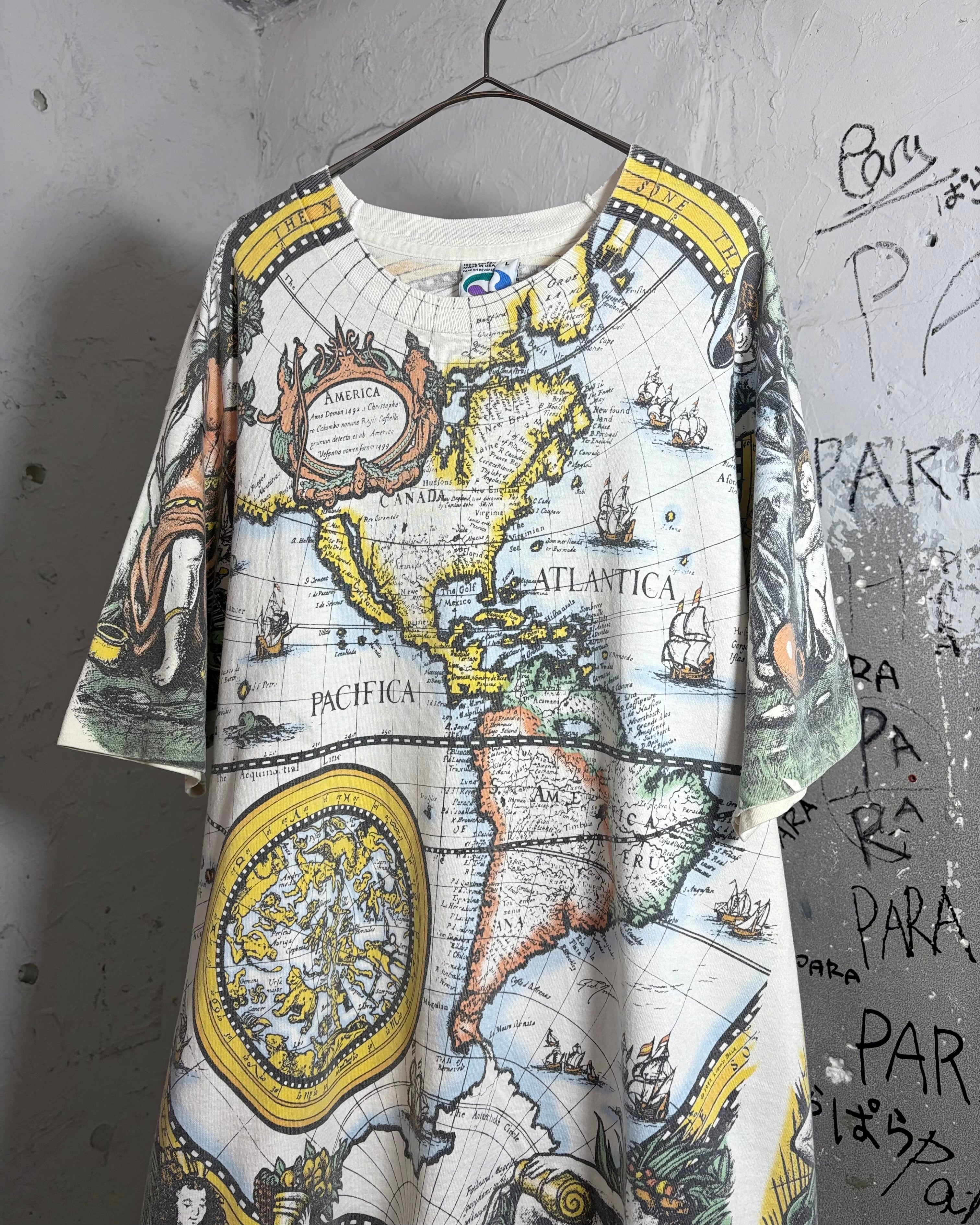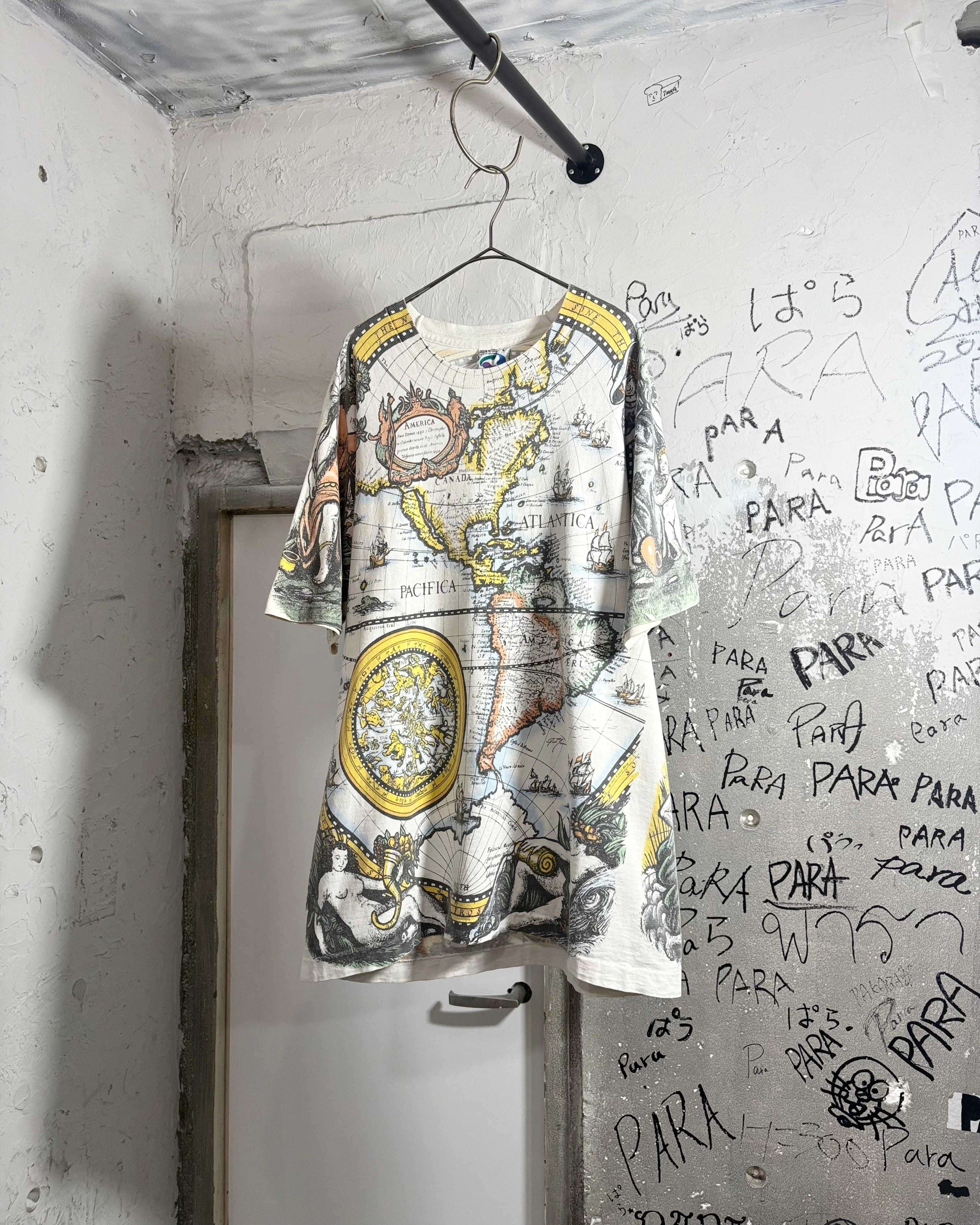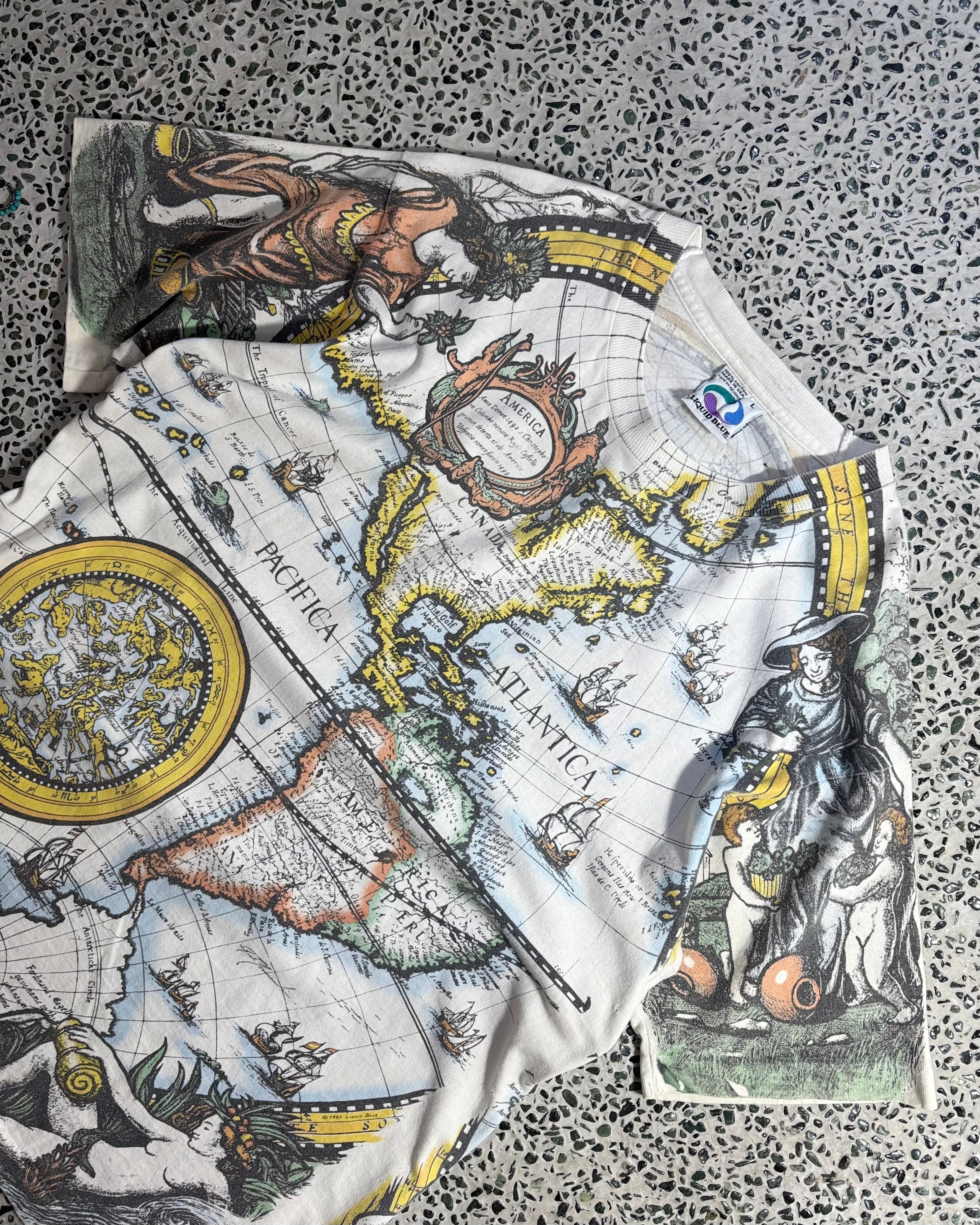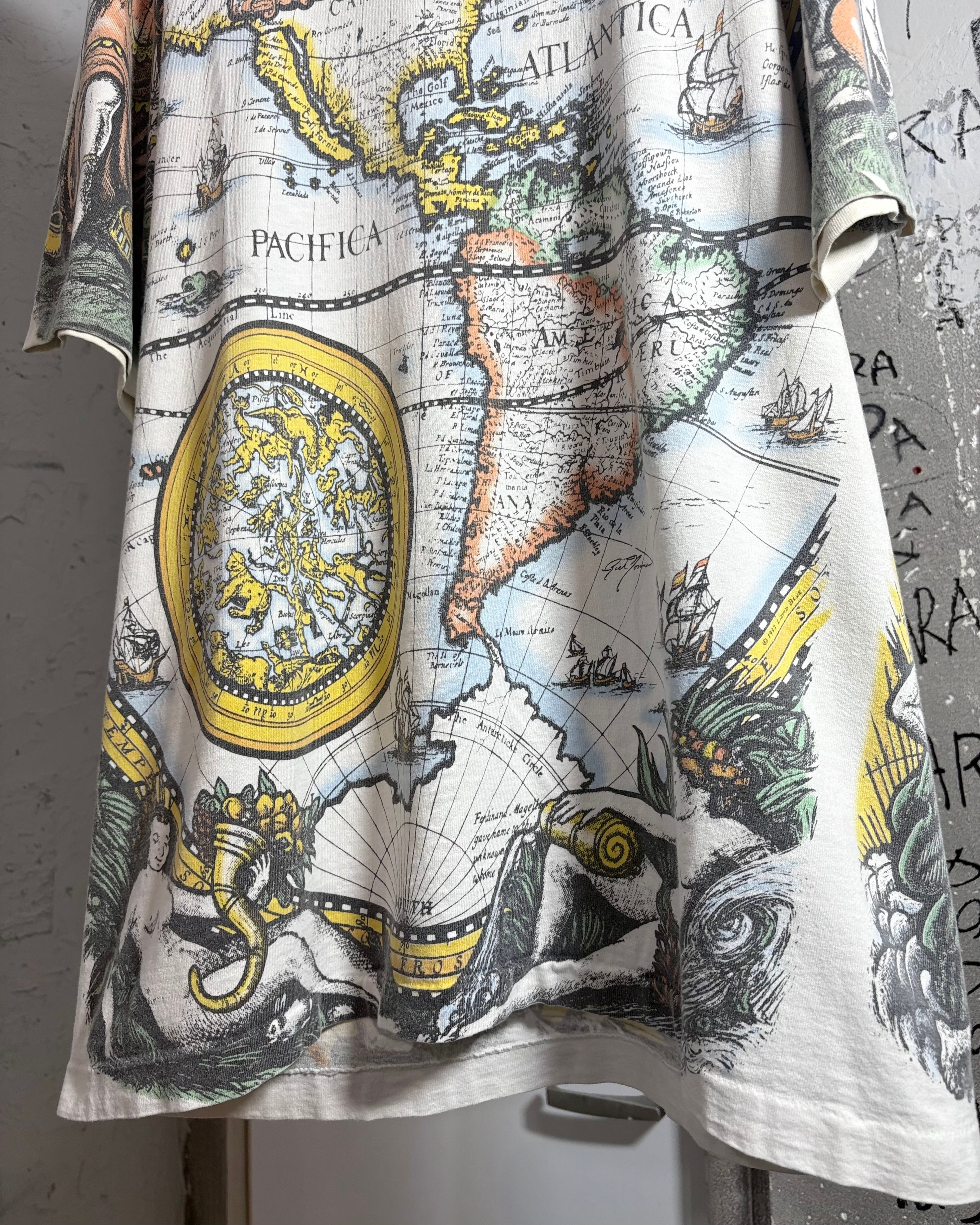 1990s. liquid blue antique world map tee