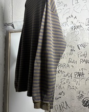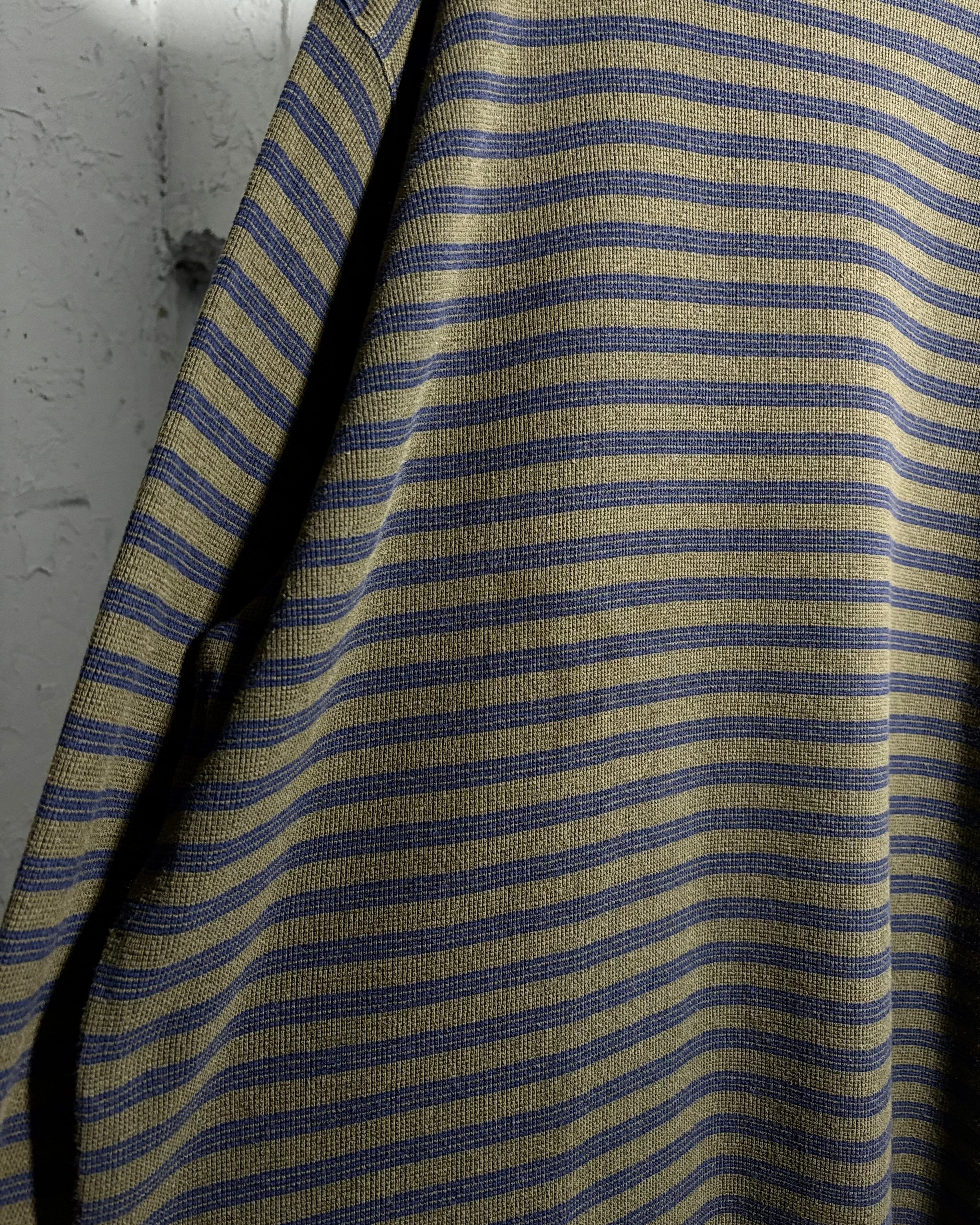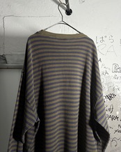 オリーブベースに、ネイビーの鹿子生地ボーダーロンT