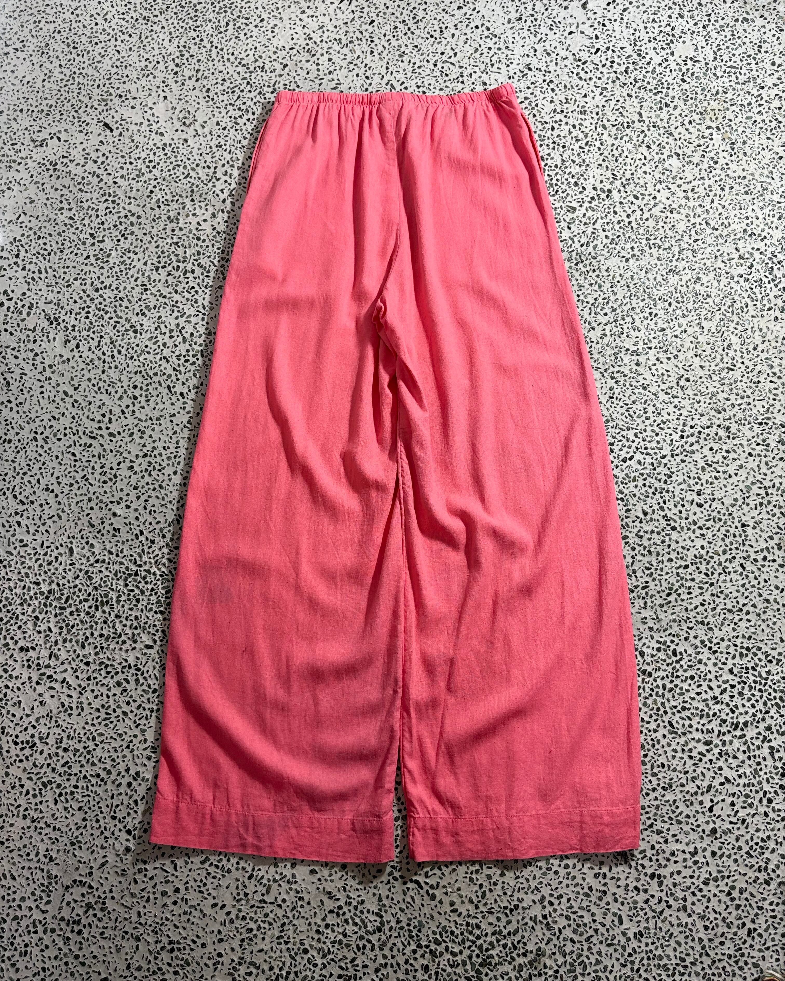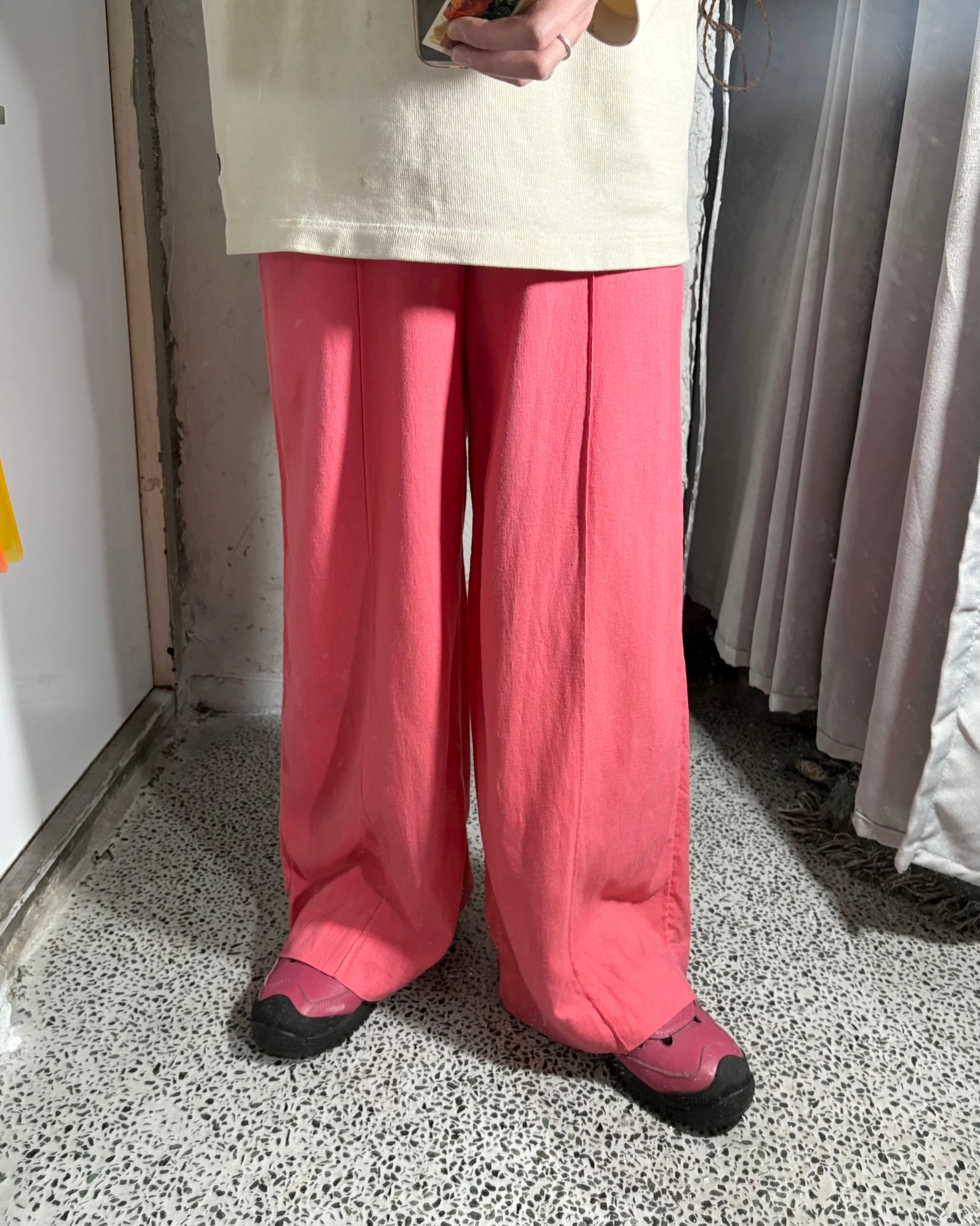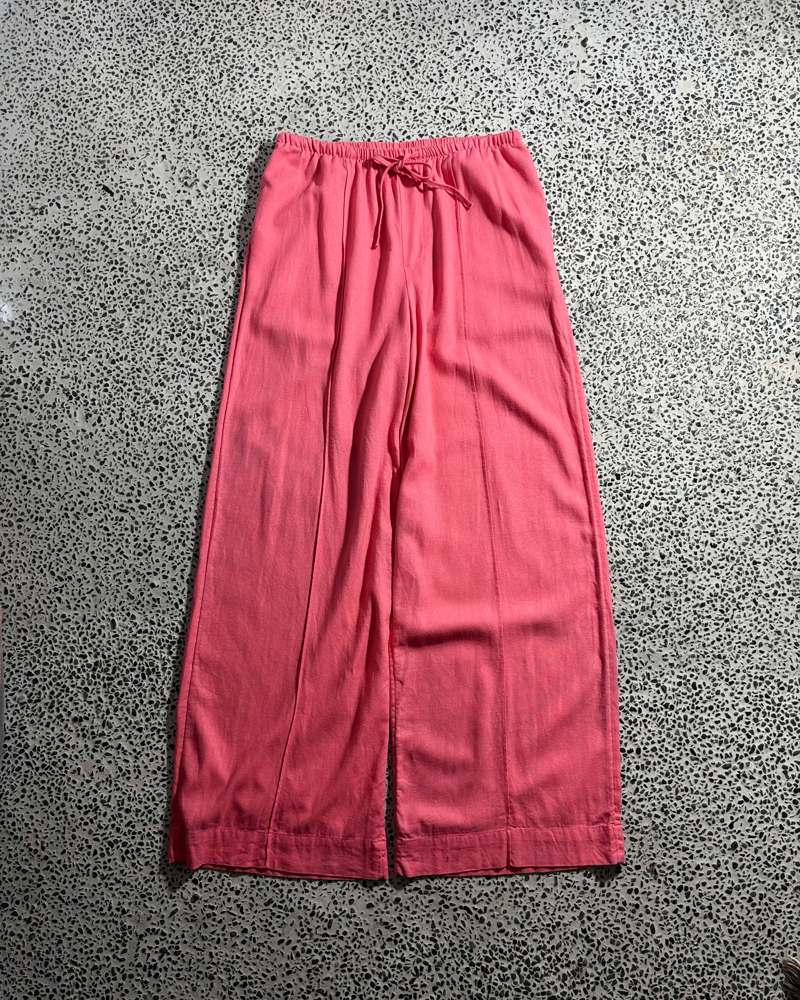 2000s. linen rayon over silhouette easy pants
