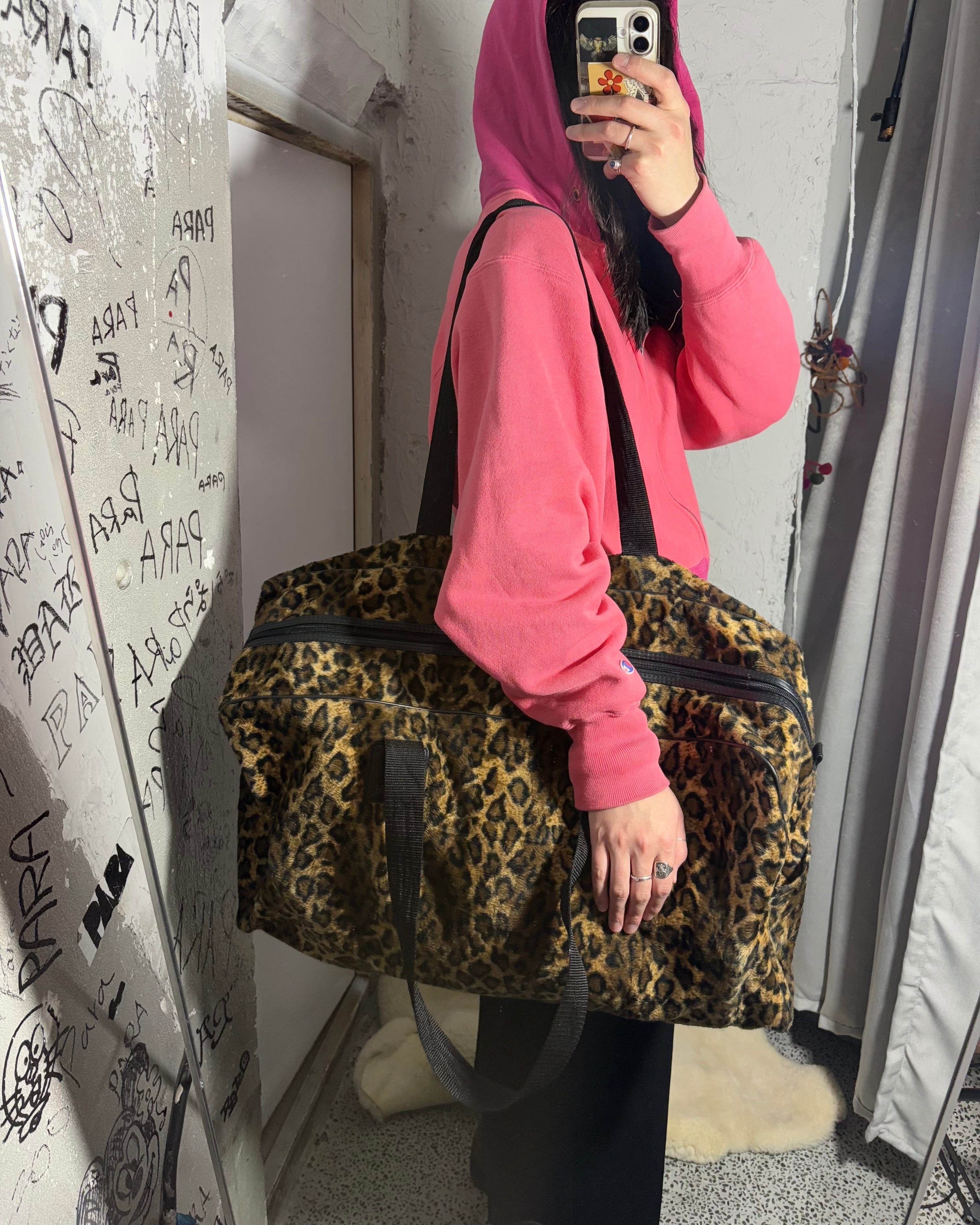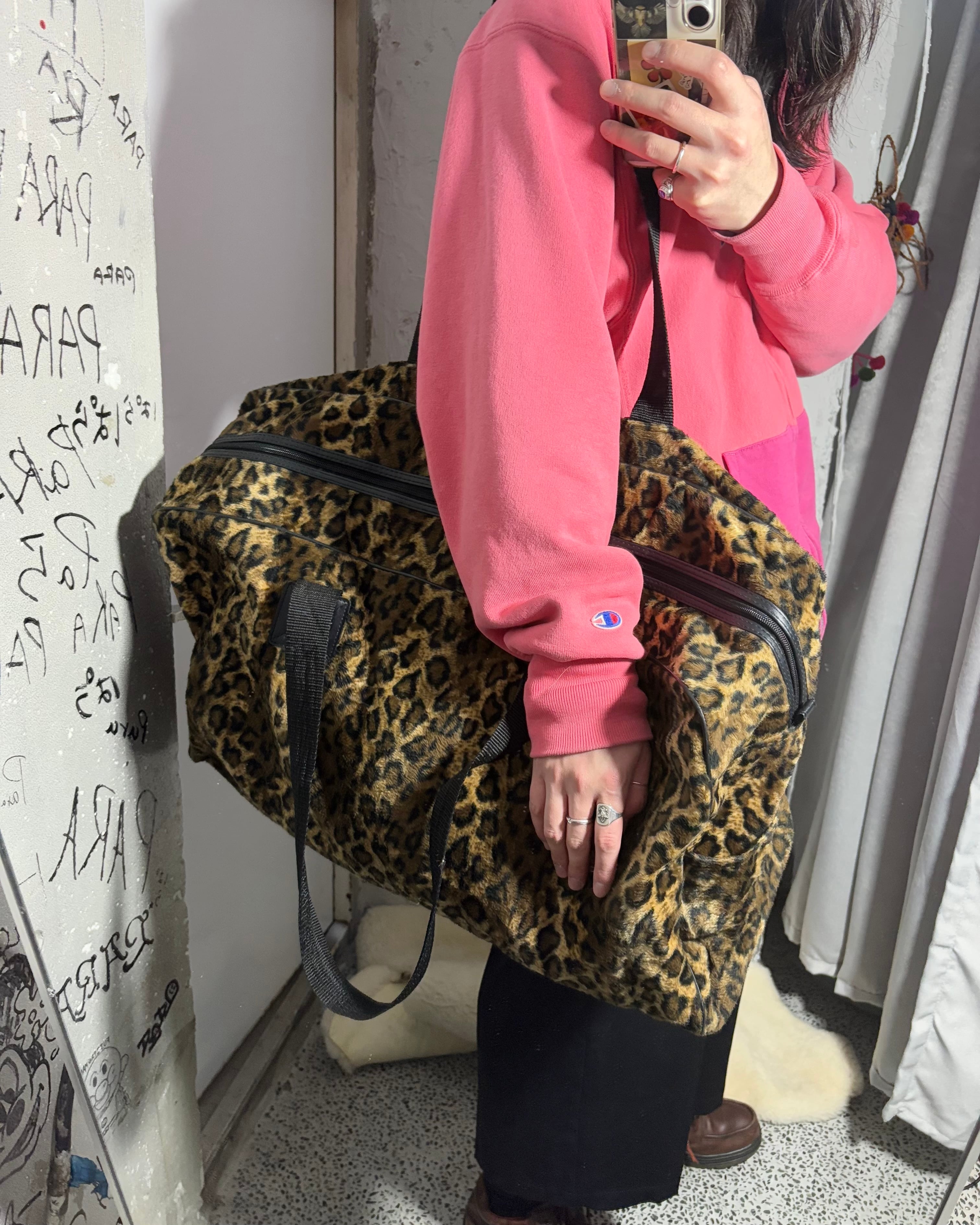 1990-2000s. Textured Leopard Boston Bag