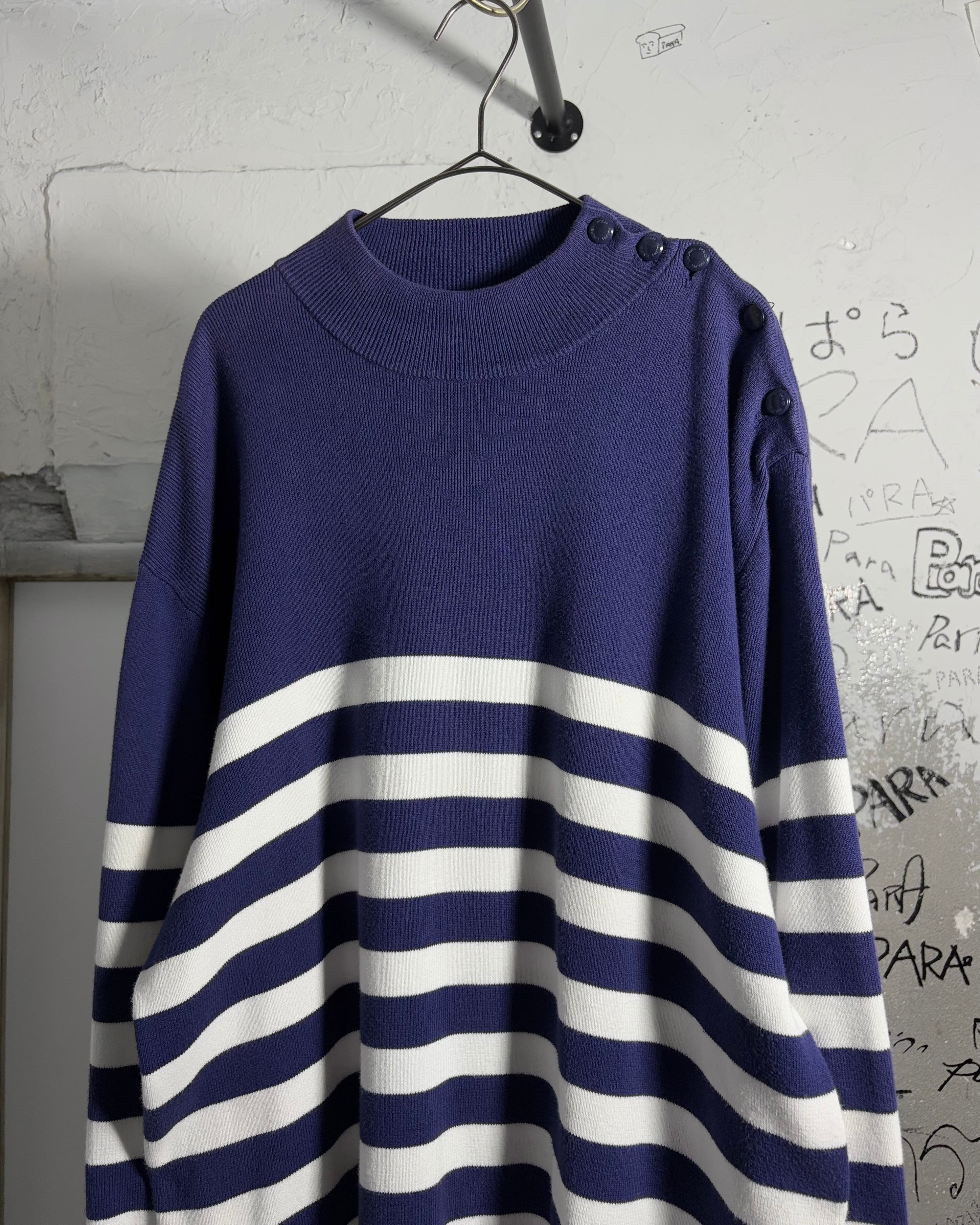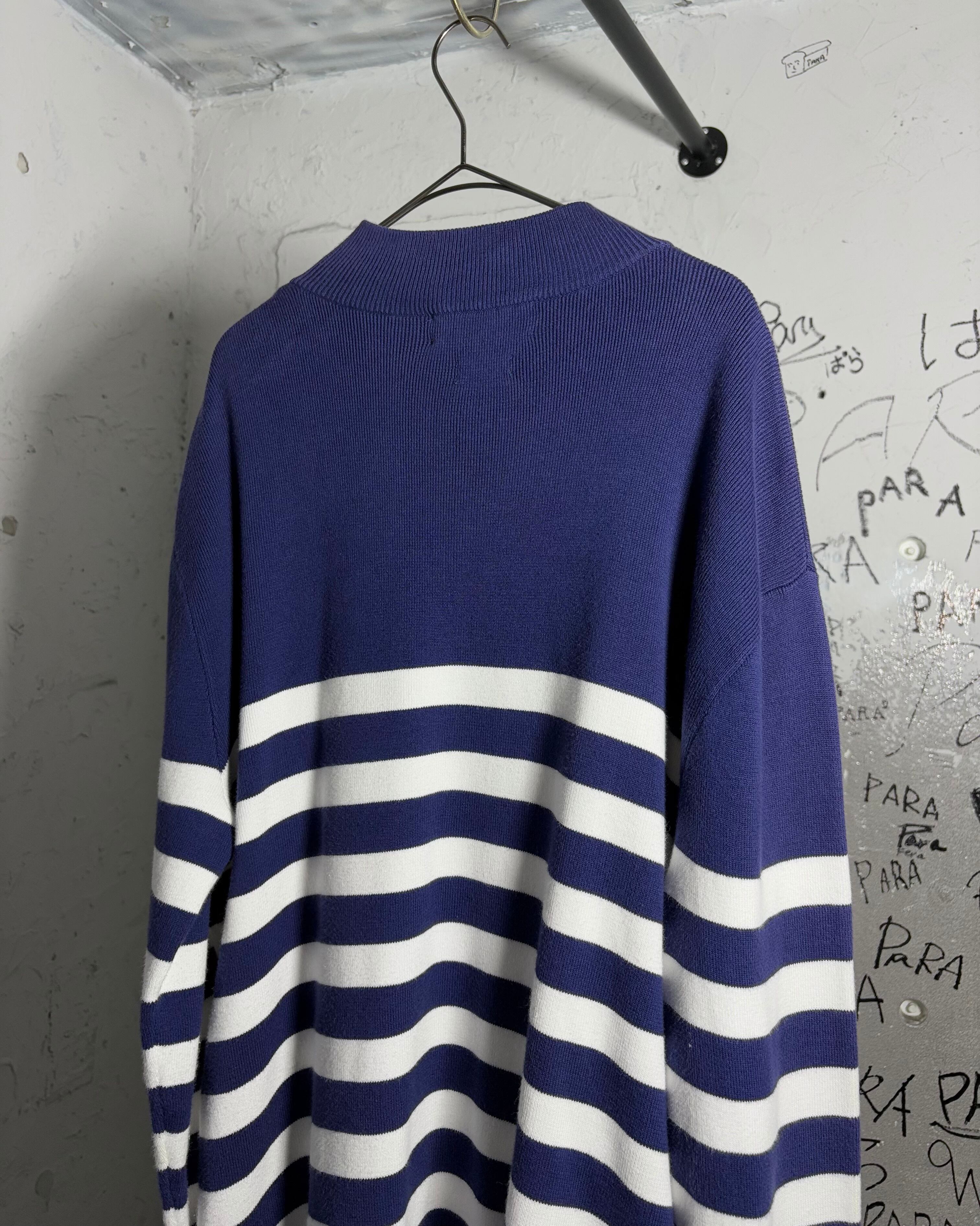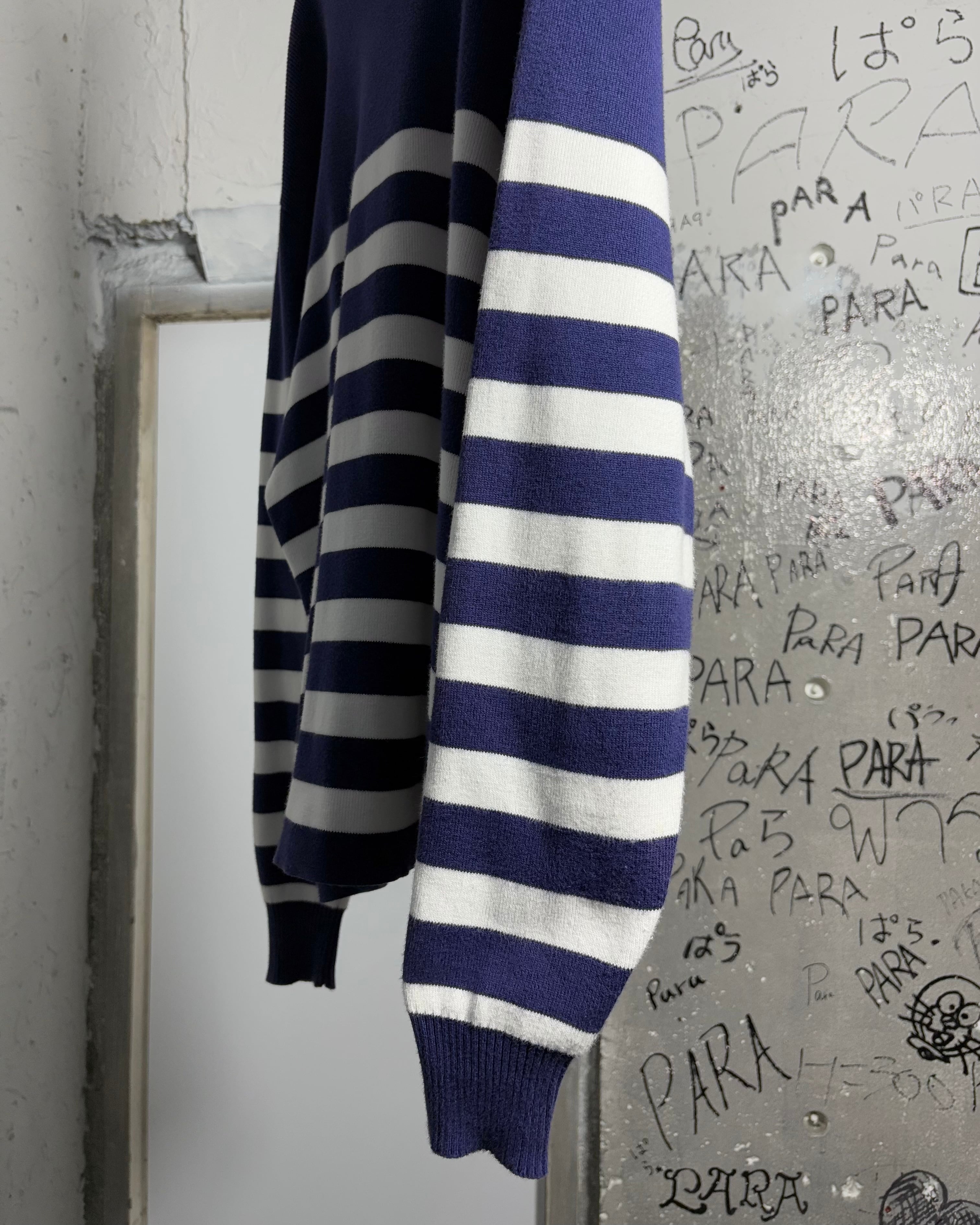 茄子紺ネイビー×ホワイトのボーダーが印象的なコットンニットカットソー