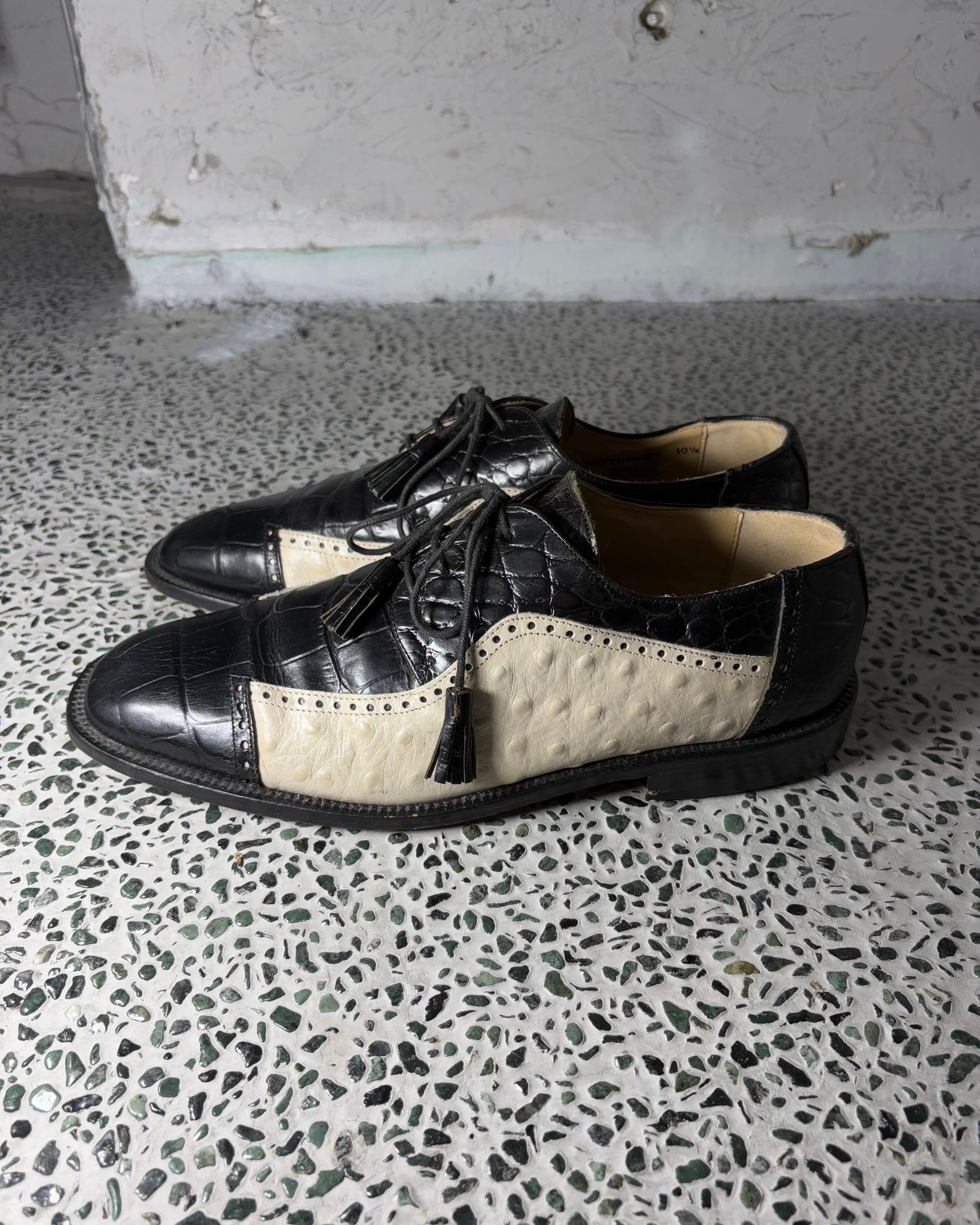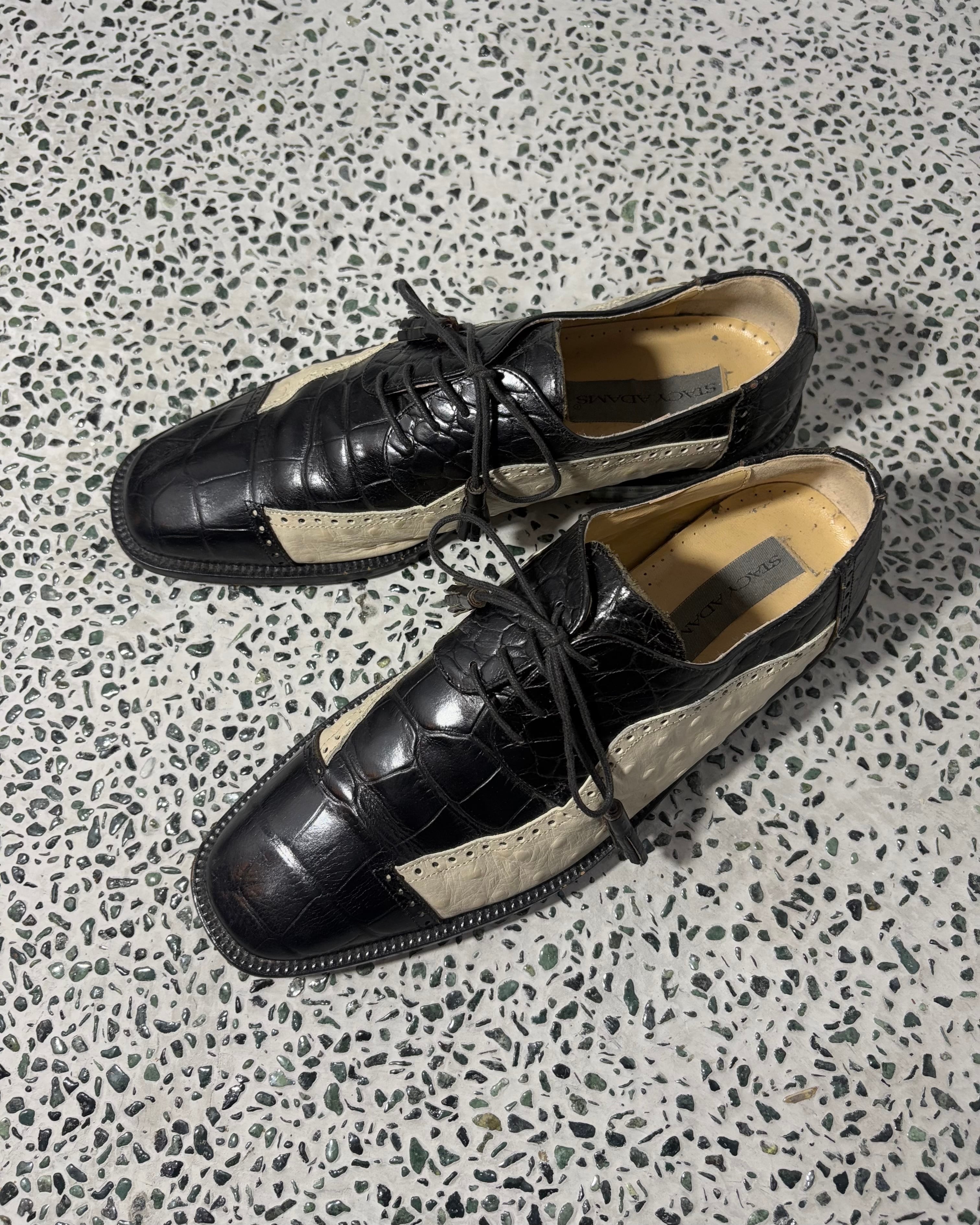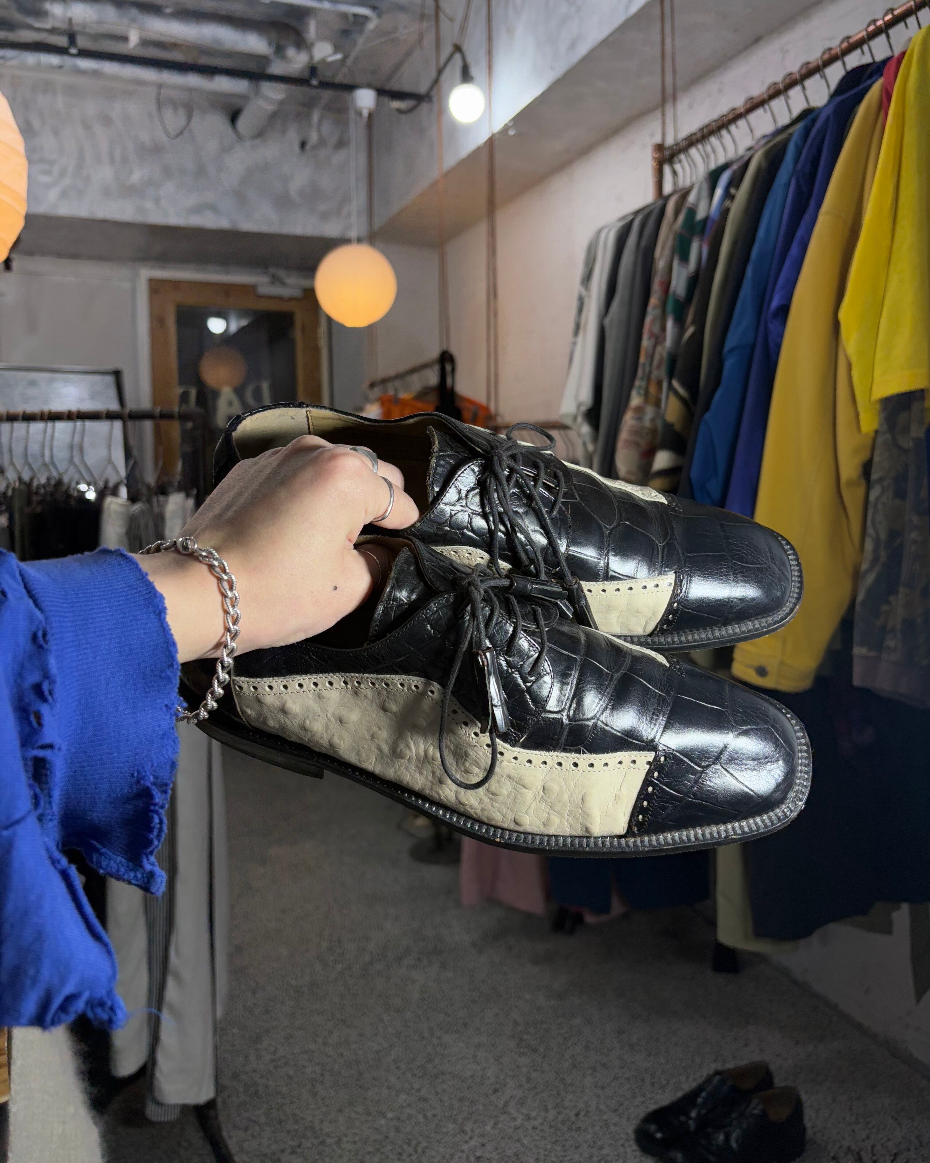 クロコ型押しとオーストリッチ調レザーを掛け合わせることでラグジュアリーな空気感がプラスされてます。