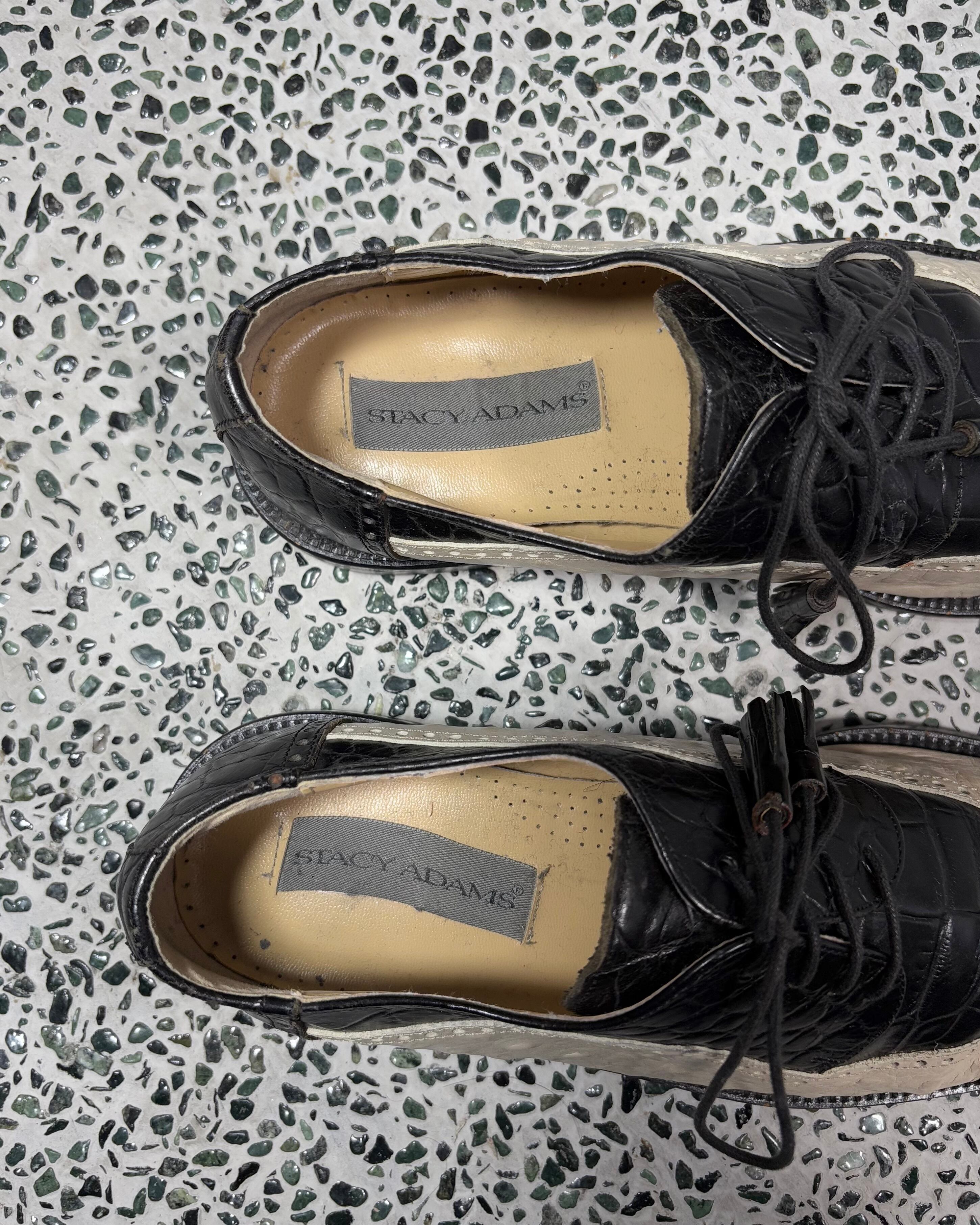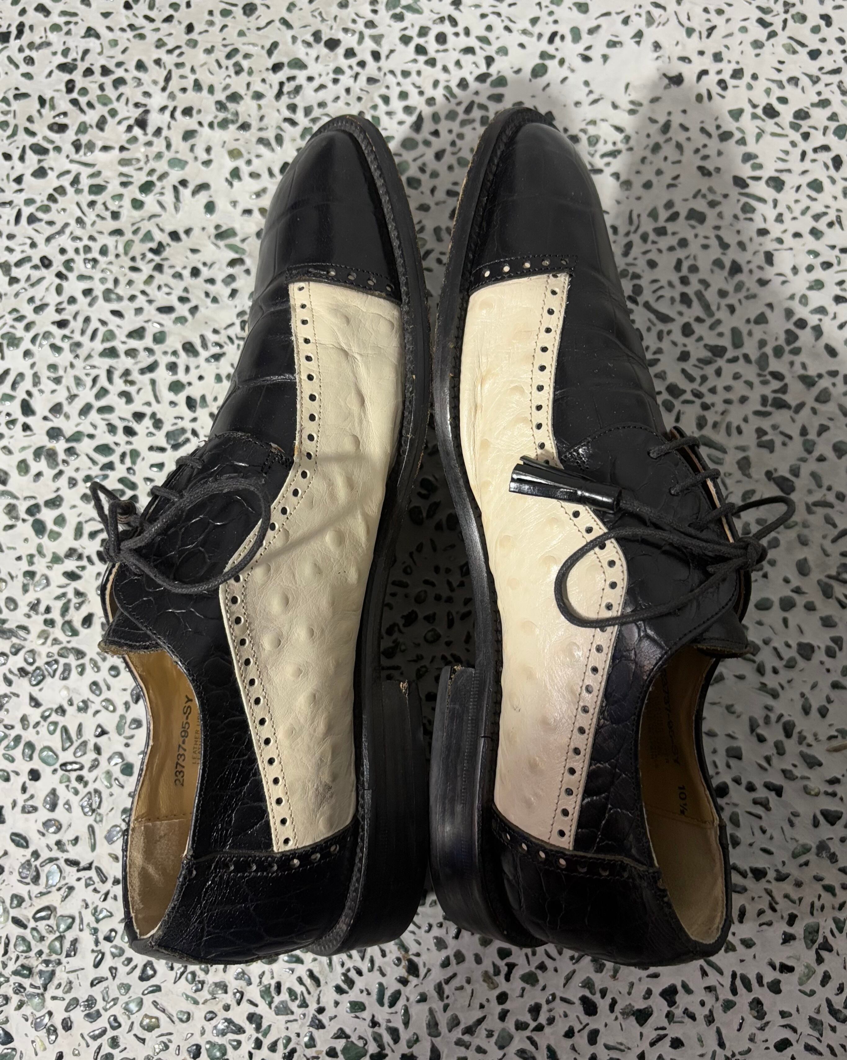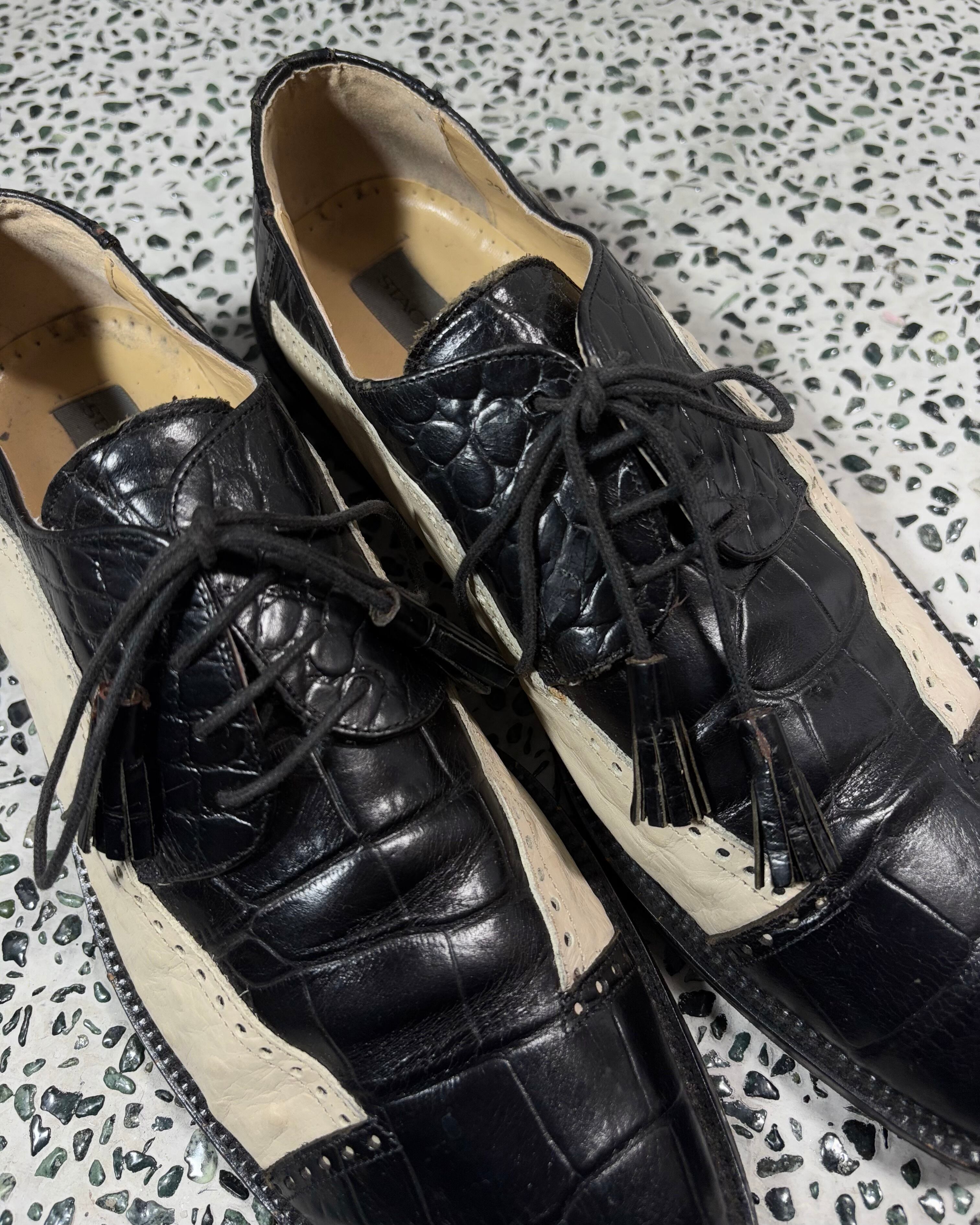 クロコ型押しとオーストリッチ調レザーを掛け合わせることでラグジュアリーな空気感がプラスされてます。