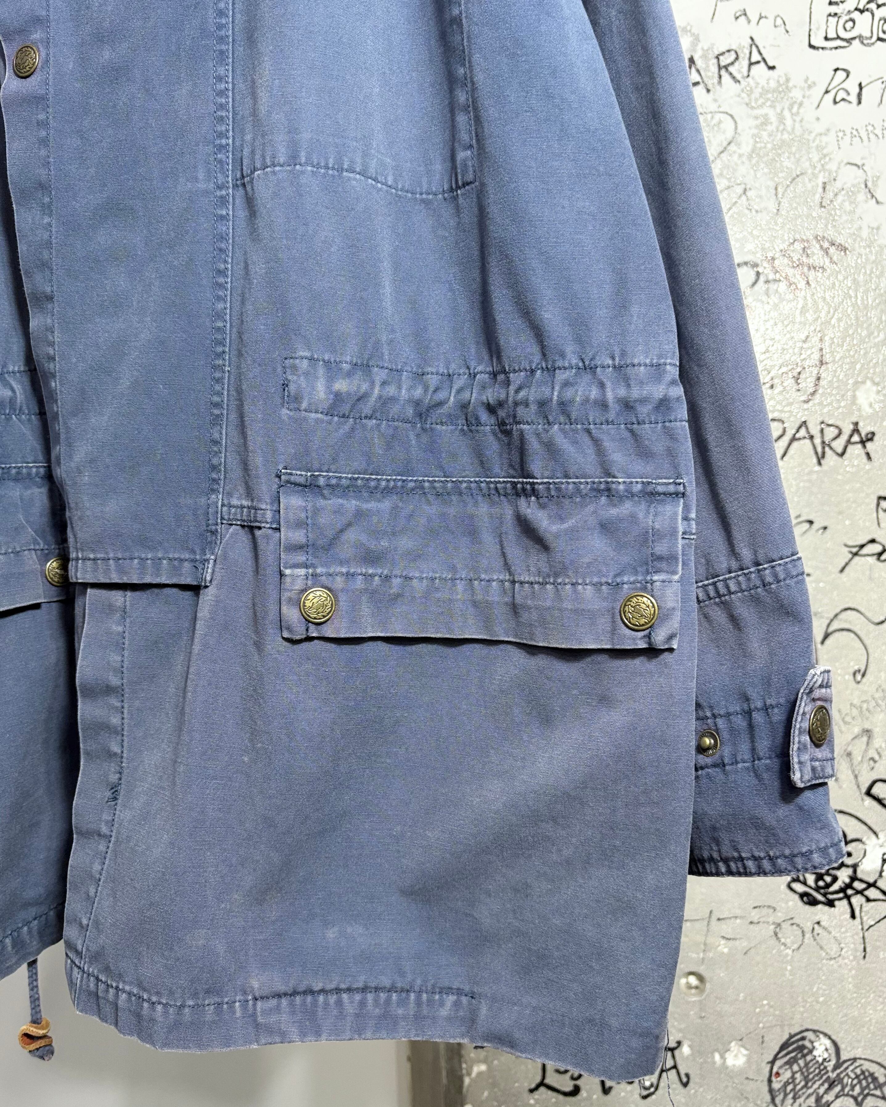 フェードネイビーの色味と、真鍮ボタンの組み合わせがかなりいい雰囲気◎