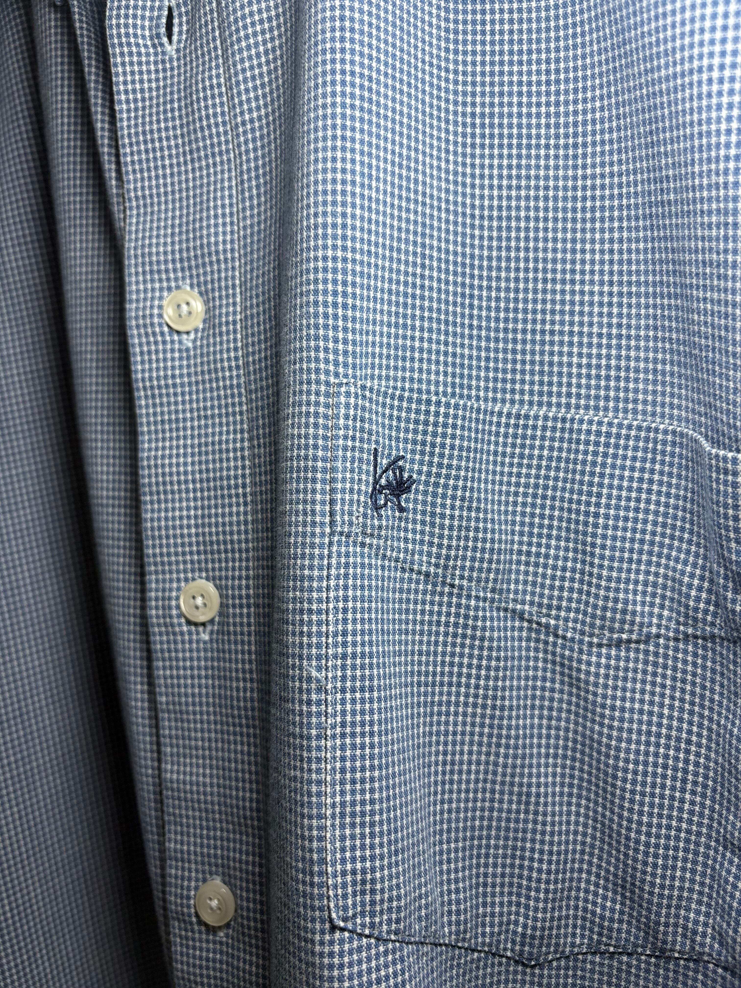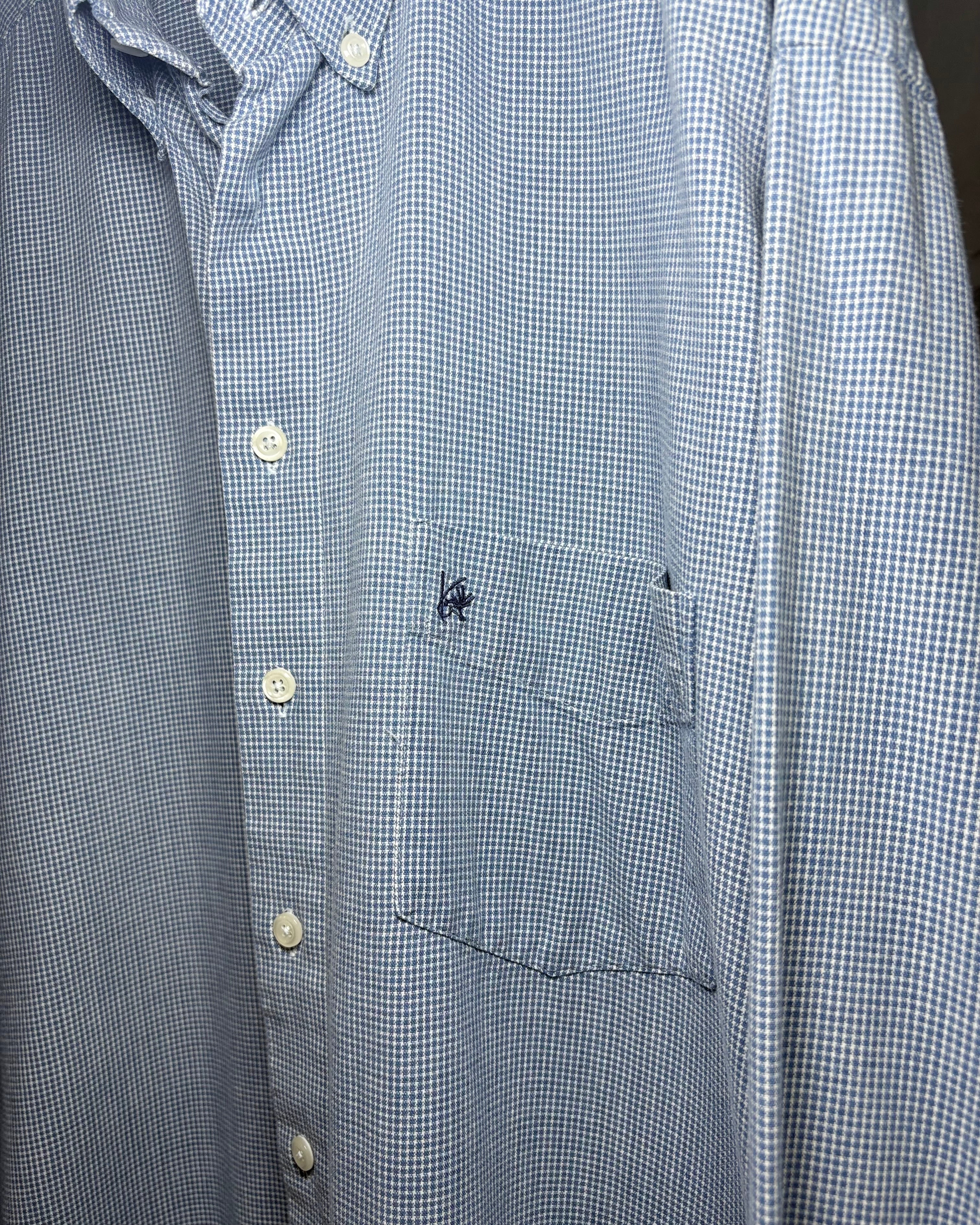ボタンダウン仕様と胸ポケットにロゴ刺繍。