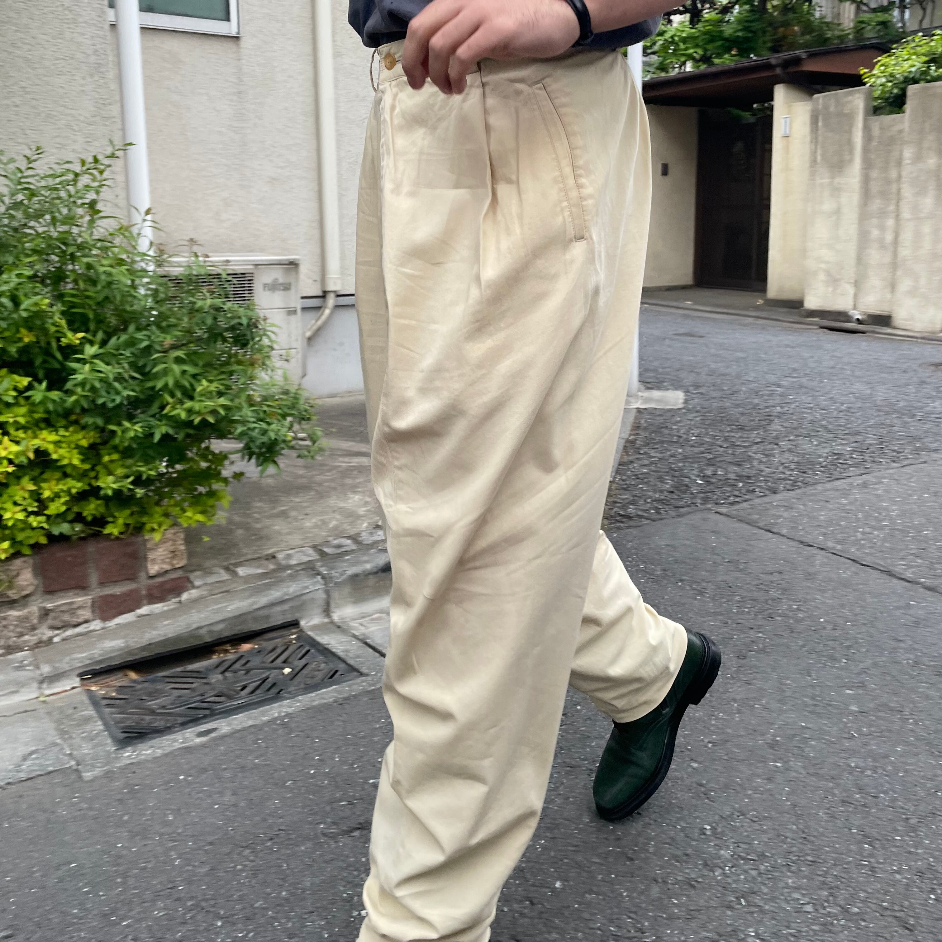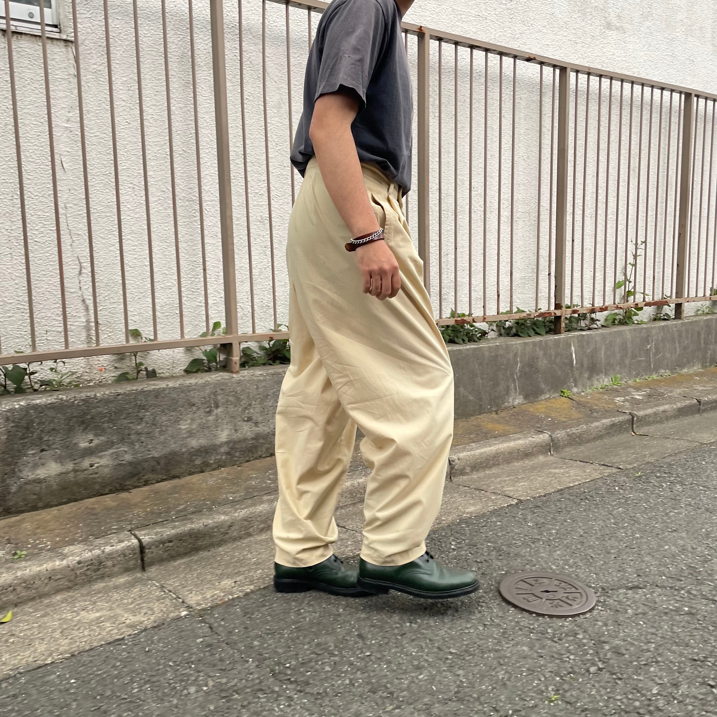 ボリュームのある腰回りから強めのテーパードシルエットが独特でエレガントです。