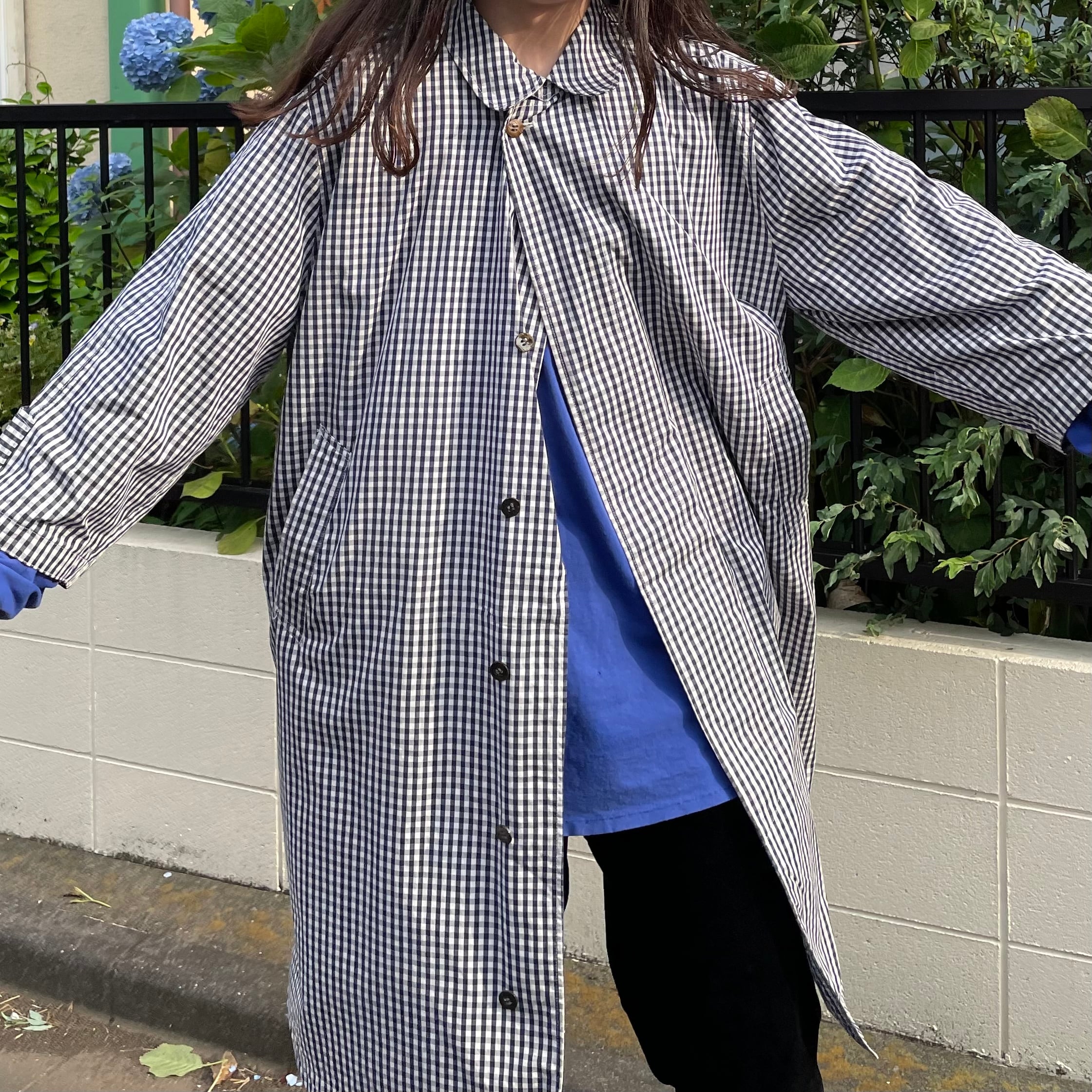 力が抜けたアンニュイなギンガムチェックのコート。