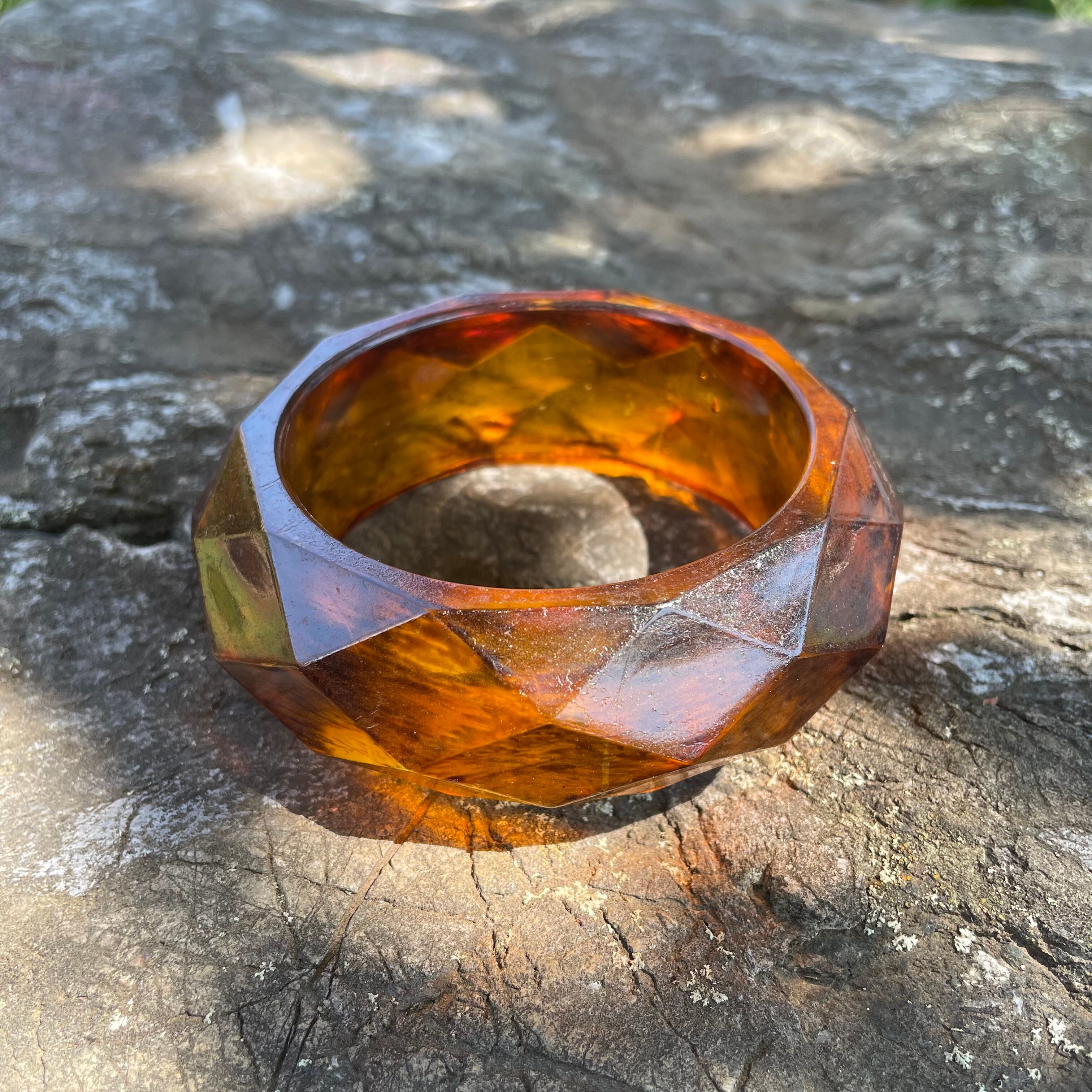 琥珀のように透明感あり、ヴィンテージ ベークライト特有の深みがあります。
