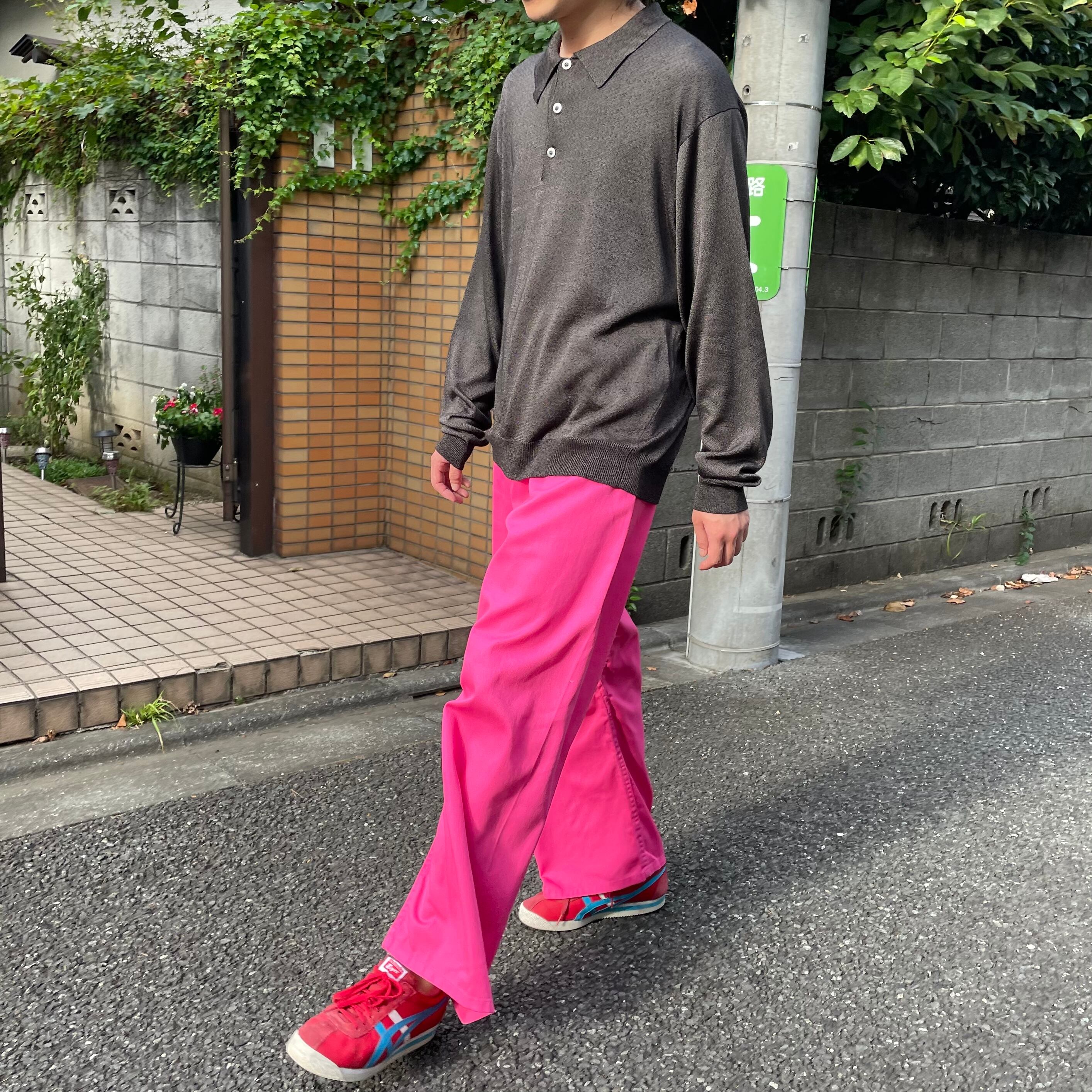 ワイドストレートシルエット、サイドシームが無い「巻きパン」のディテール。