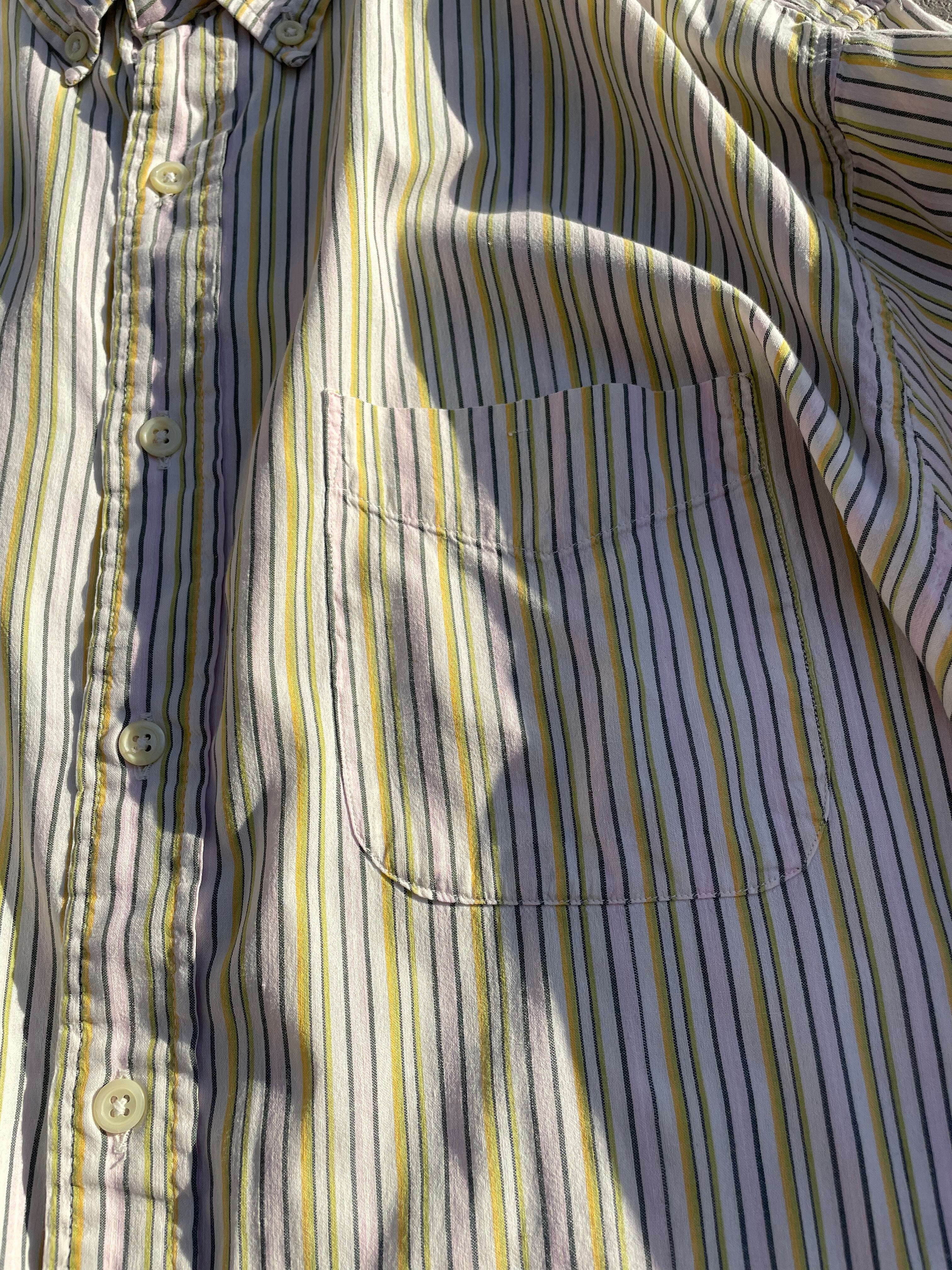 ストライプシャツと言えば硬めに生地が多いのですが、かなりソフトで袖に溜まりが出来るようなラフな生地。