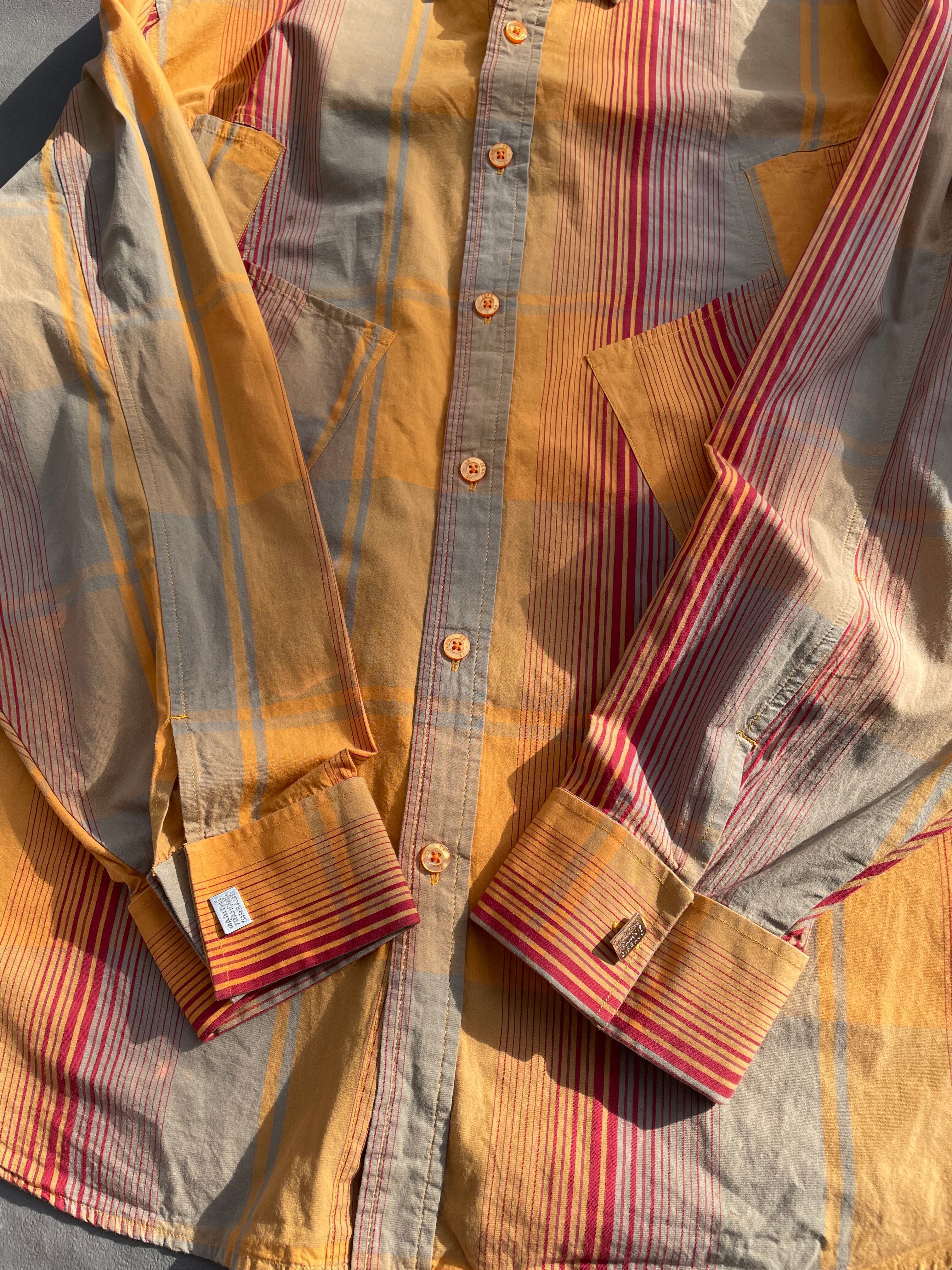 ザックリ羽織りやタックイン、襷掛けスタイルなど着方の自由度が高いシャツです。