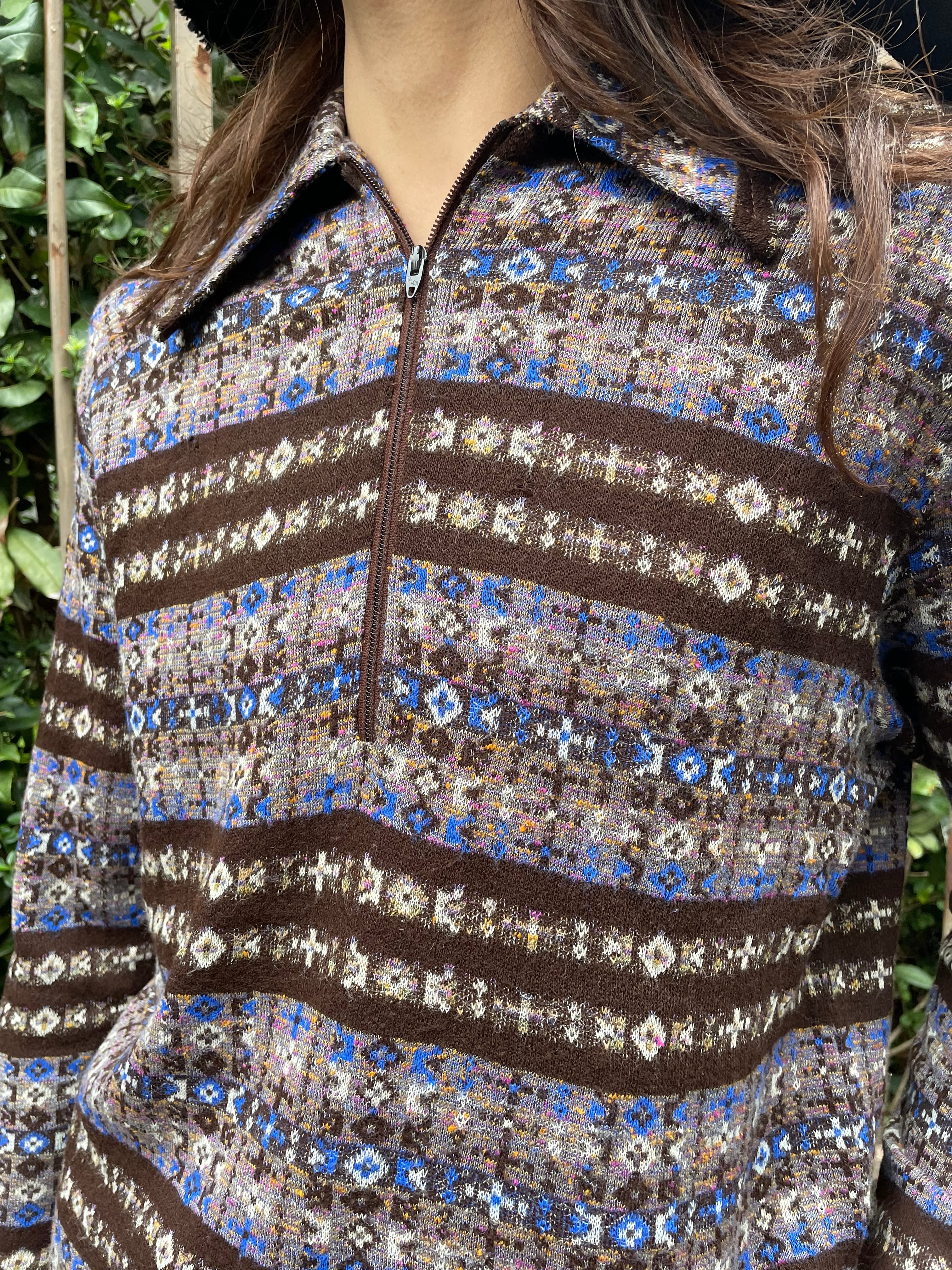 ブラウンベースにフェアアイル調な素晴らしい柄、配色。