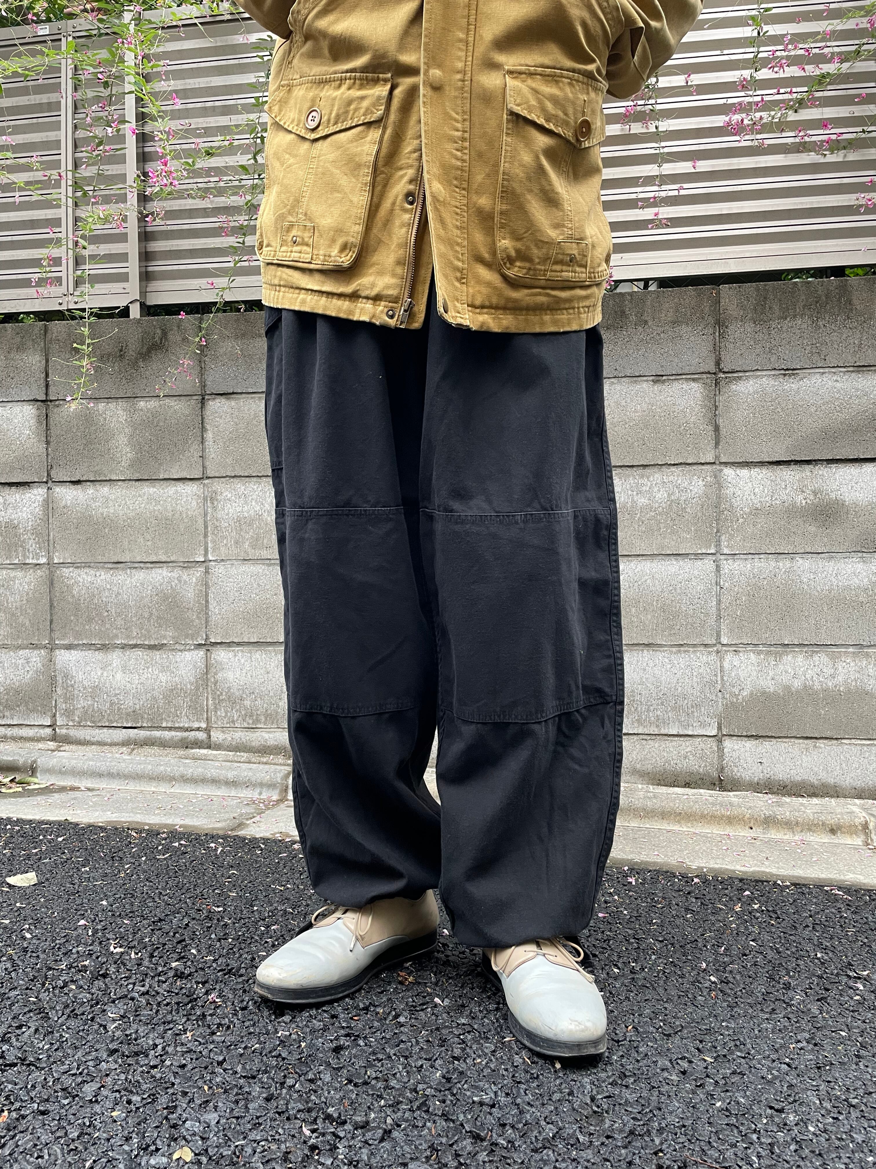 厚手のコットンバックサテン生地を使用したベルギー軍のオーバーパンツの黒染め。