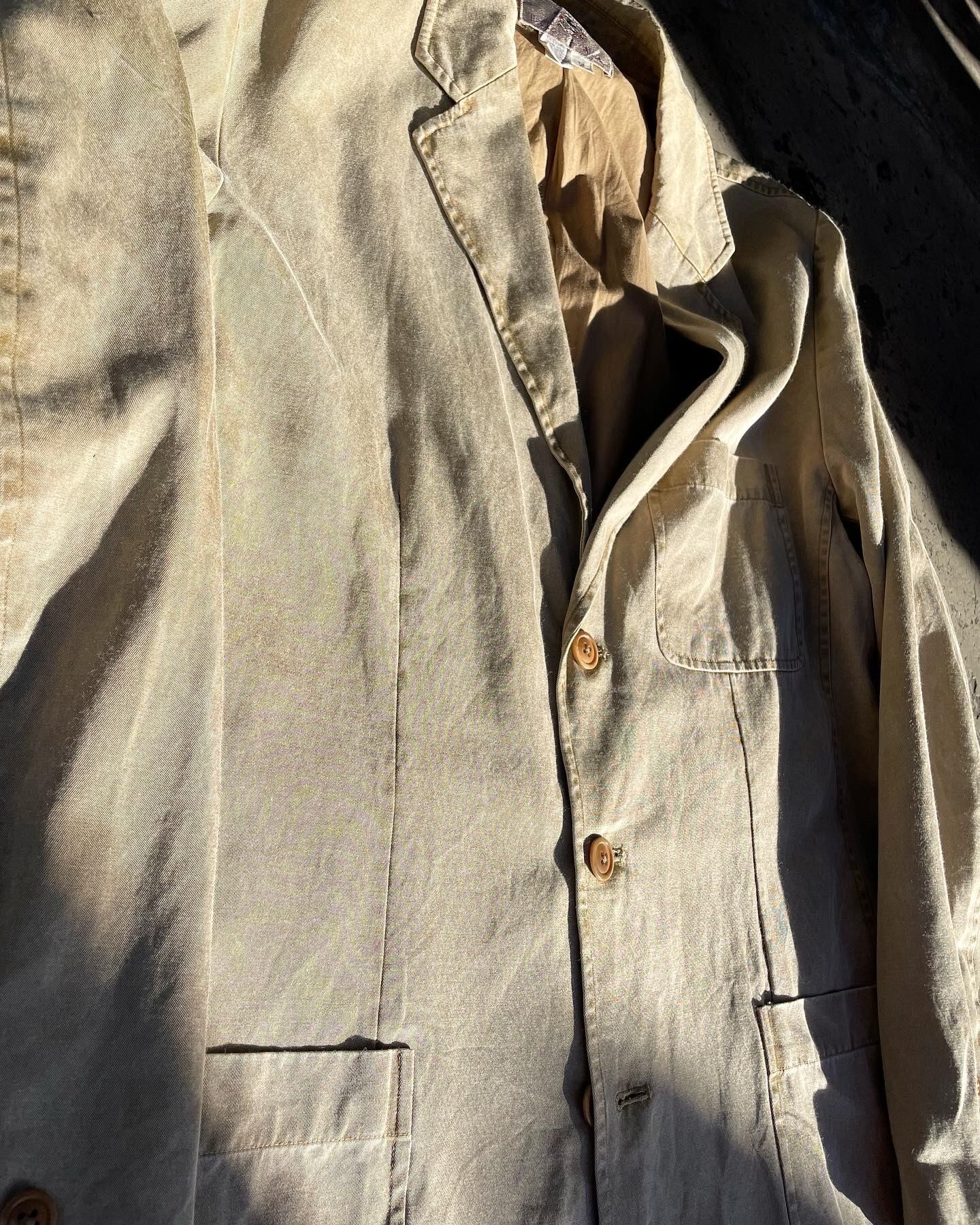 シルクの淡い光沢とコットンのザラっとワークな生地感が、良くも悪くもカジュアルでラフな雰囲気。