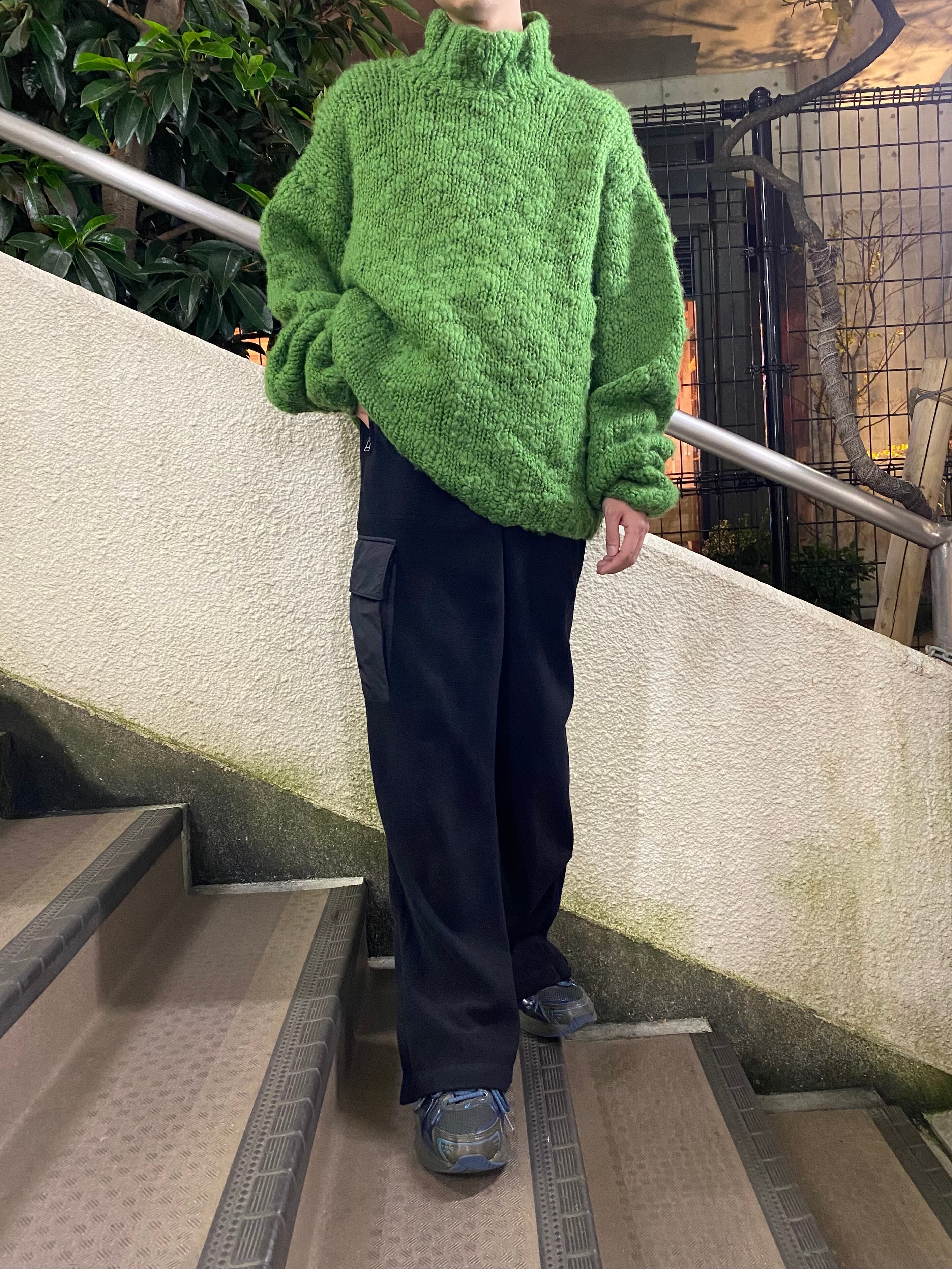 とても色味の綺麗なフレンチグリーンのオーバーシルエットニット