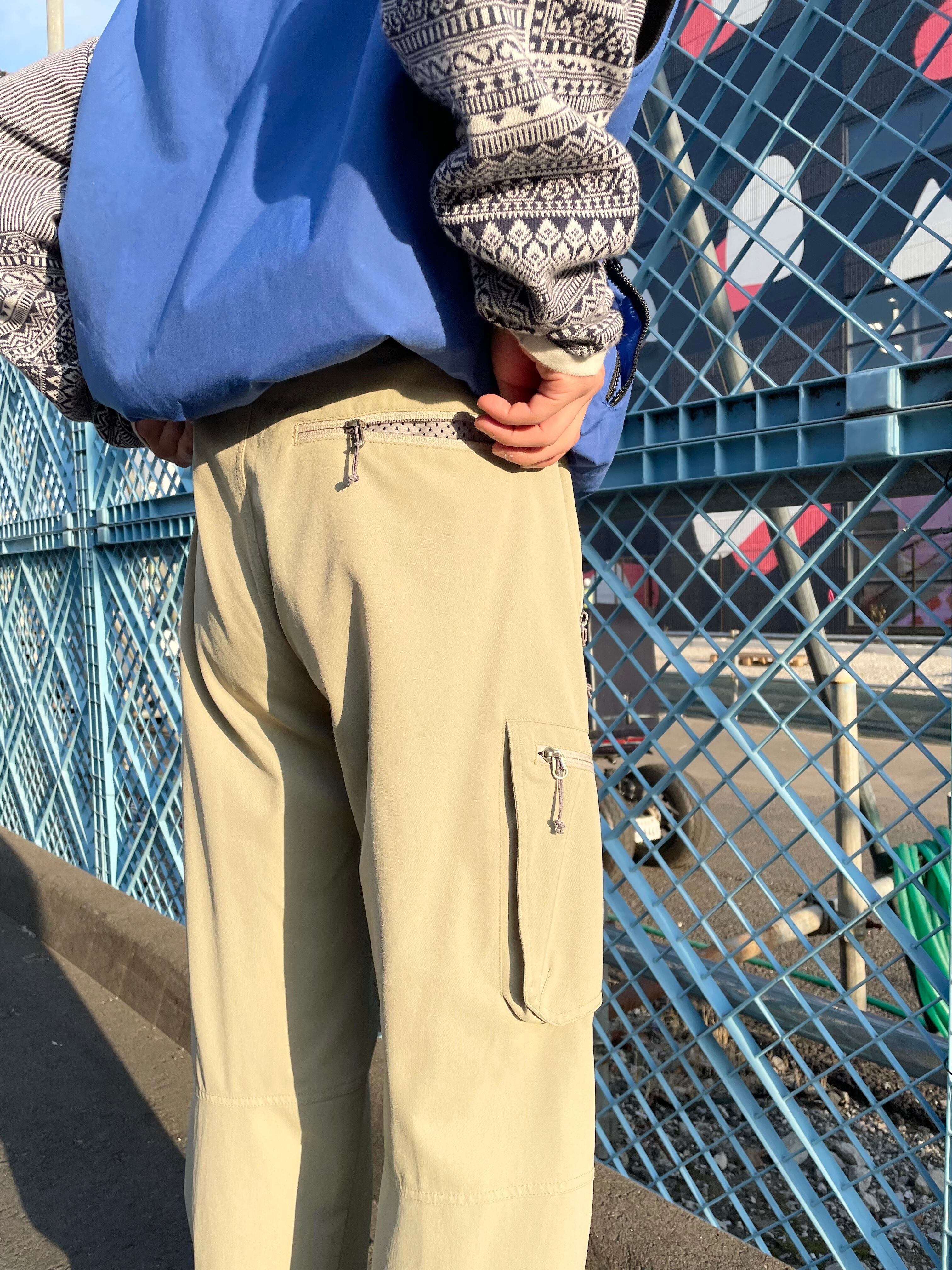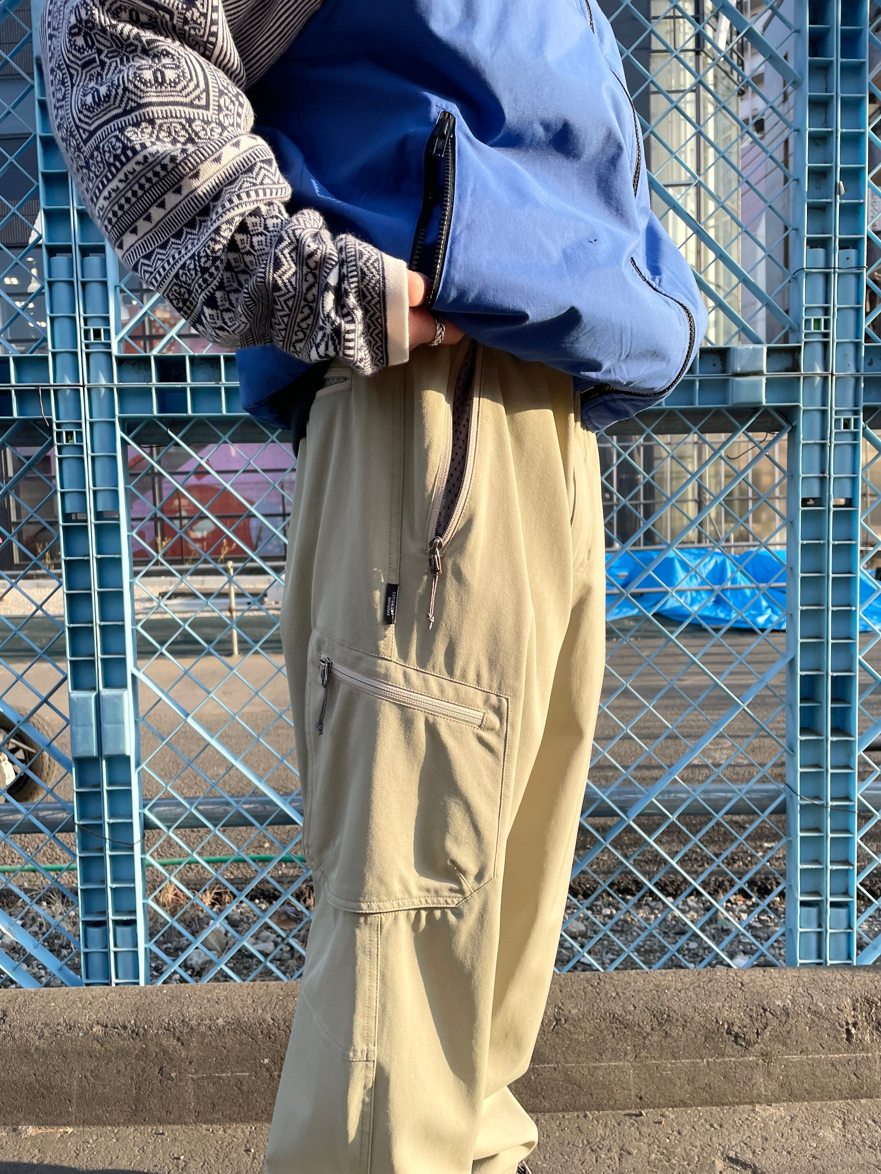 薄っすらグリーン混ざりのグレージュカラー、ZIP使いやポケットデザインなど、アウトドアとしての機能美が都会的にも映ります。