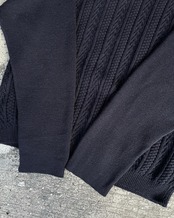 凹凸のある編みに、細かく密なハイゲージの編みの切替と拘りを感じる作り。
