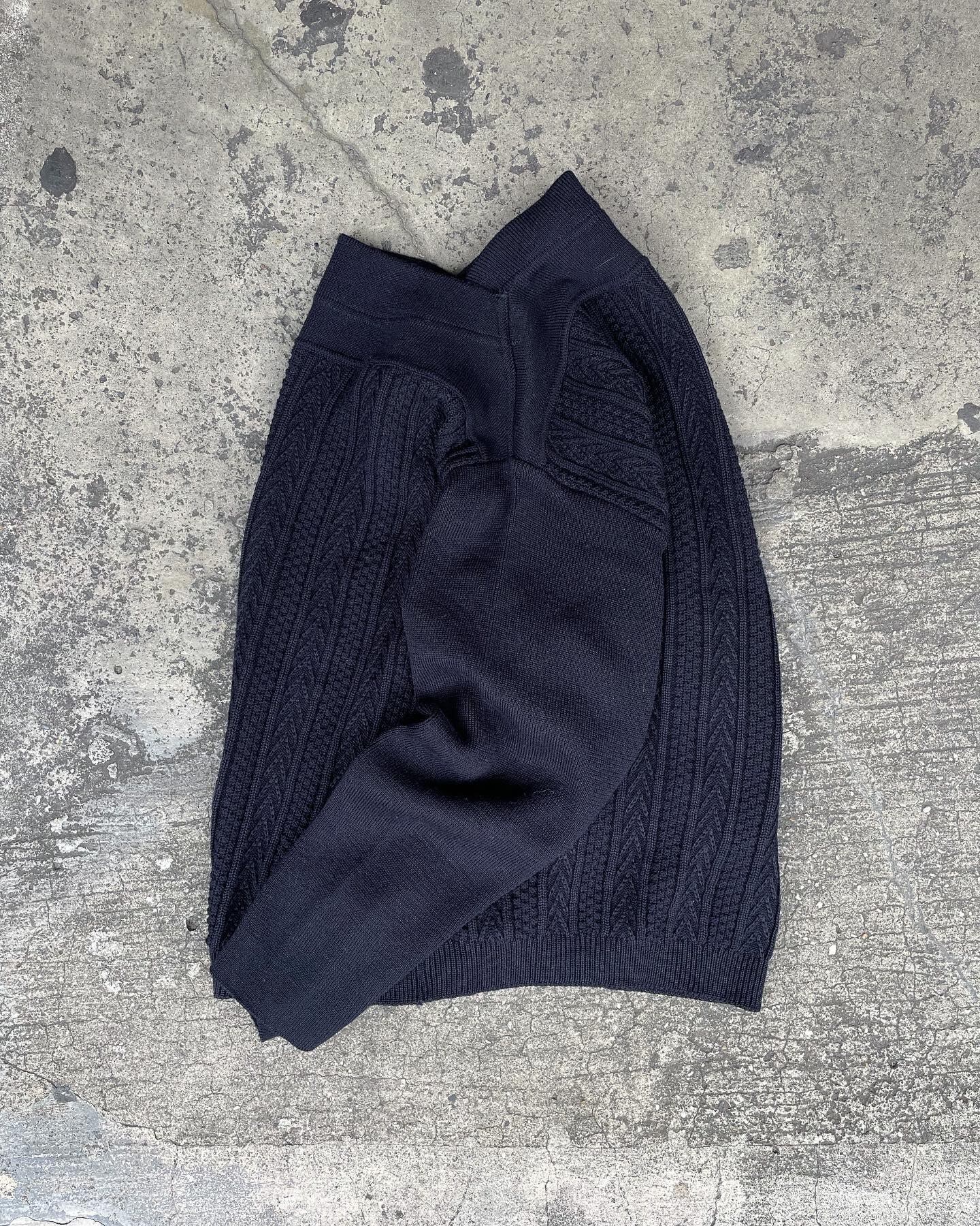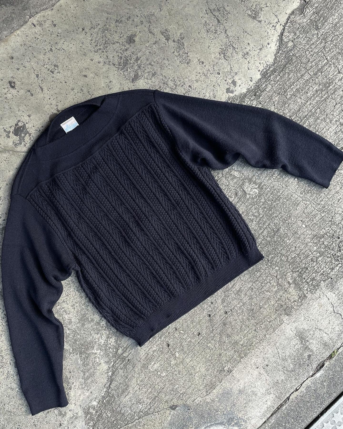 この年代になるとピーキーで挑戦的なアイテムが注目されますが、ワントーンのクラシカルなニットウェアに時代性を感じさせない斬新さを与えつつもシンプルに成り立たせる圧倒的なバランス感覚。
