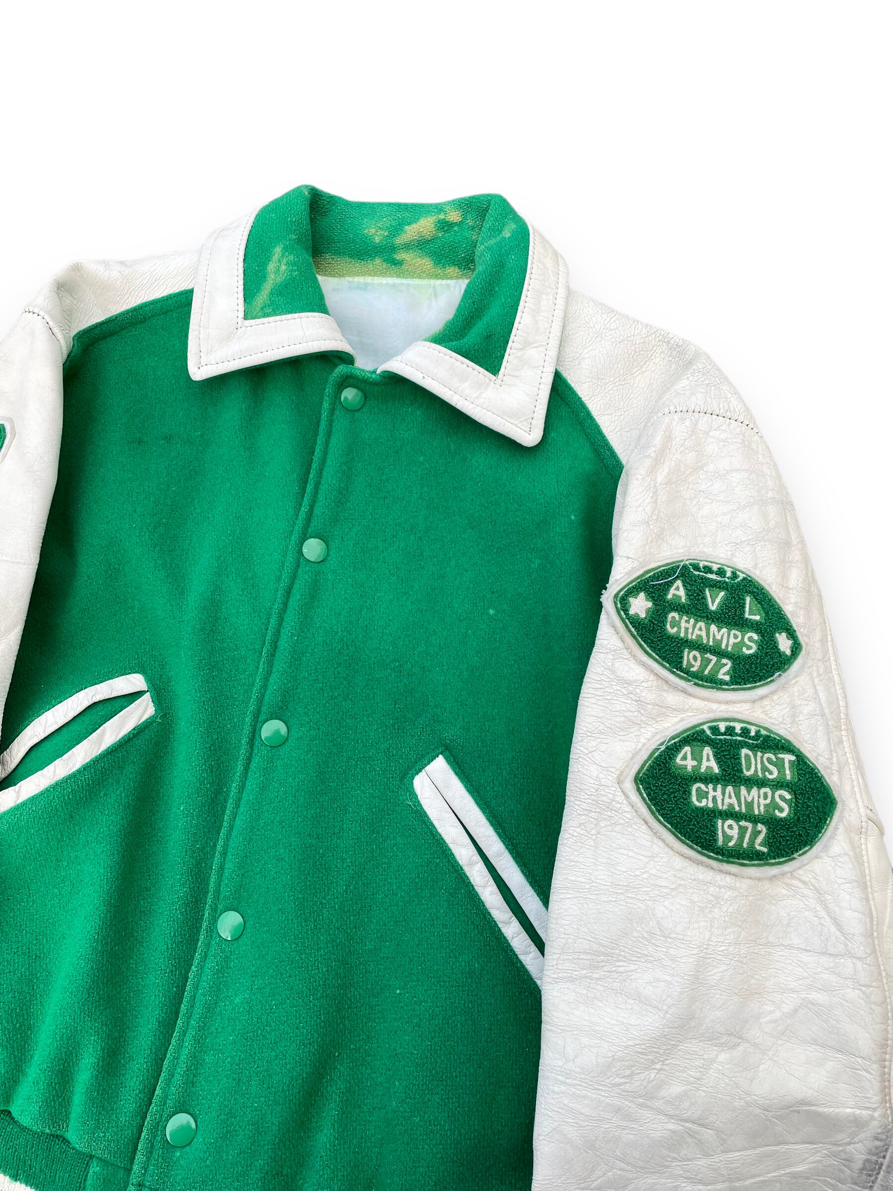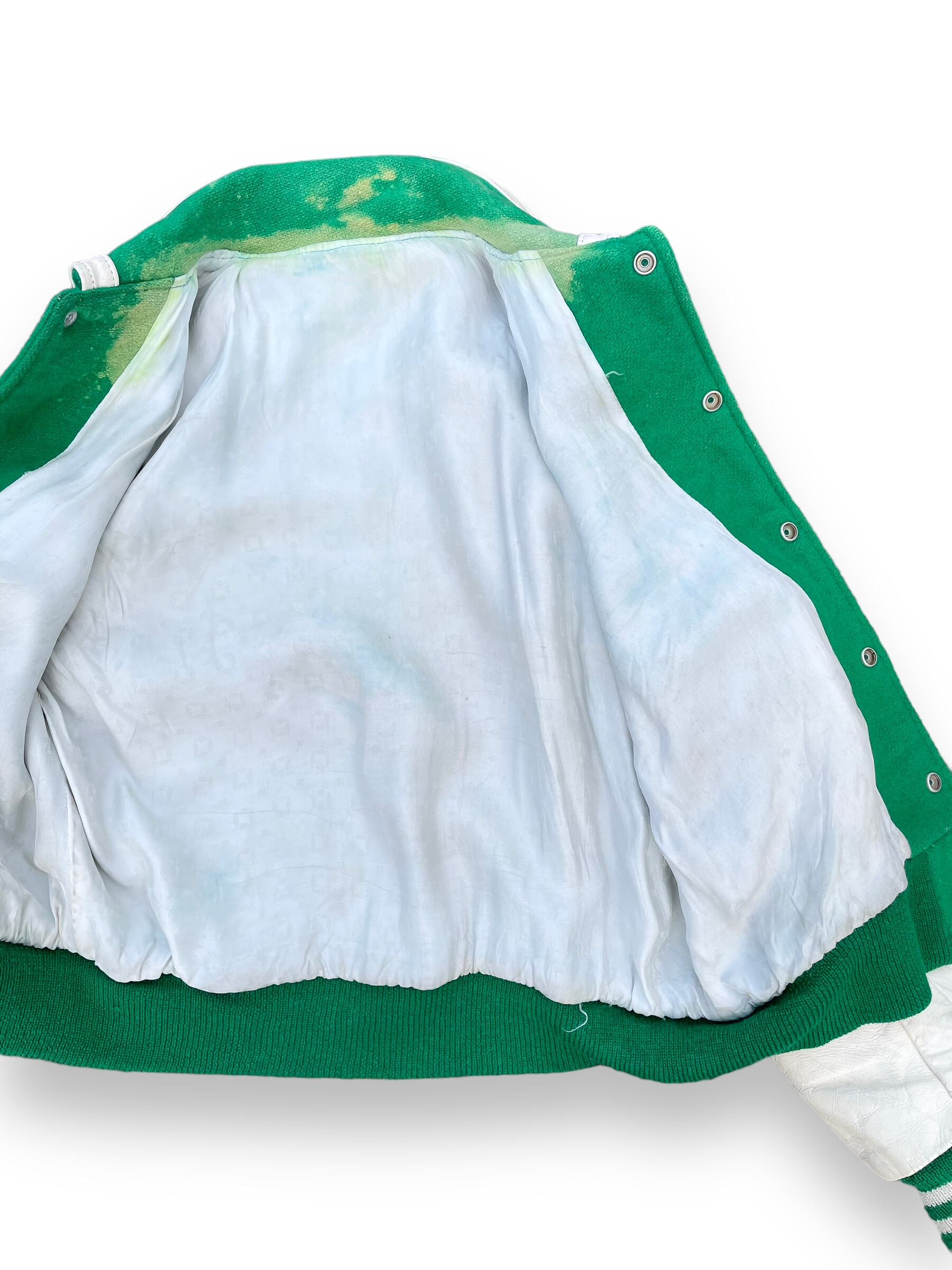 鮮やかなグリーンのメルトン×ホワイトレザー