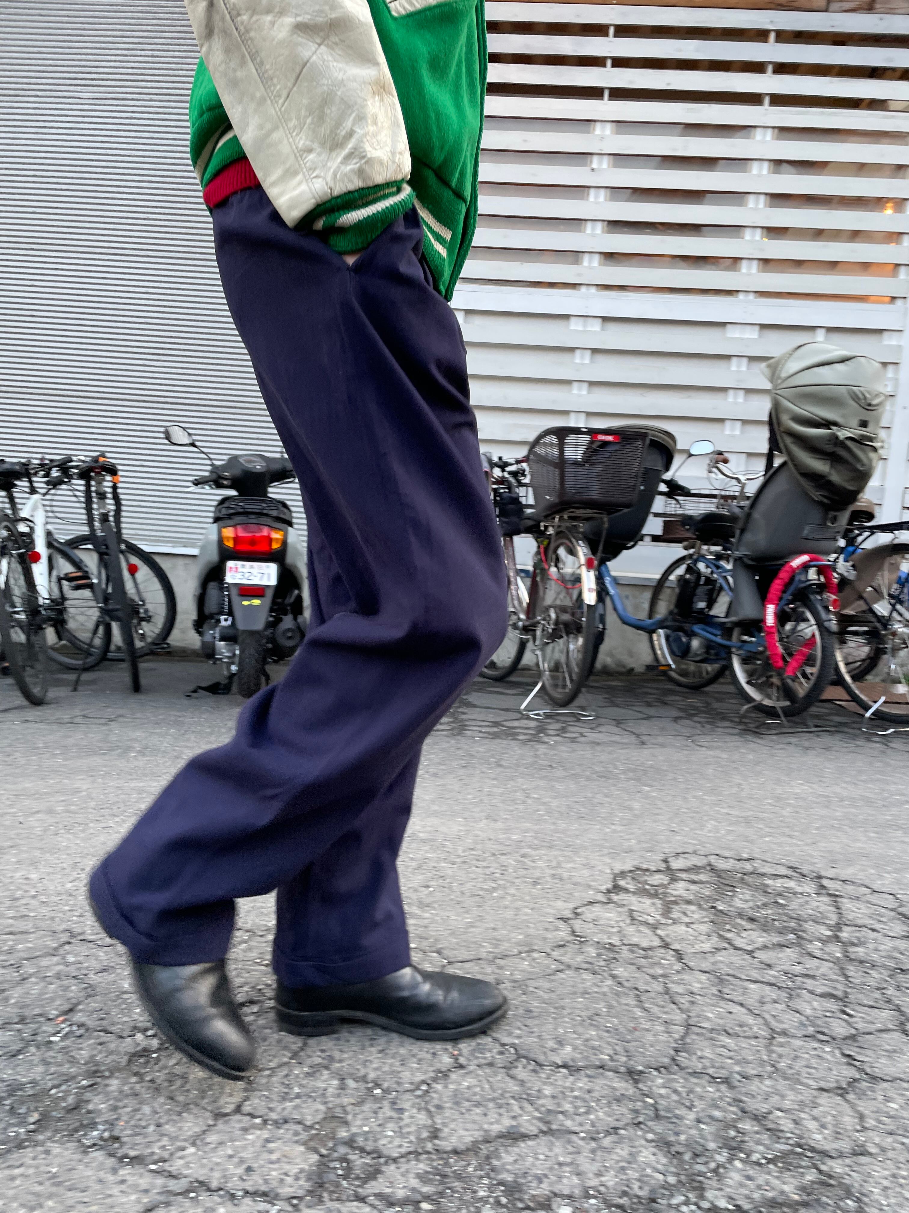 センタープレスが無くヴィンテージスラックスとは思えないリラックスした上品な雰囲気、いい意味でフォーマルじゃない良さ。