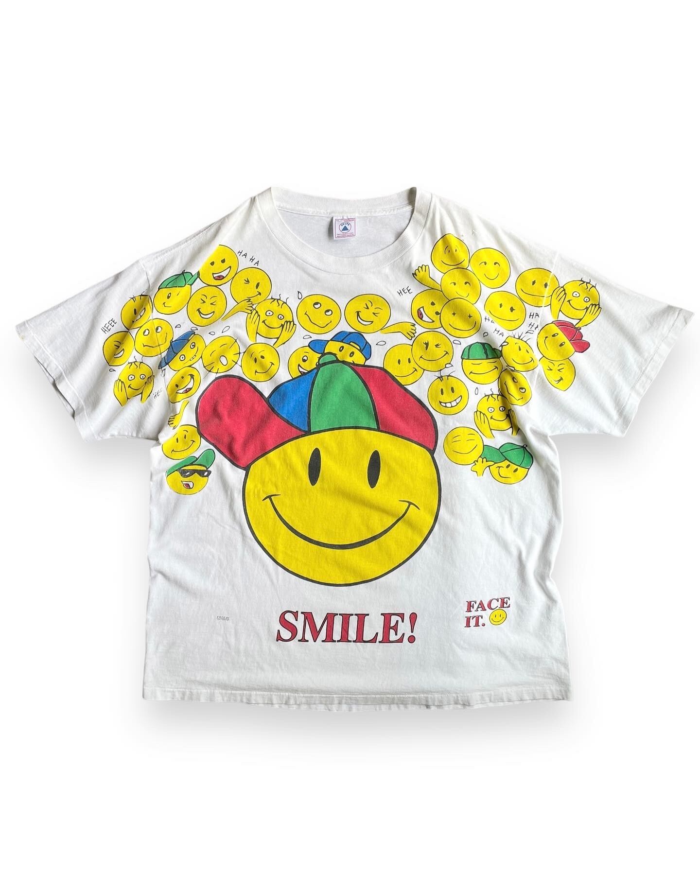 1990s smiley face smile freeze all over print tshirt