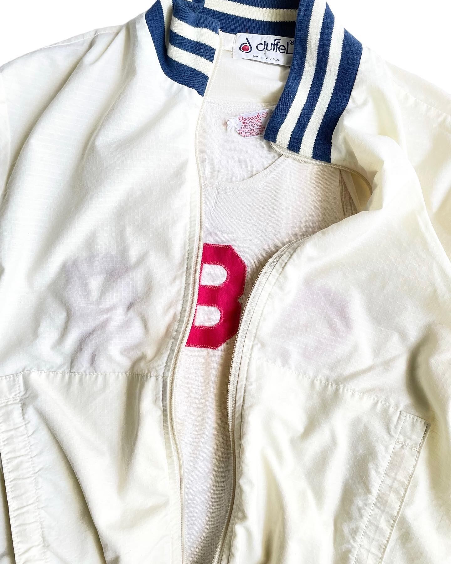 ヴィンテージスポーツウェアらしいとろみのあるナイロン×コットン生地。