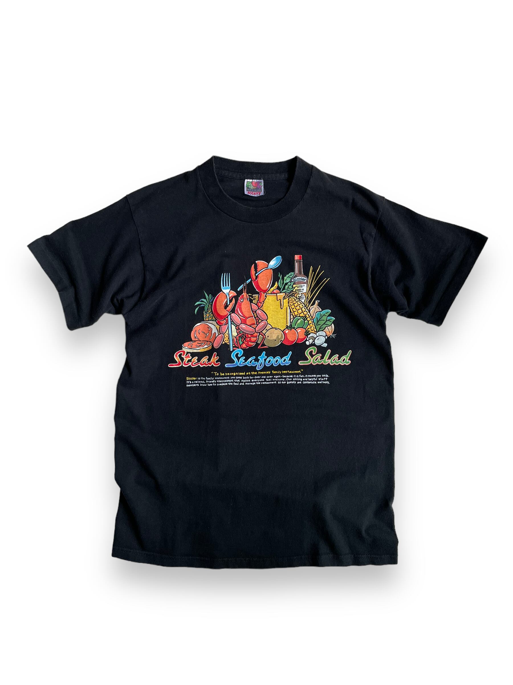 アメリカのファミレス「シズラー」を説明するプリントtシャツ