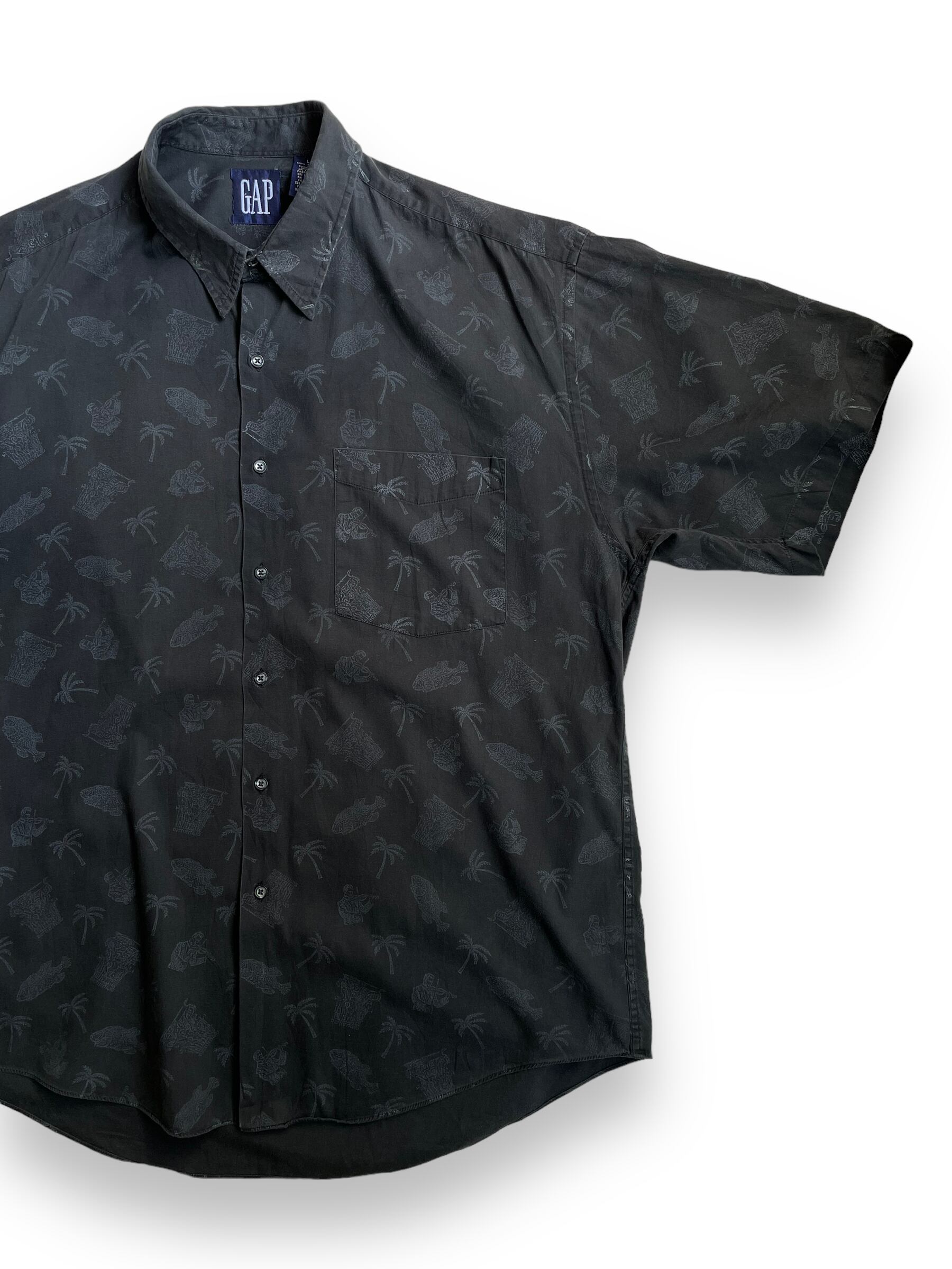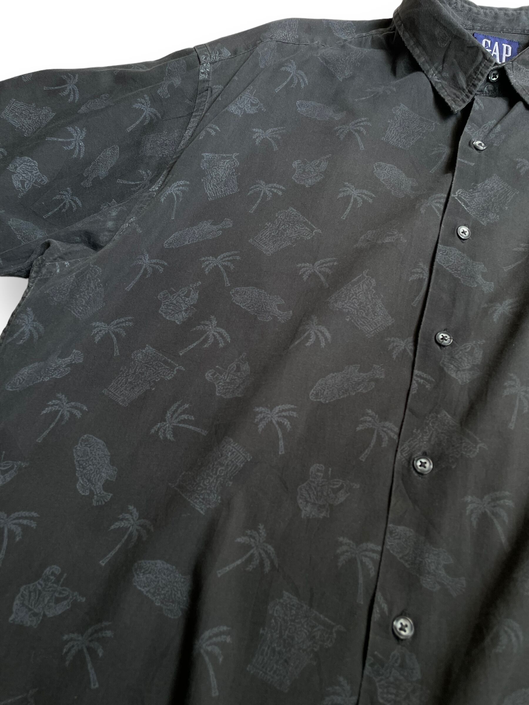 ブラックベースを抜染プリント、本来ではもっと明るいプリントなはずのモチーフをモノトーンにしているのは面白いですね。