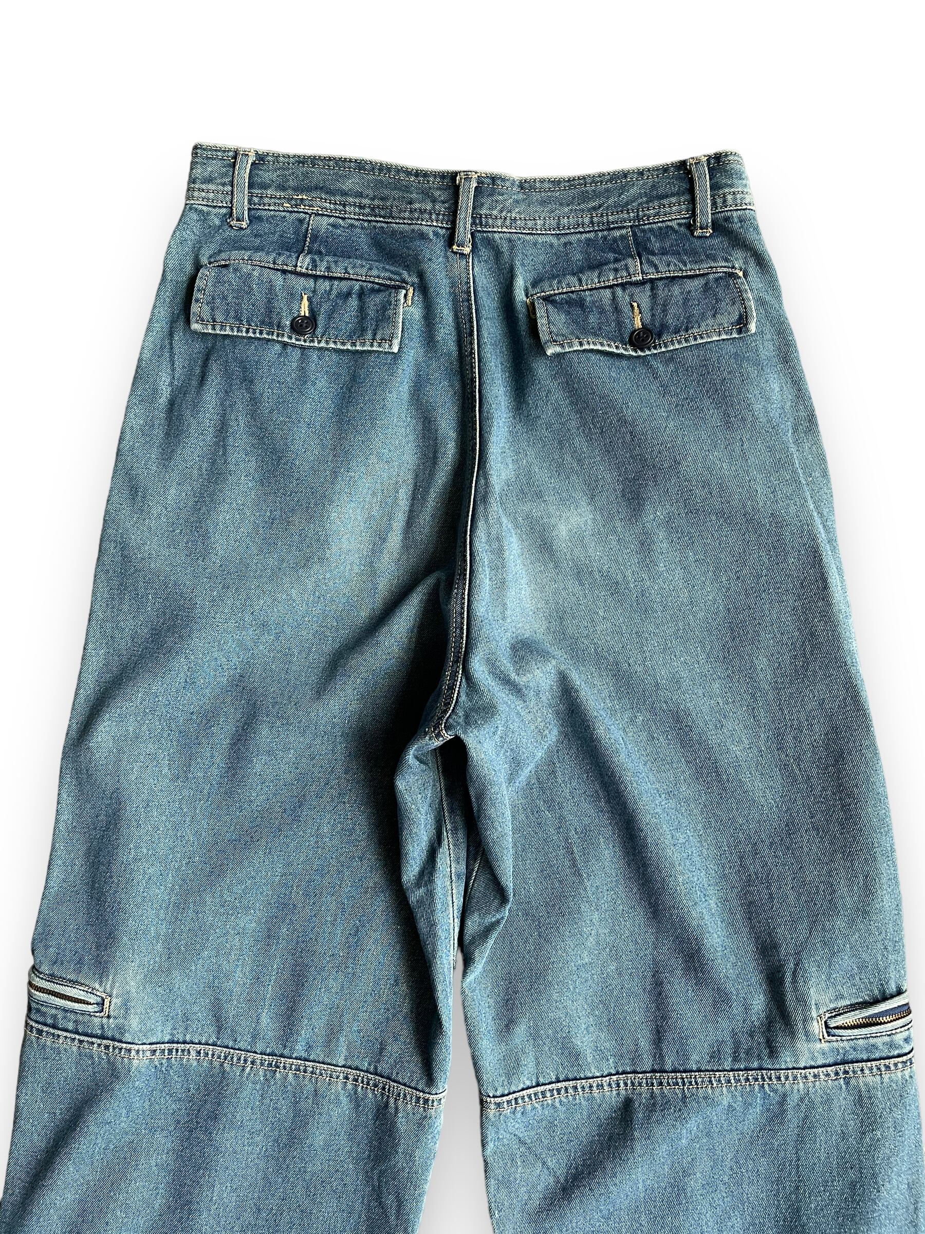 サイドに2連ジッパーデザインのバギーデニムパンツ。