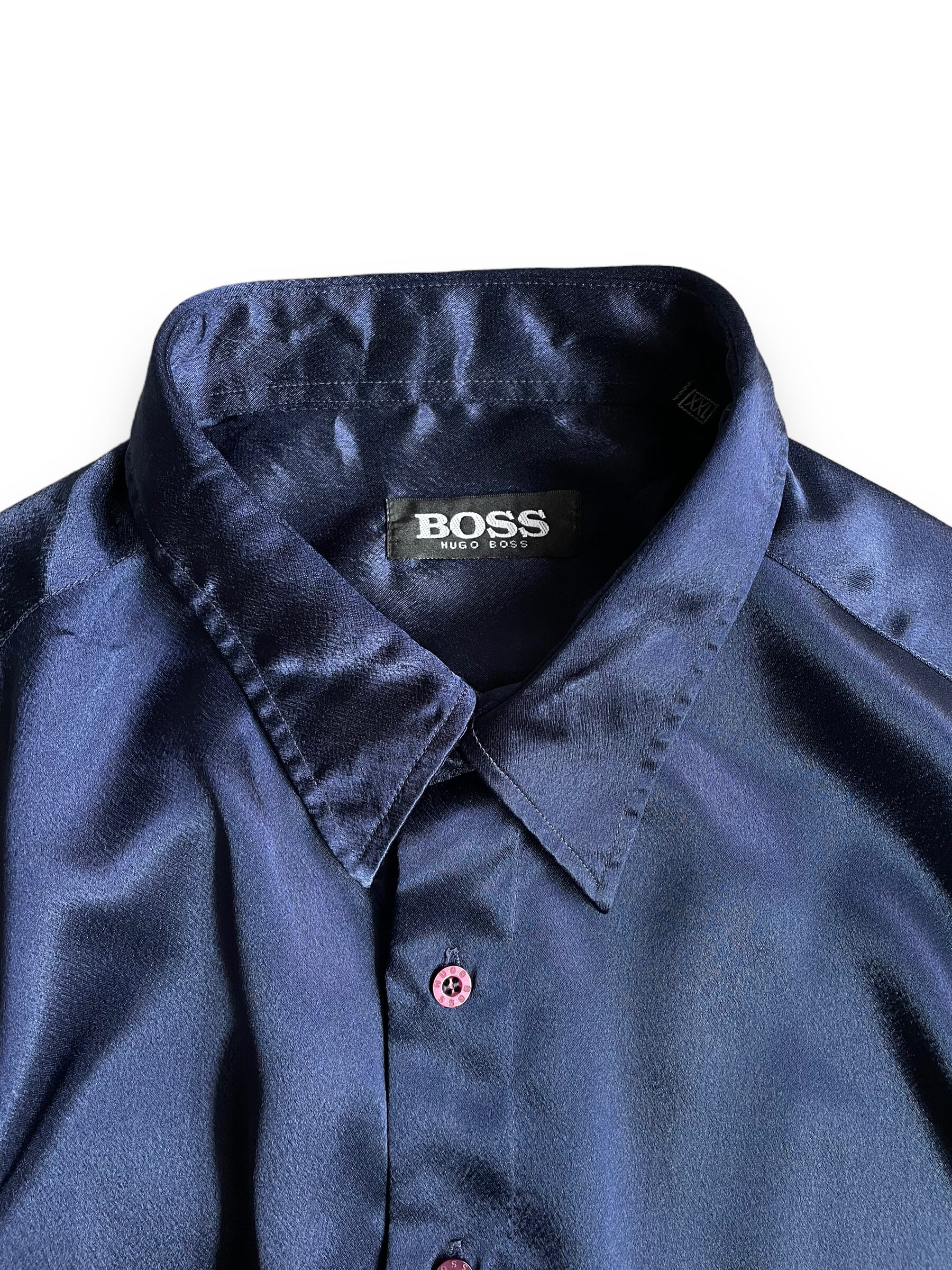 滑らかでトロミのある手触りと光沢感のある密度の高い中肉厚サテンシャツ。