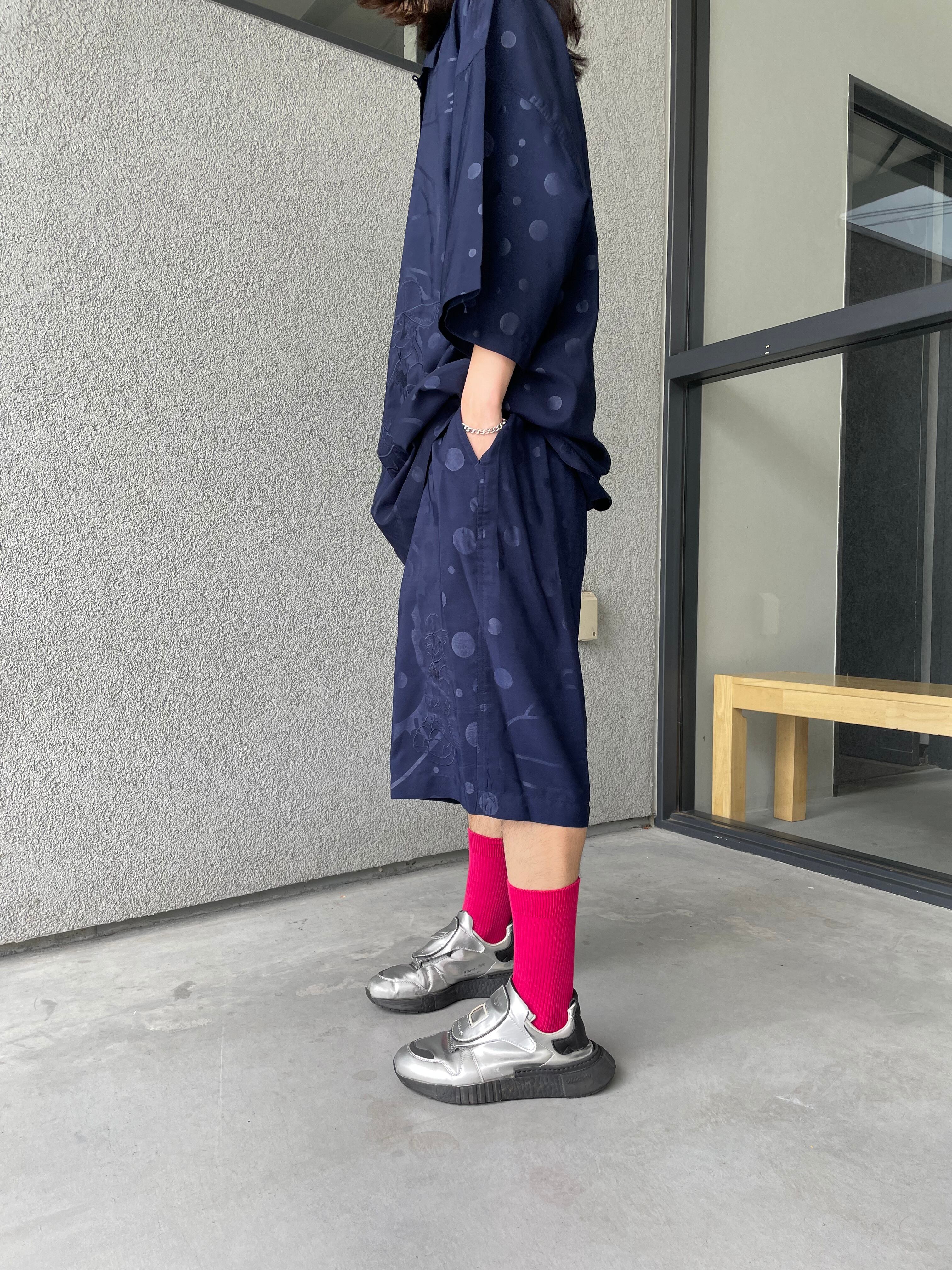 ネイビーボディに同色で光沢感のあるネイビーのプリント。
