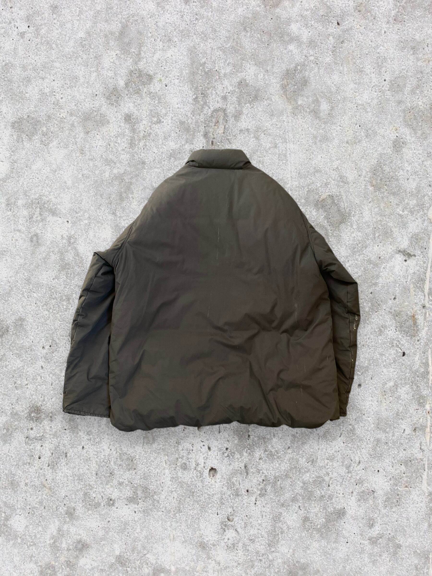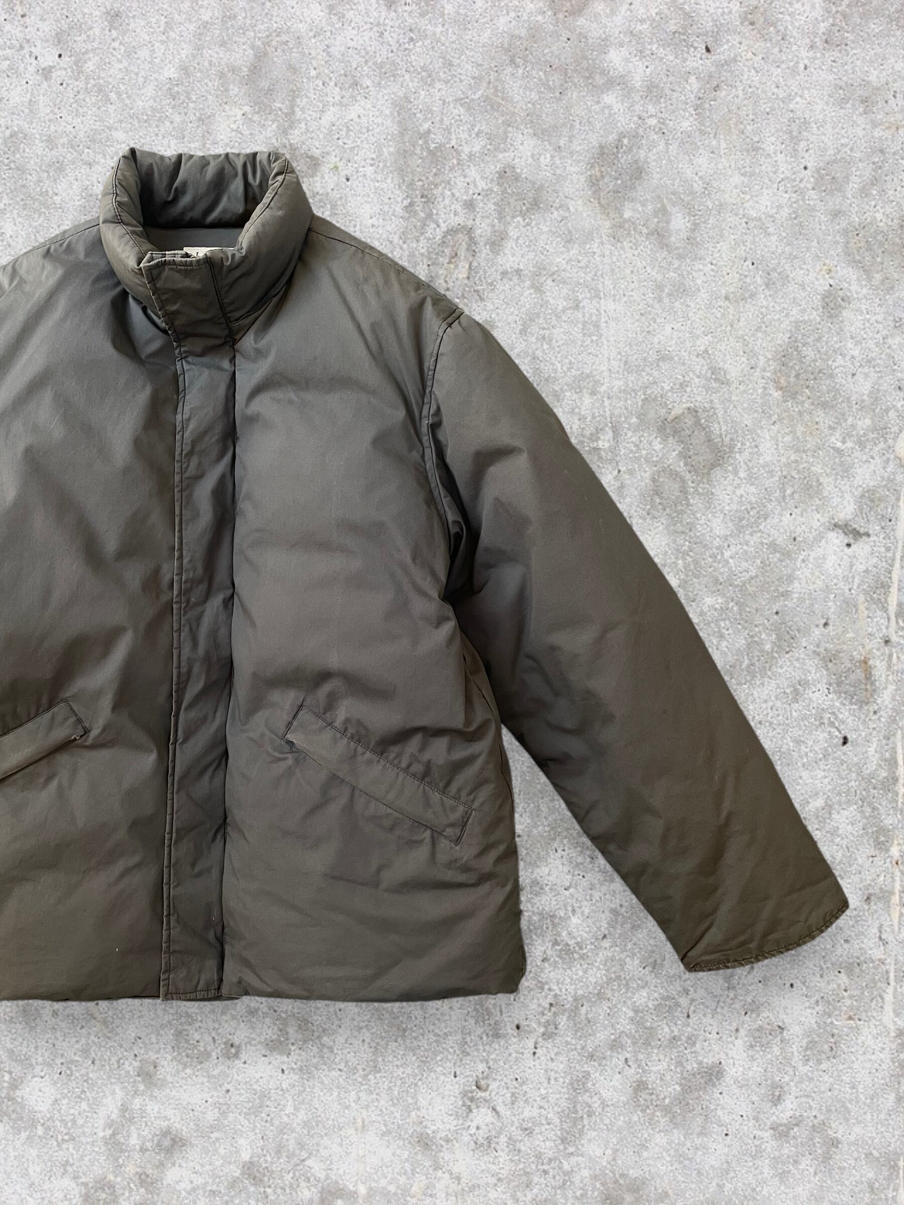前立ては比翼、裾と袖はリブ無し、ハイネックと無駄を削ぎ落として仕上げられスタイリッシュ。