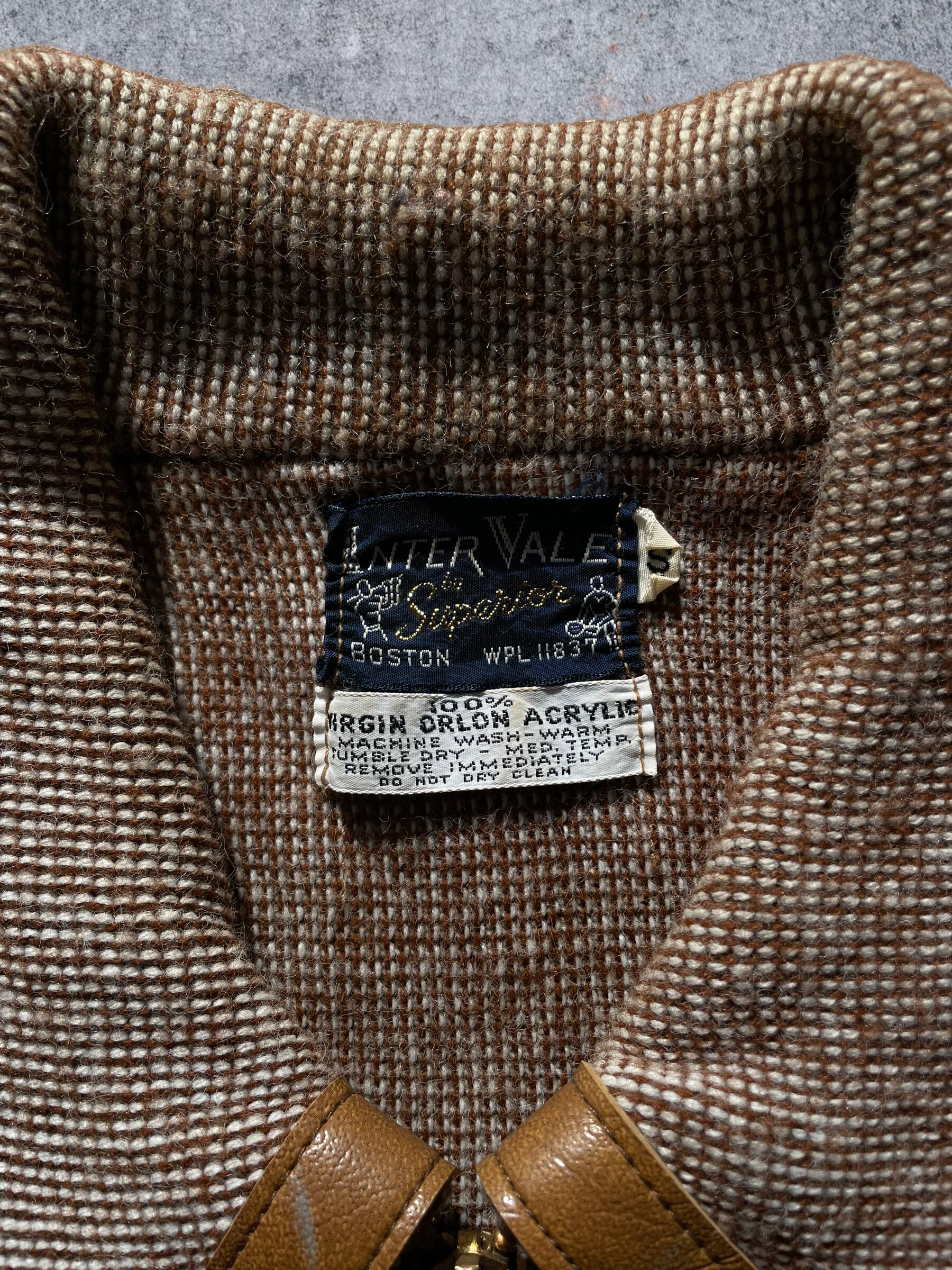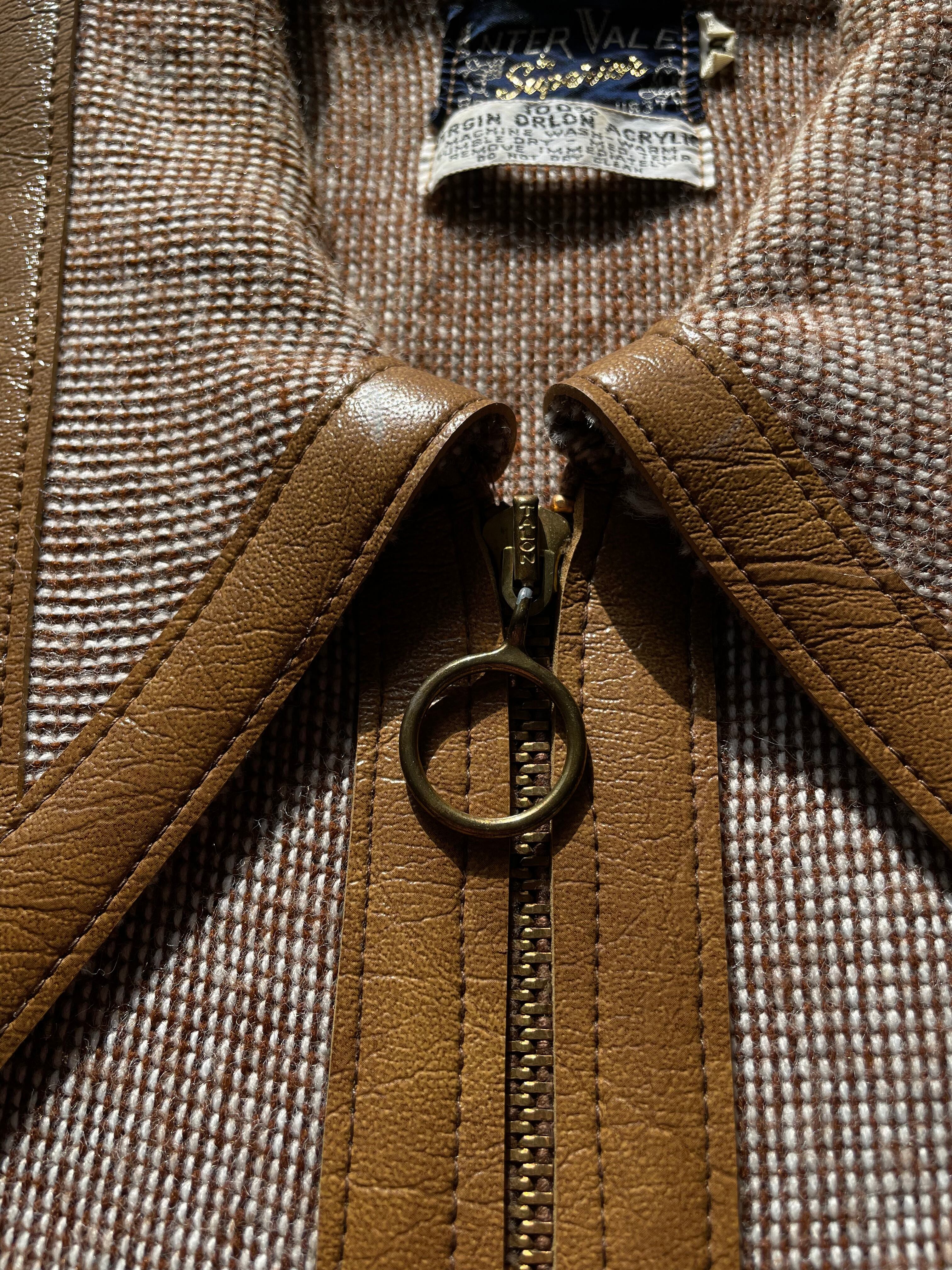 1970s leather switching acryl knit shirt