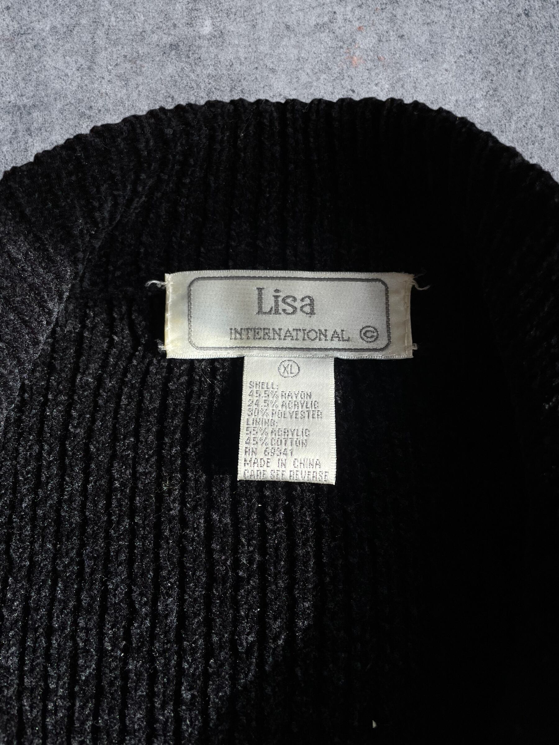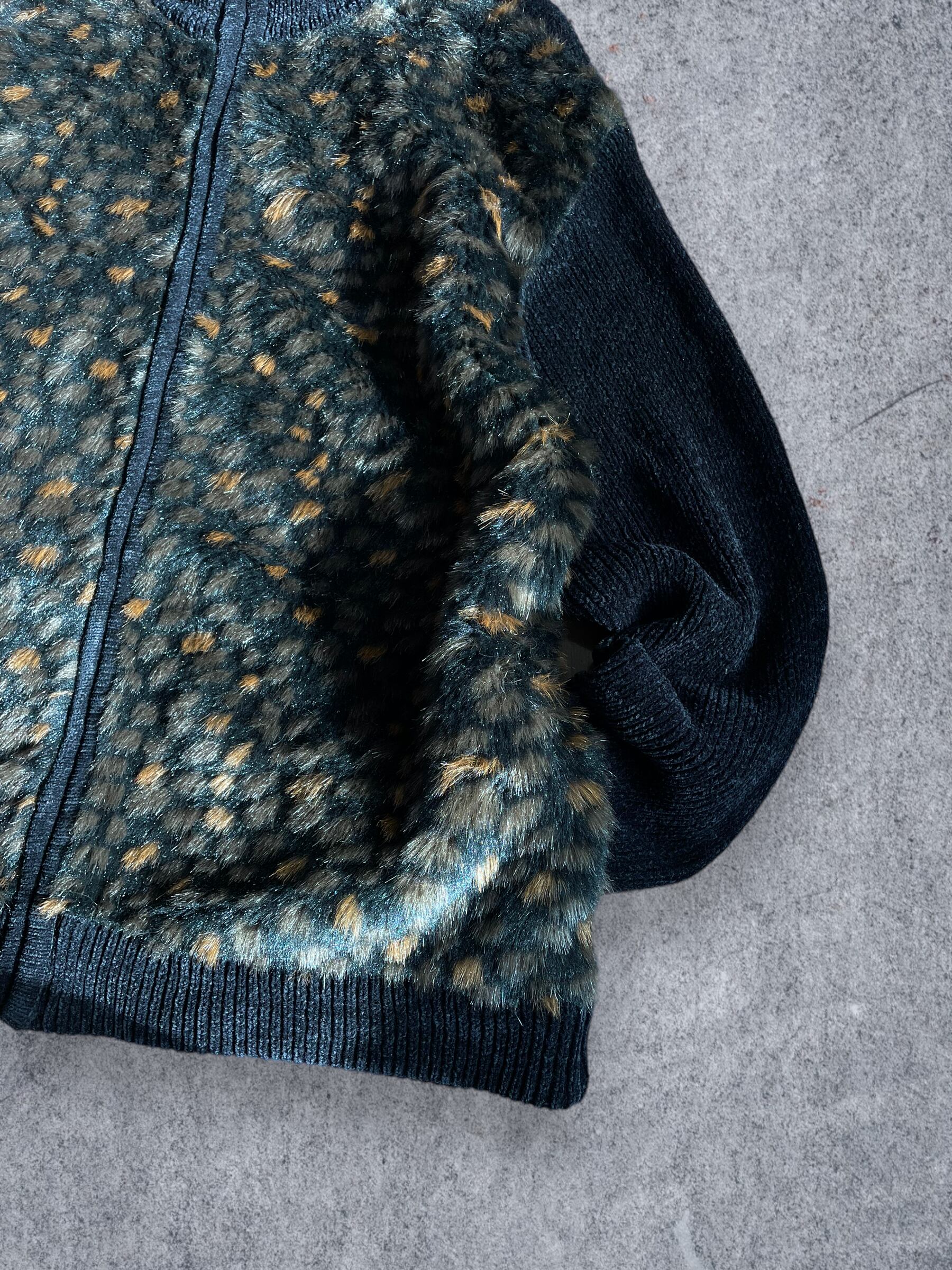アニマル調の強すぎずなフェイクファーに、ブラックのニットと良いバランス。