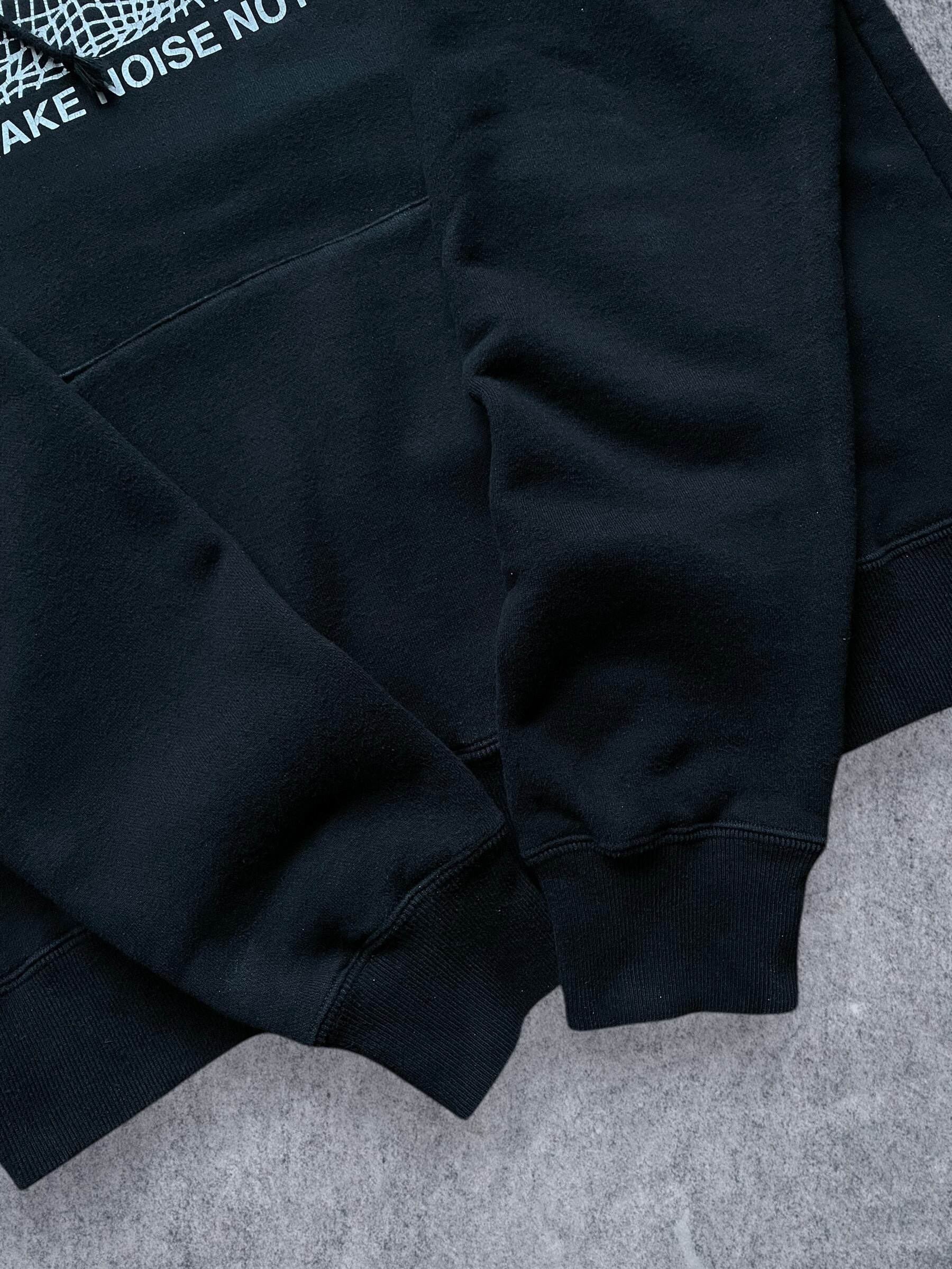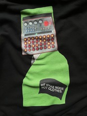 「WE MAKE NOISE NOT CLOTHES(俺たちは服ではなく狂騒を作ってるだけ)」のプリント。