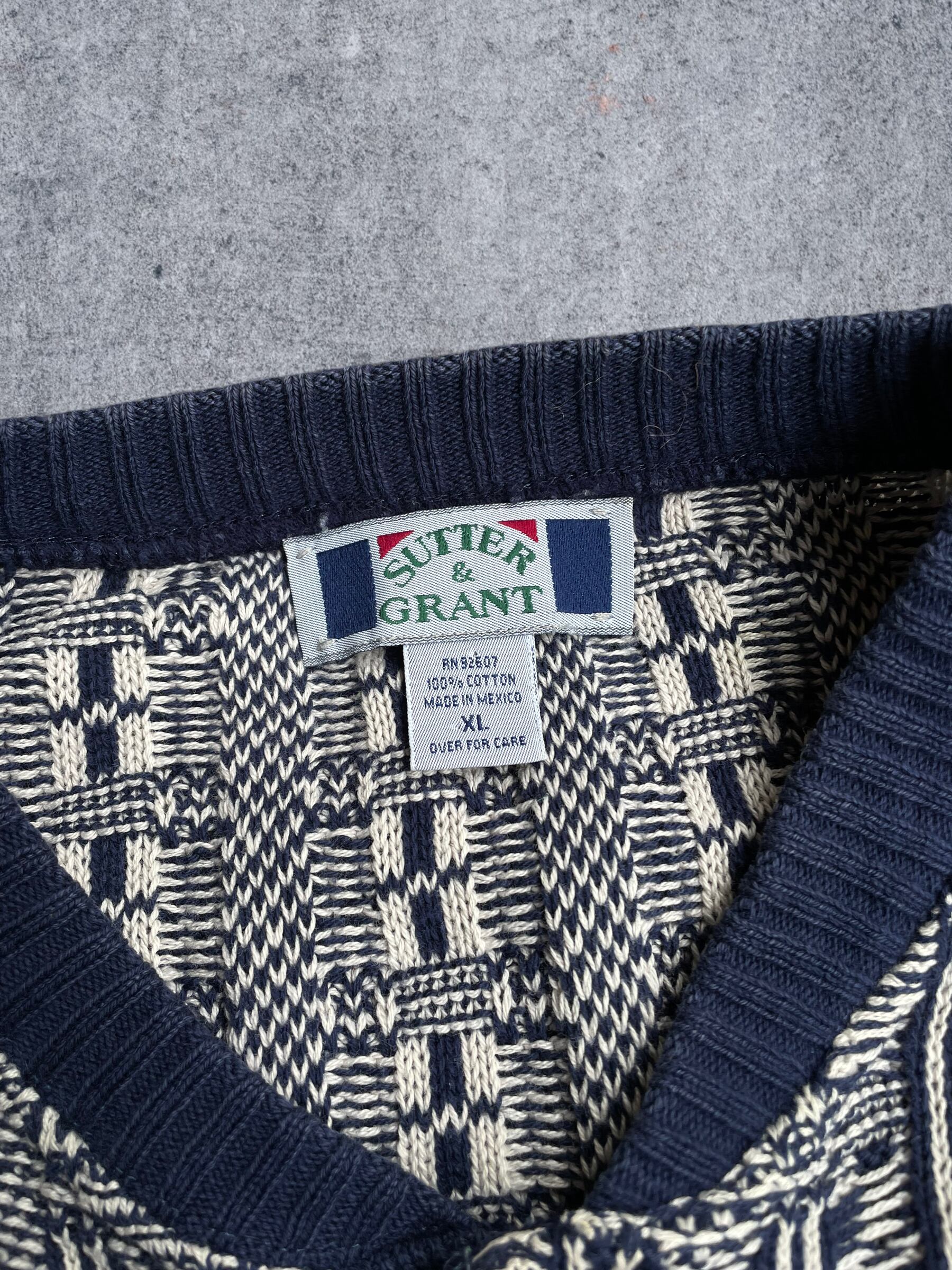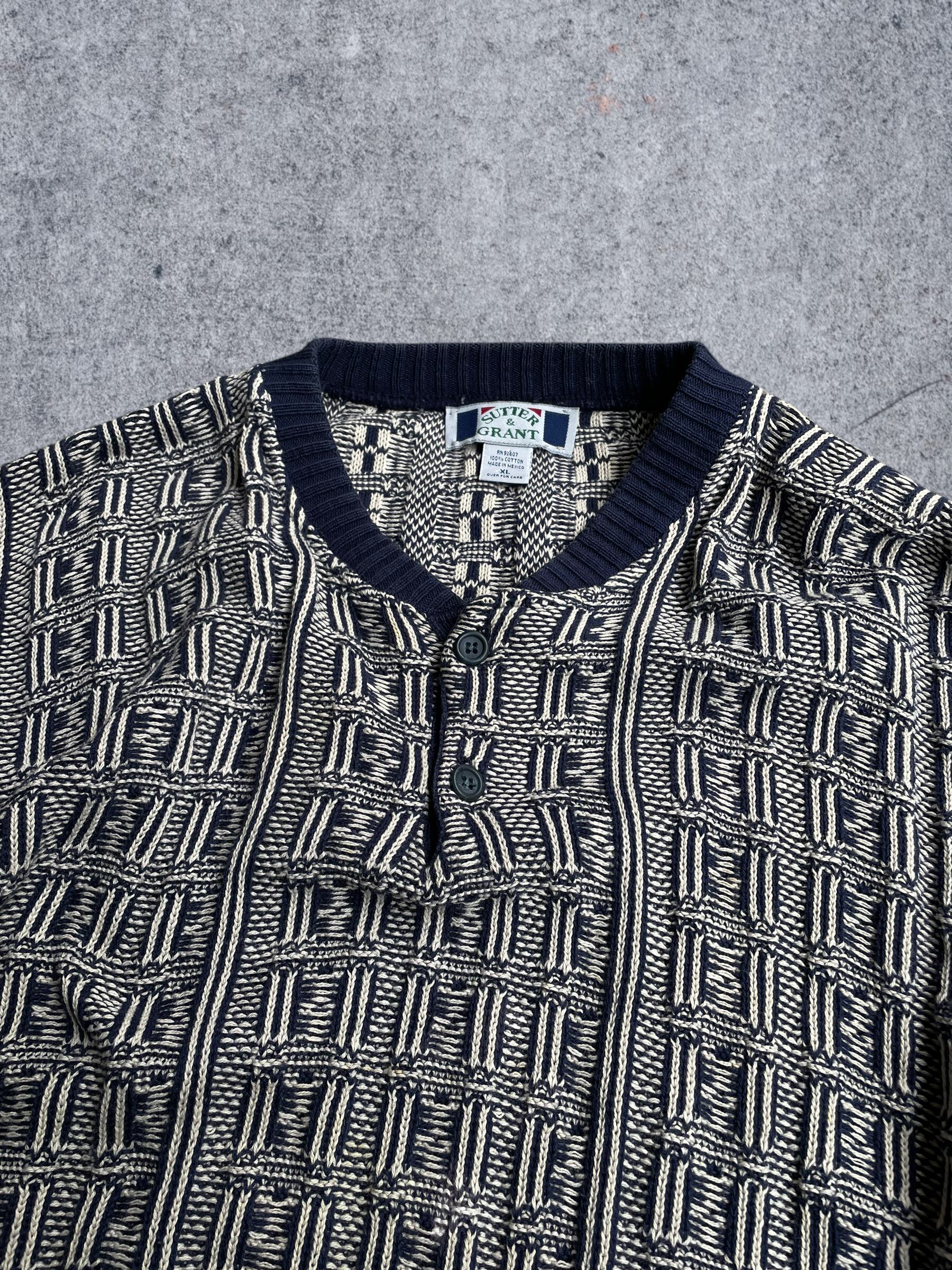 ネイビー×ホワイトの3D編みで薄手のニットソー。