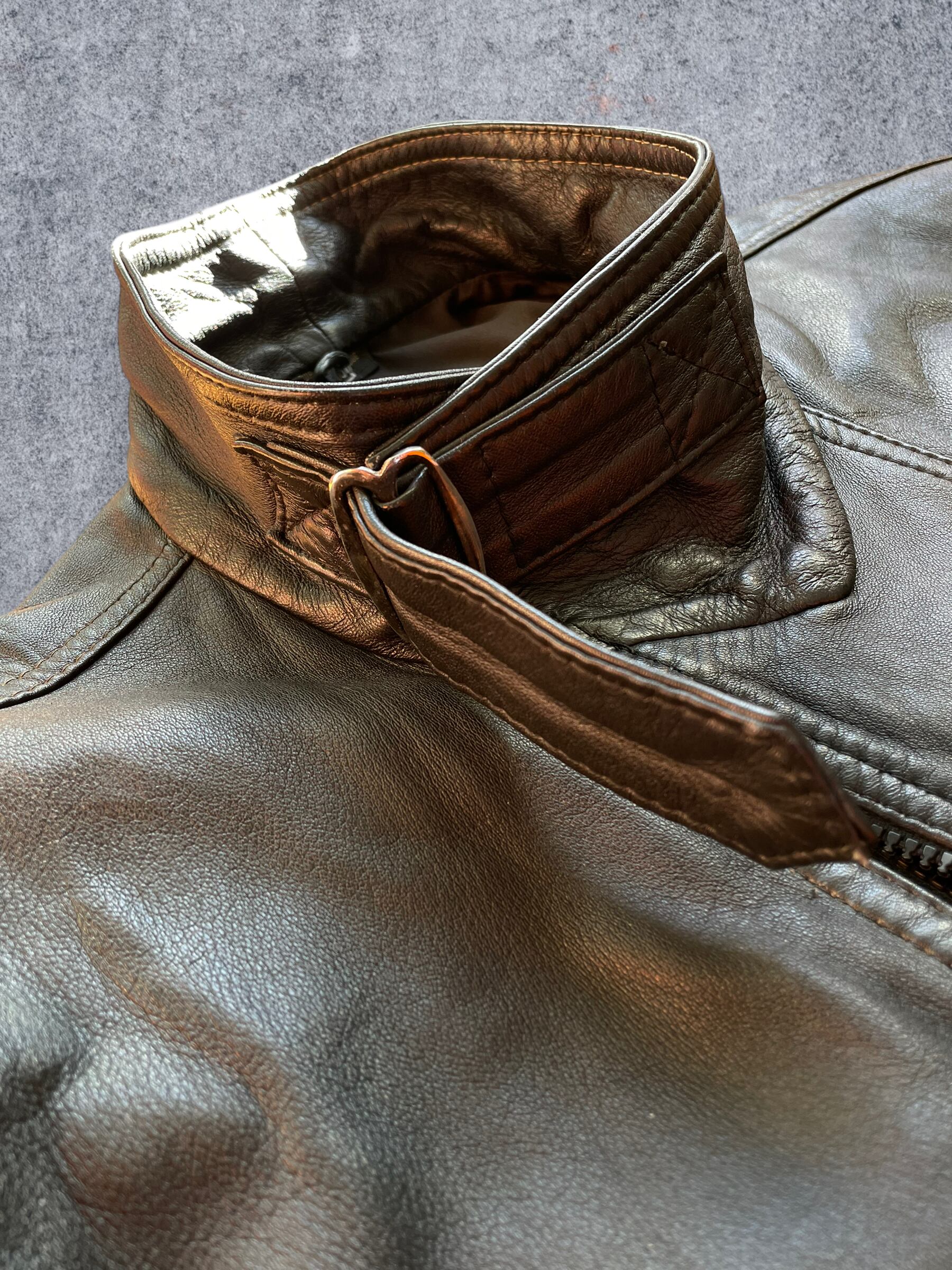 1990s buckle high neck leather jacket