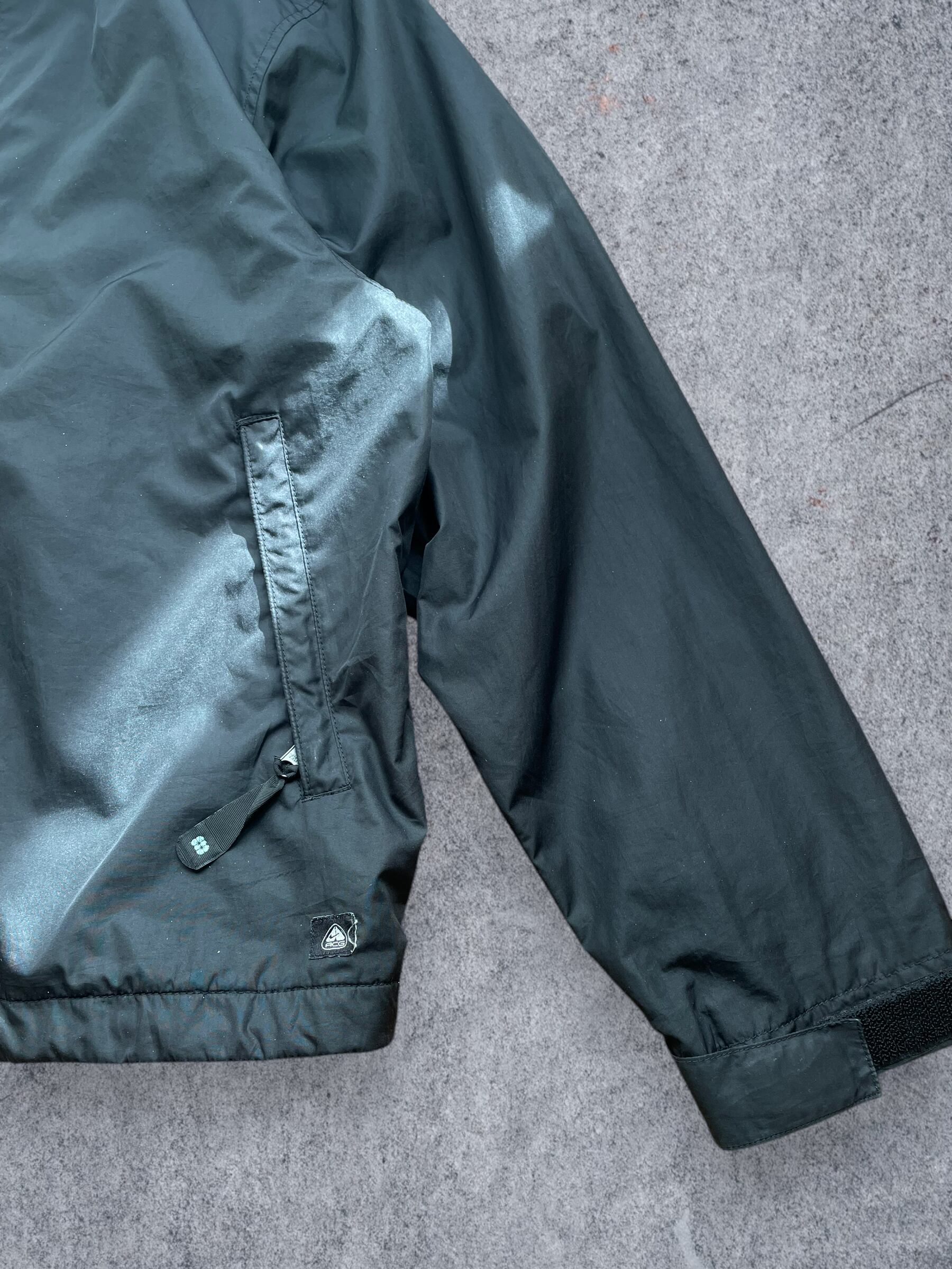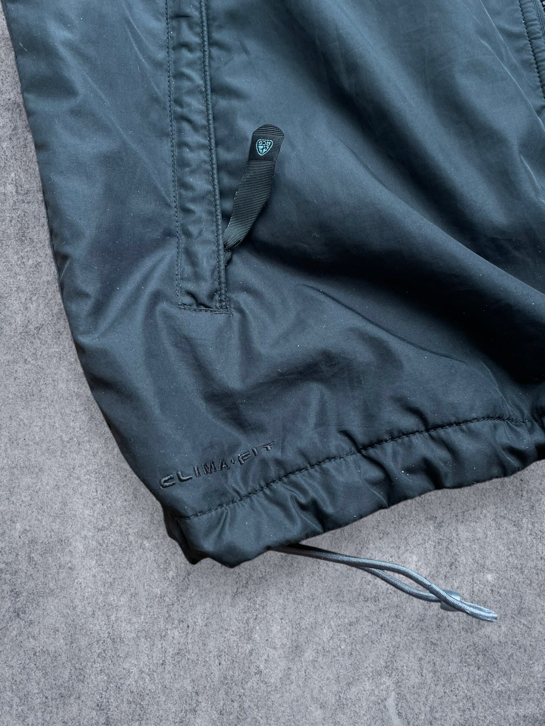 シンプルなブラックナイロンながら、フロントジッパーの位置をズラしたアシンメトリーディテール。