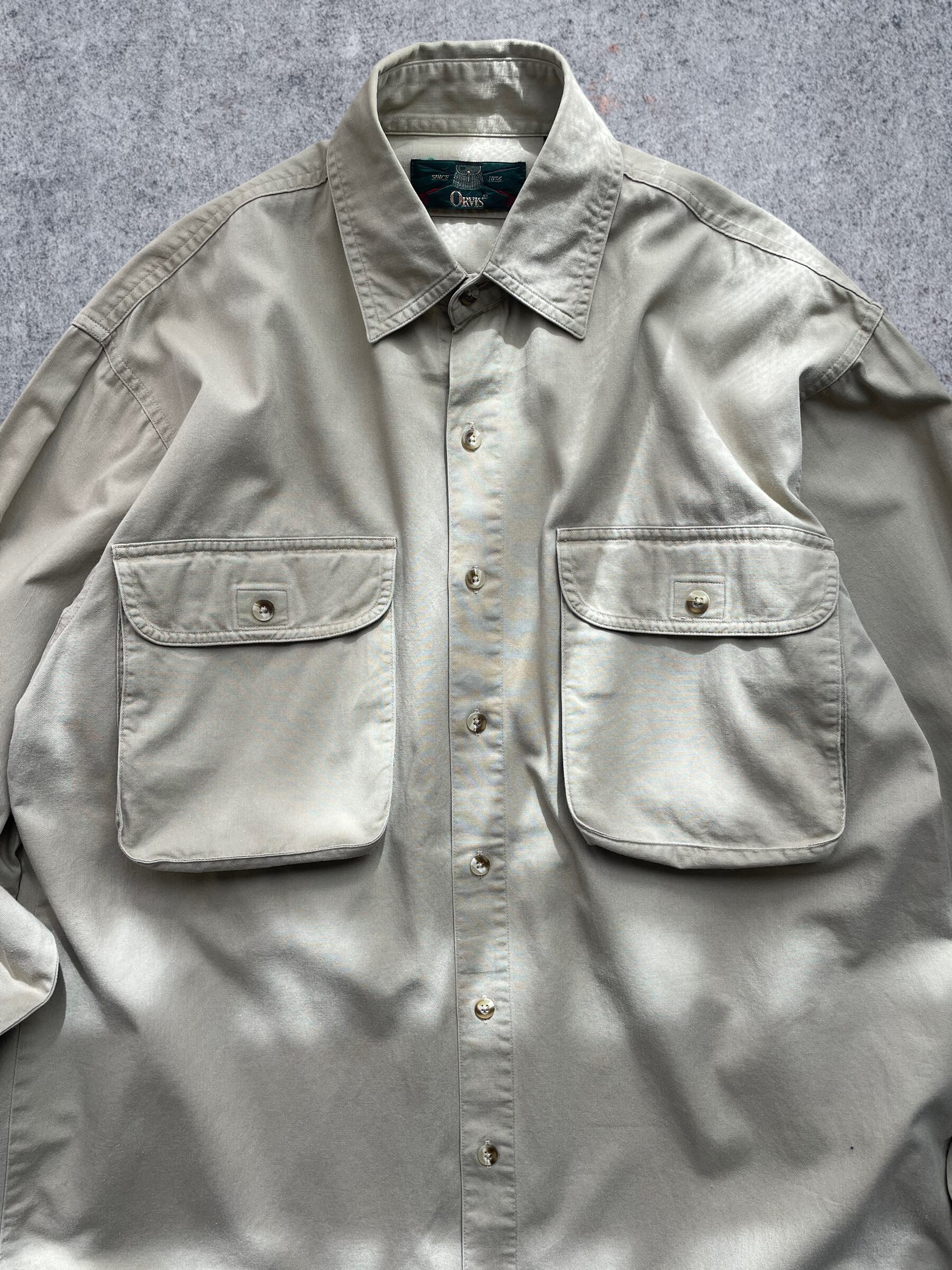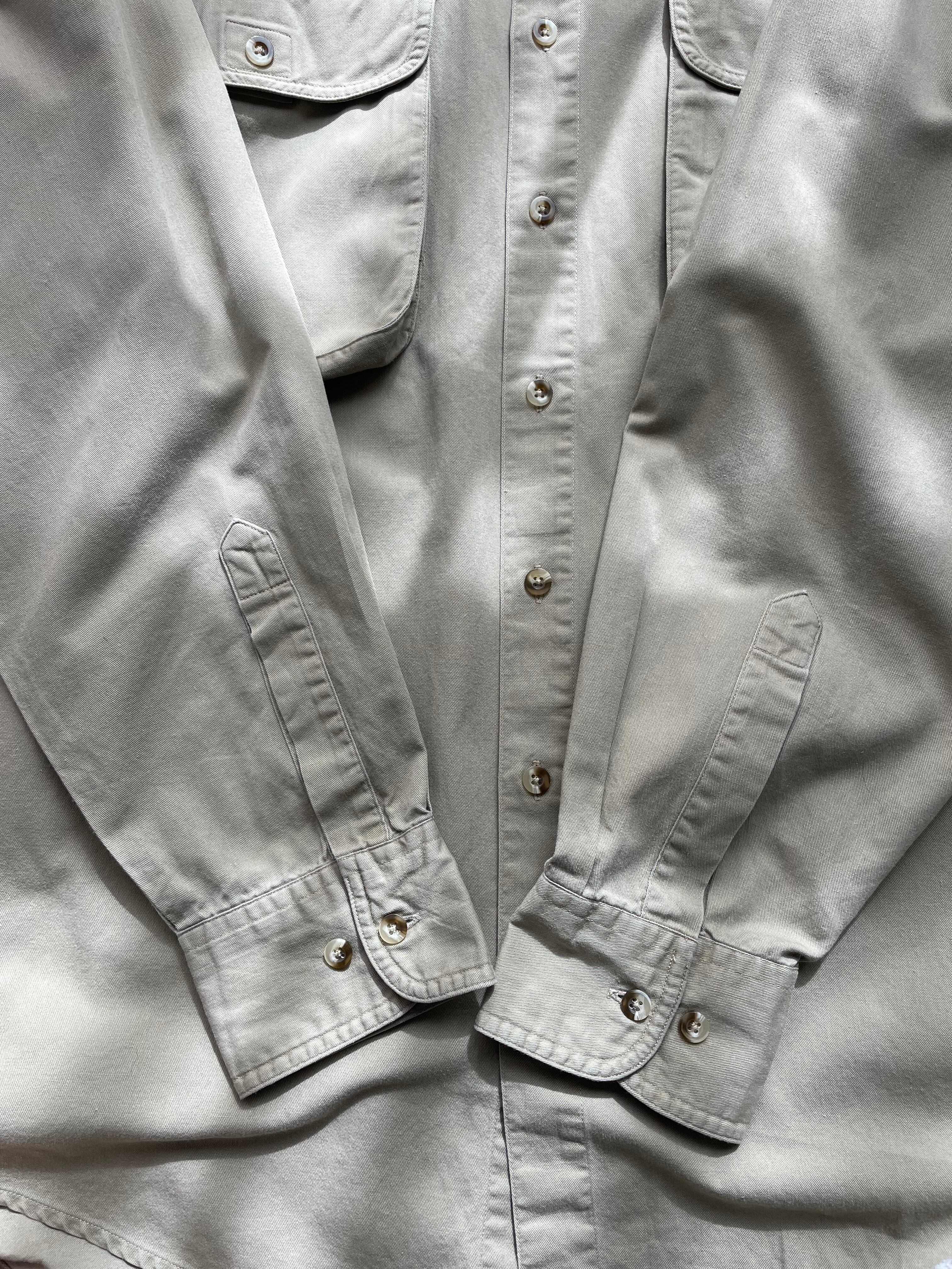 コットンツイル生地のザックリしたサイジング、マチ付き大きめの2ポケットとシンプルながら良いバランス。